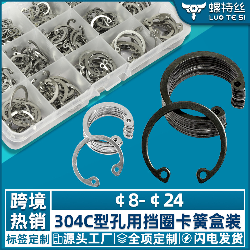 304 스테인레스 스틸 서클립 세트 블랙 카본 스틸 c 타입 내부 카드 오프닝 서클립 홀 서클립 박스스토어 가기
