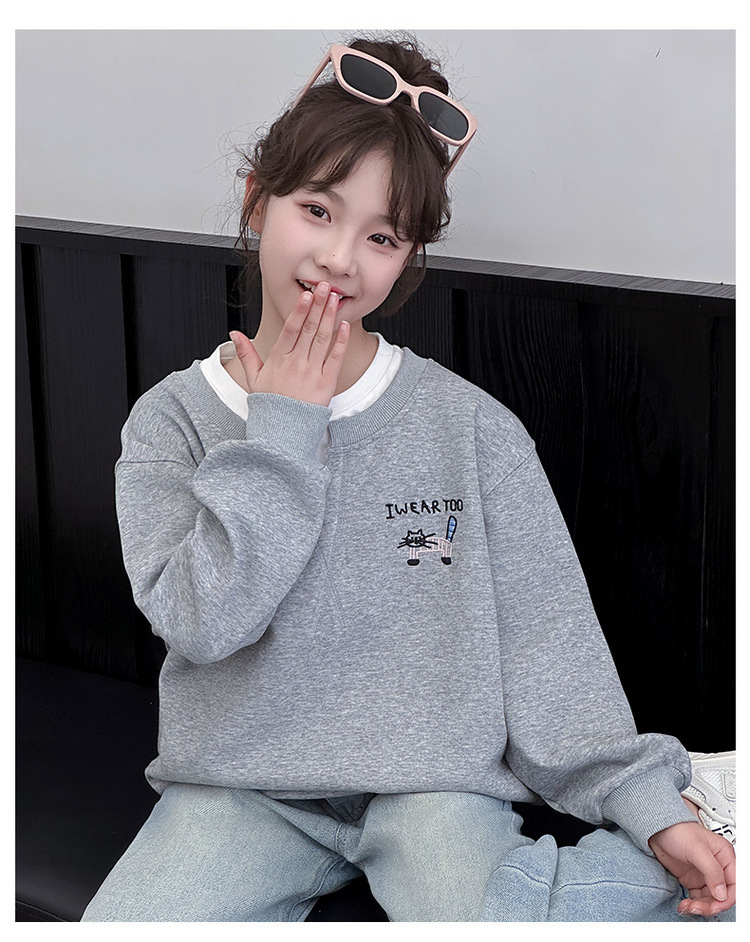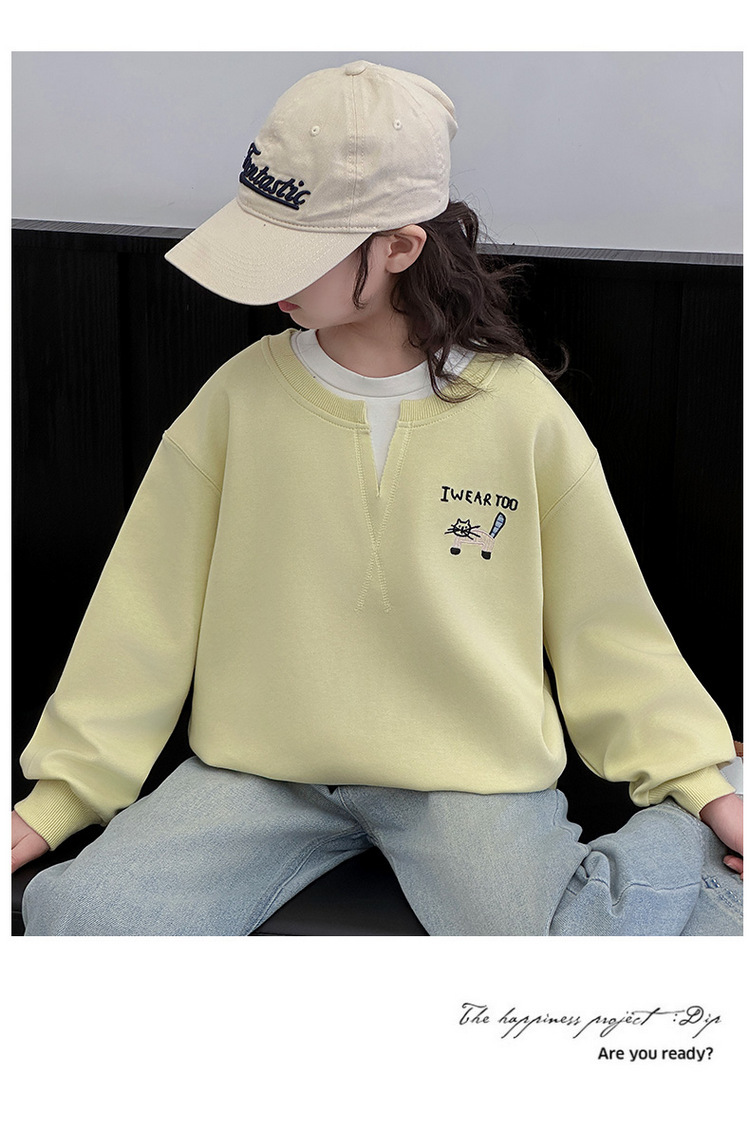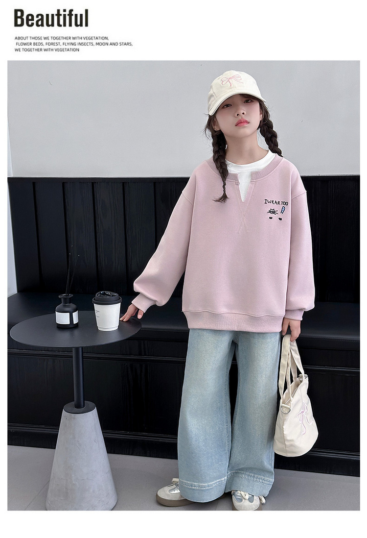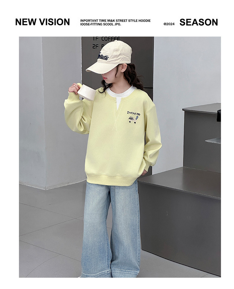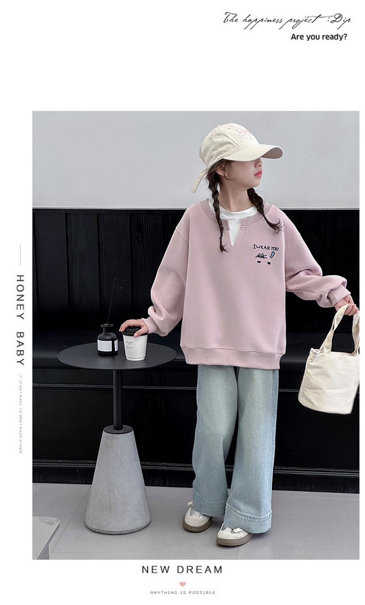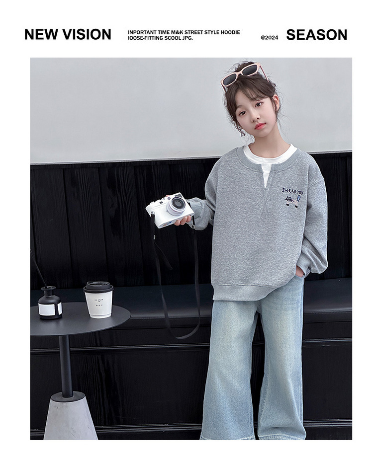 여아용 봄 정장, 페이크 투피스 스웨트셔츠, 한국 스타일 의상, 중대형 아동용, 패셔너블하고 귀여운 캐주얼 청바지 투피스 세트스토어 가기