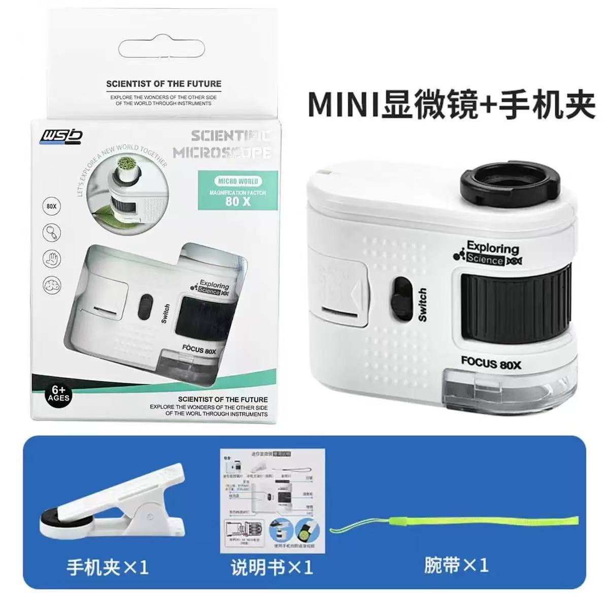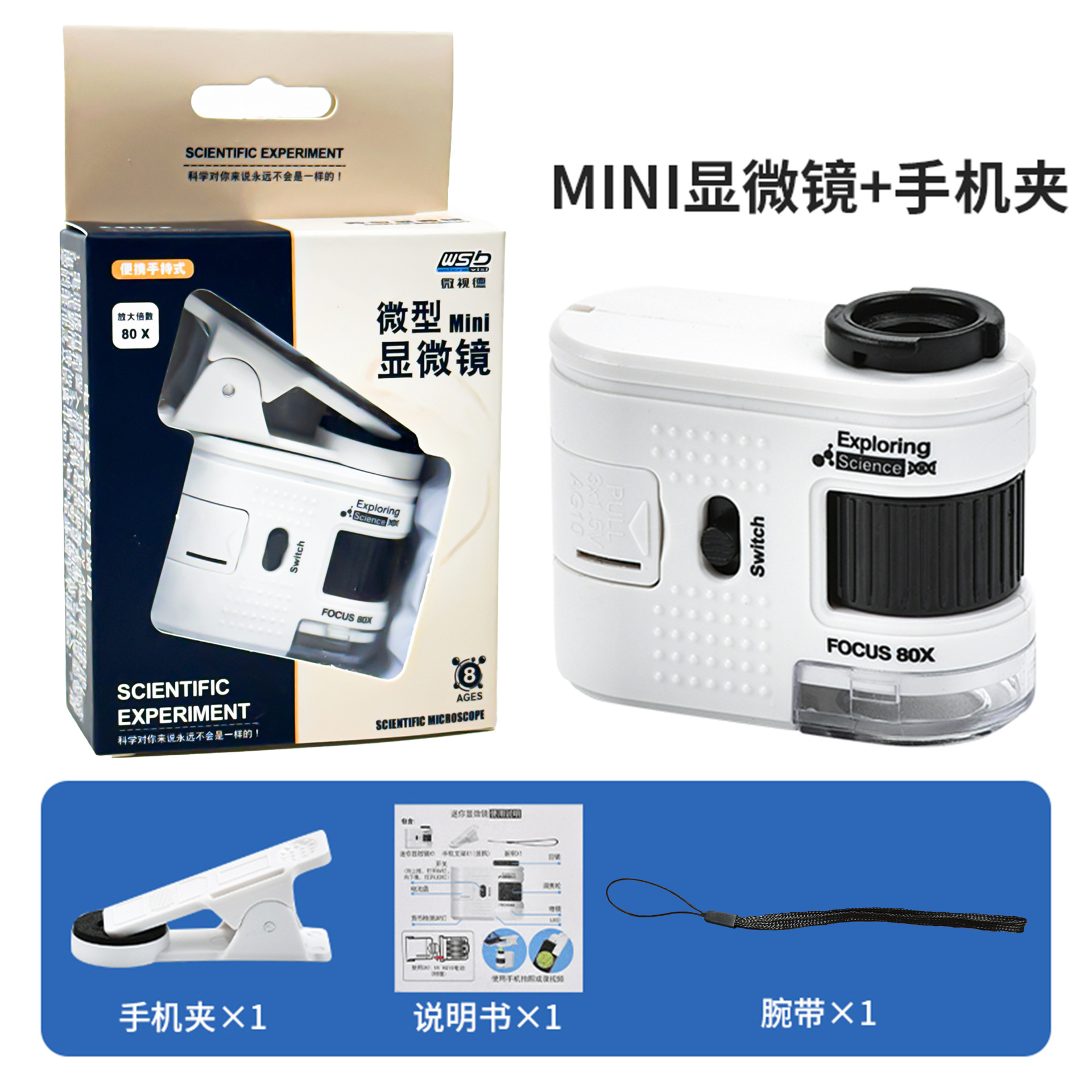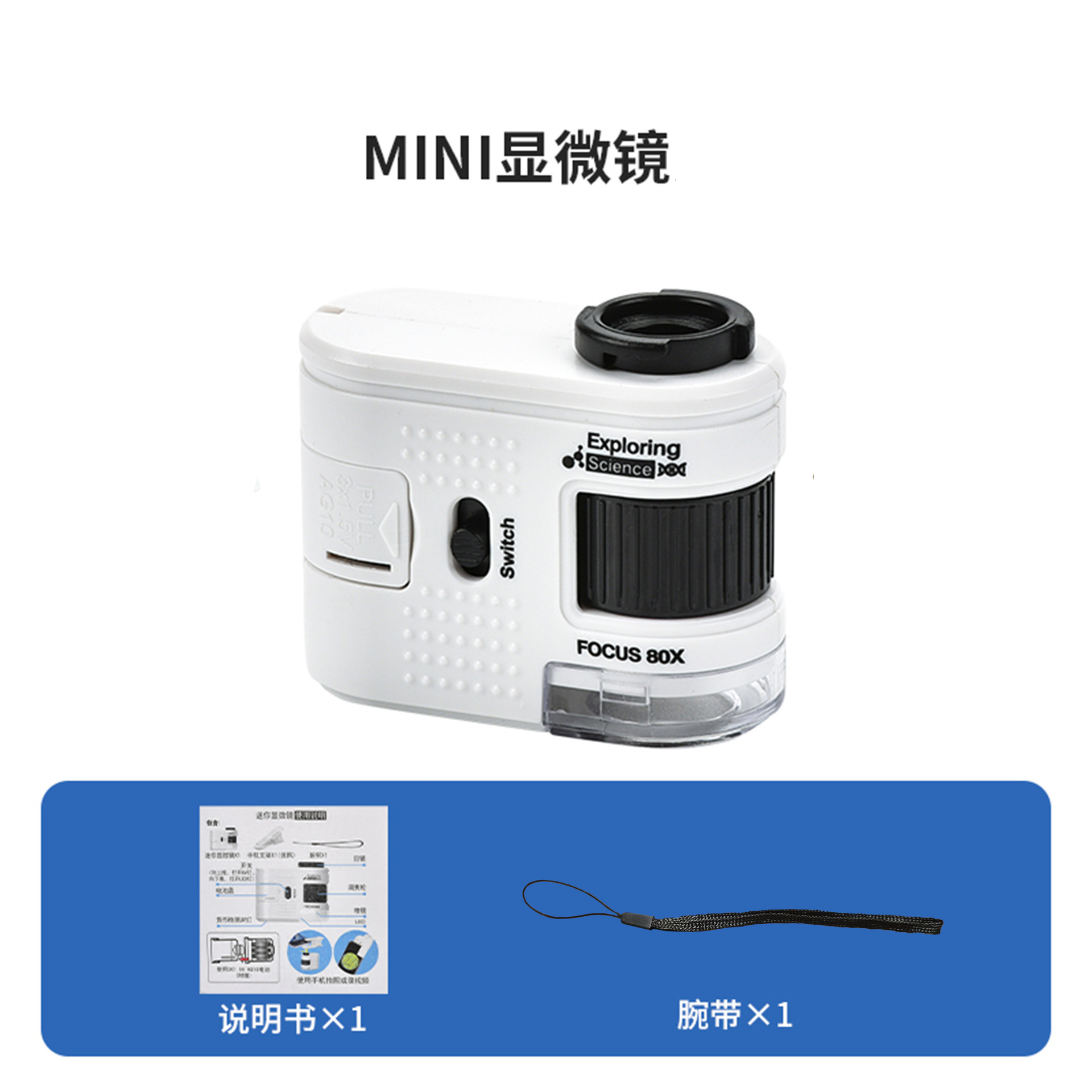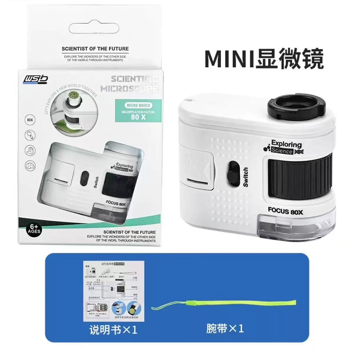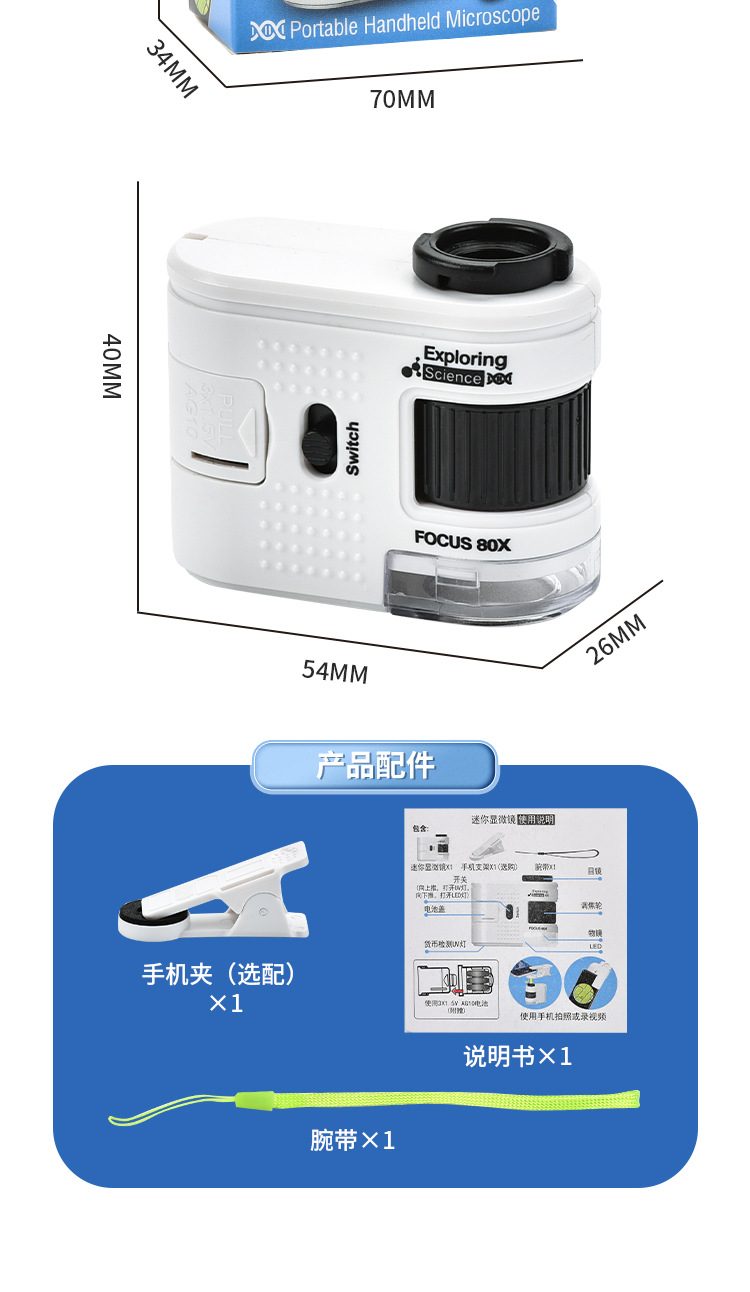 고화질 어린이용 포켓 현미경 미니 과학 80배율 휴대용 초등학교 교육용 장난감 (지폐 감별등 포함)