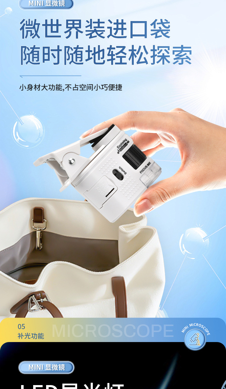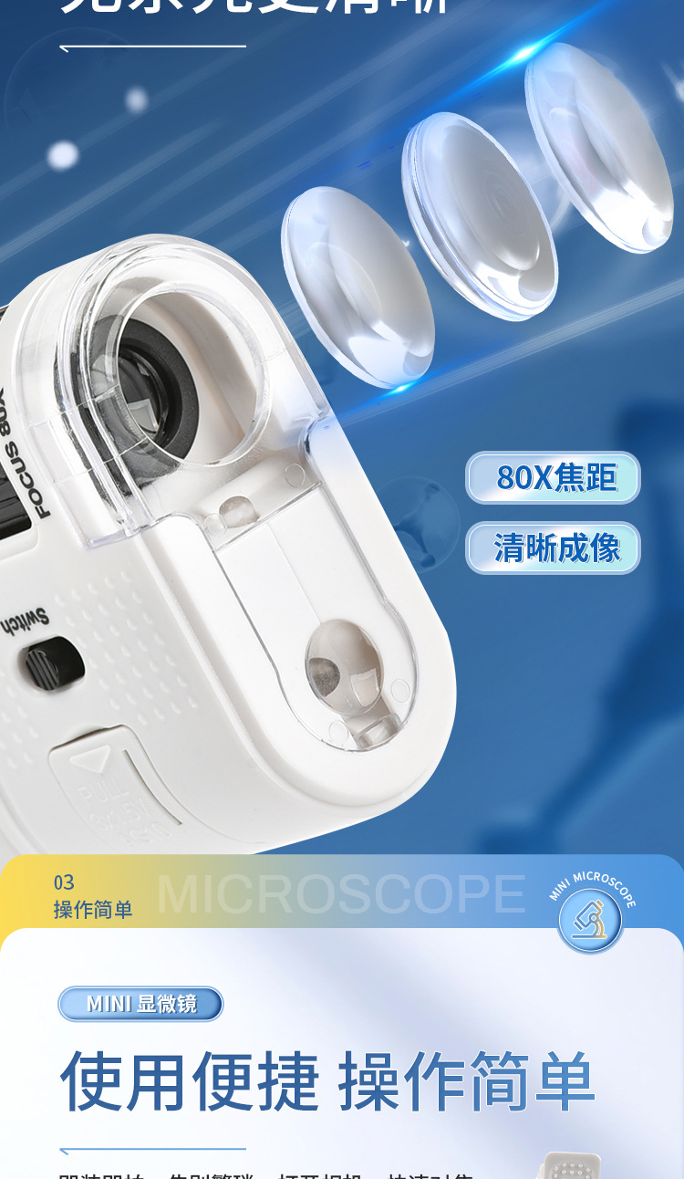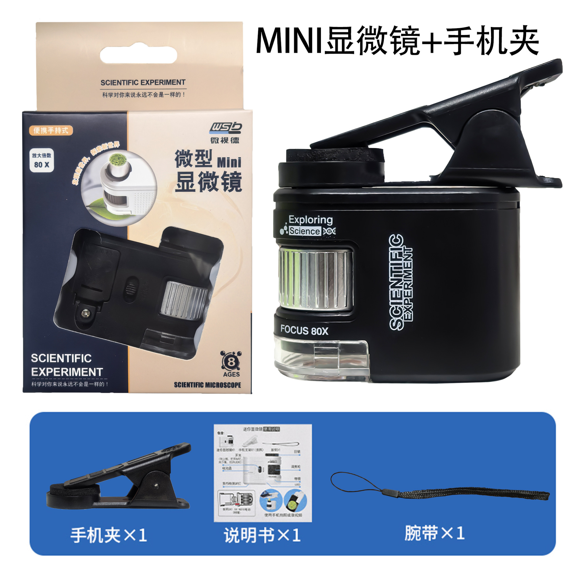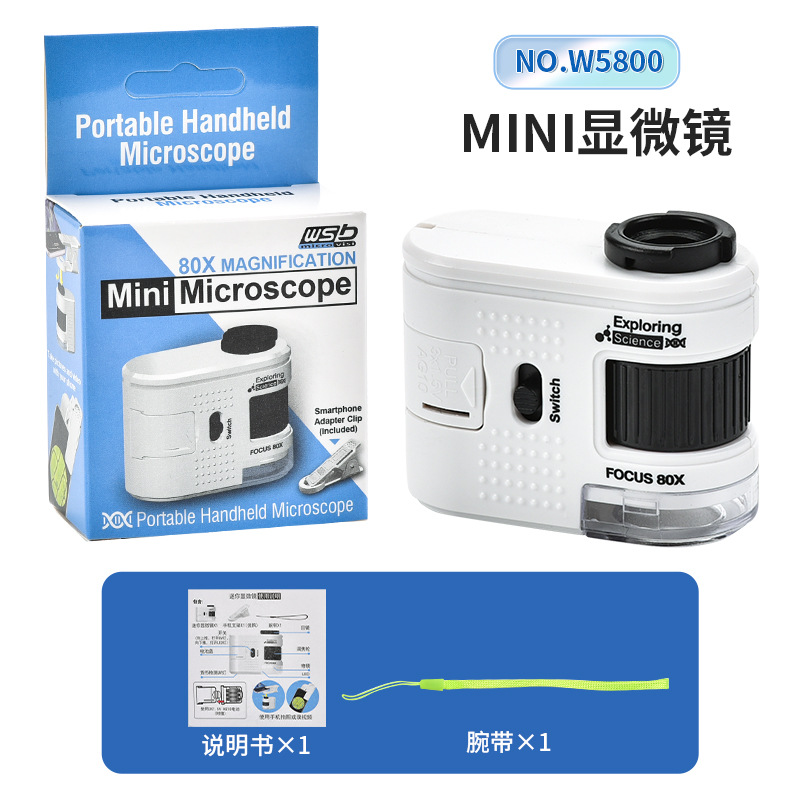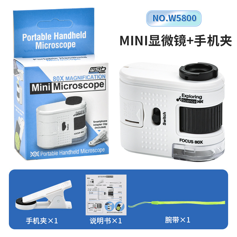 고화질 어린이용 포켓 현미경 미니 과학 80배율 휴대용 초등학교 교육용 장난감 (지폐 감별등 포함)