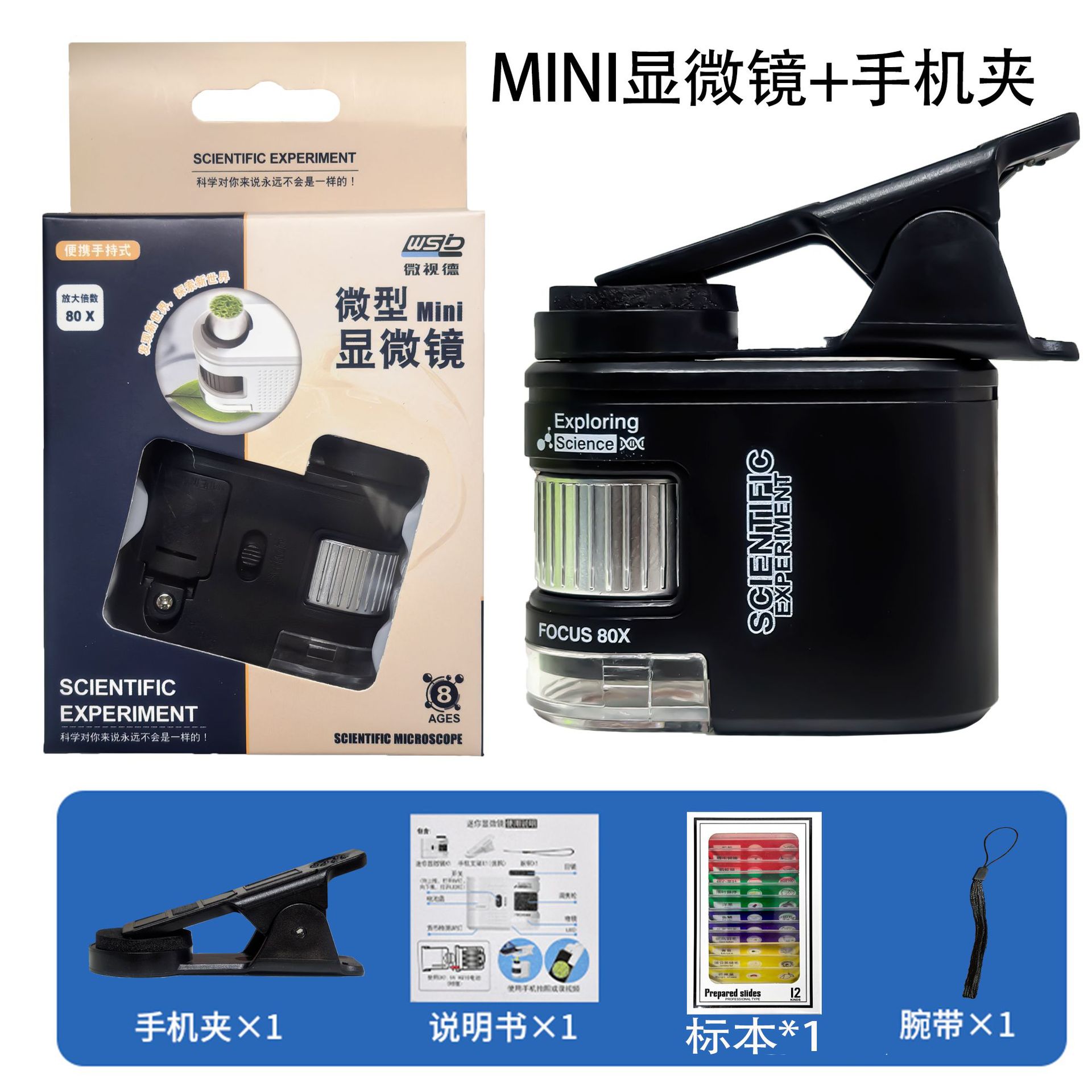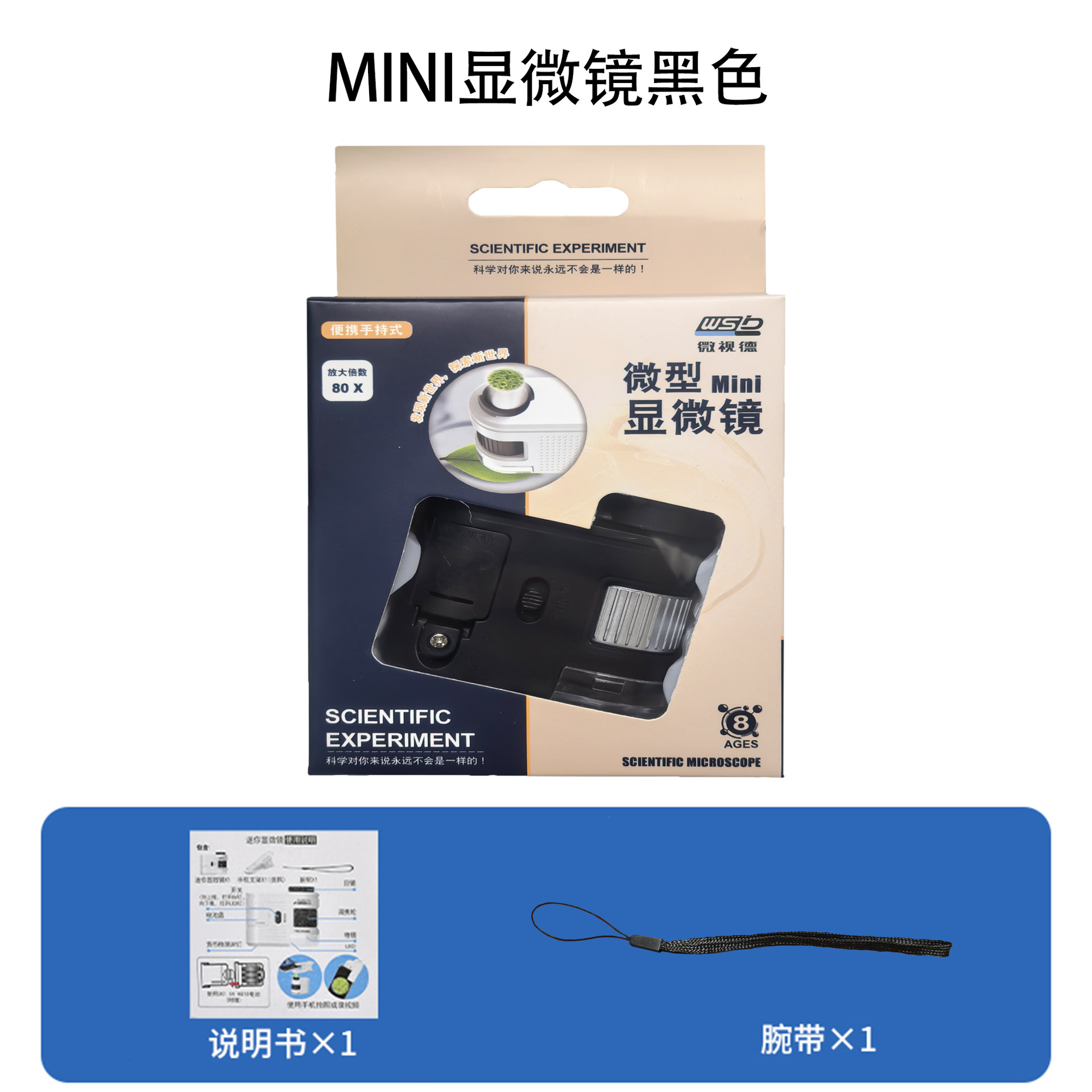 • 80x 휴대용 미니 현미경 검정색 + 끈 + 휴대폰 클립 + 표본