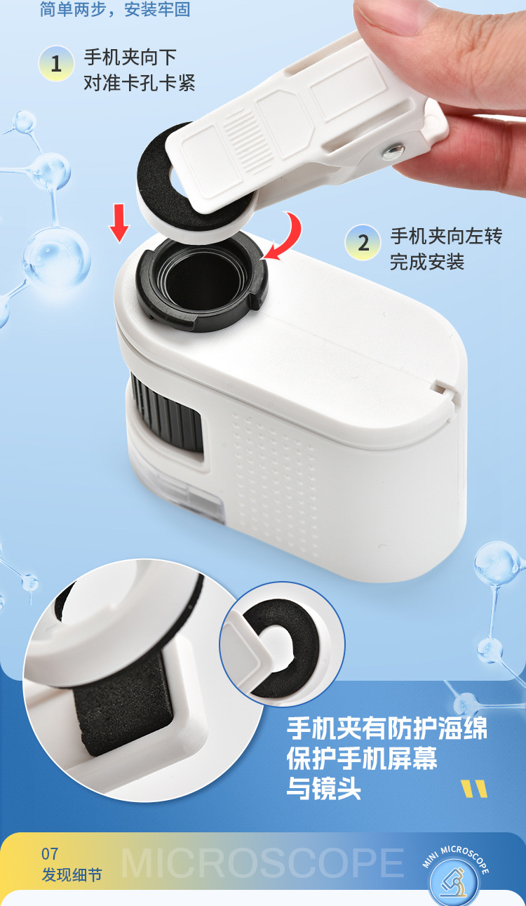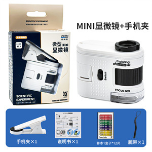 • 80x 휴대용 미니 현미경 흰색 + 끈 + 휴대폰 클립 + 표본