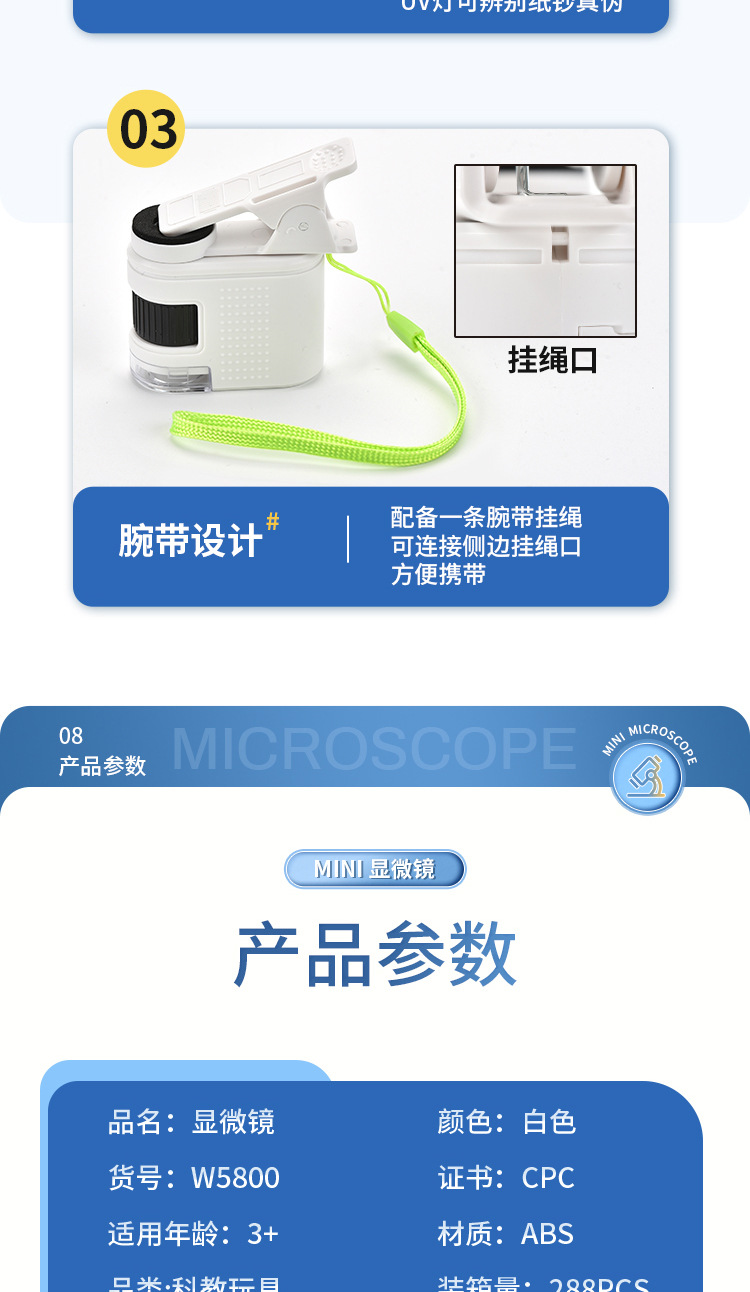 • 80x 휴대용 미니 현미경 흰색 + 끈(영어 파란색 포장)