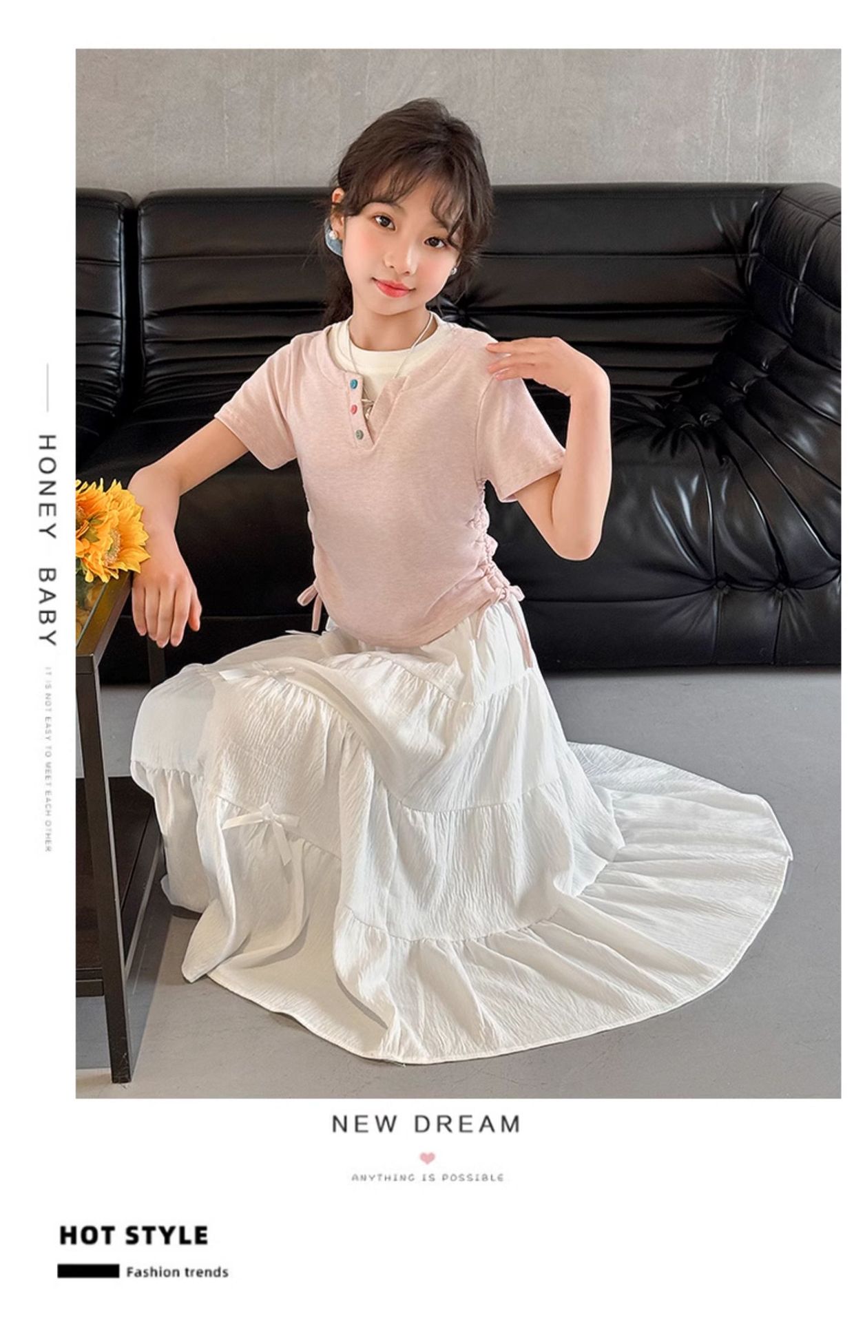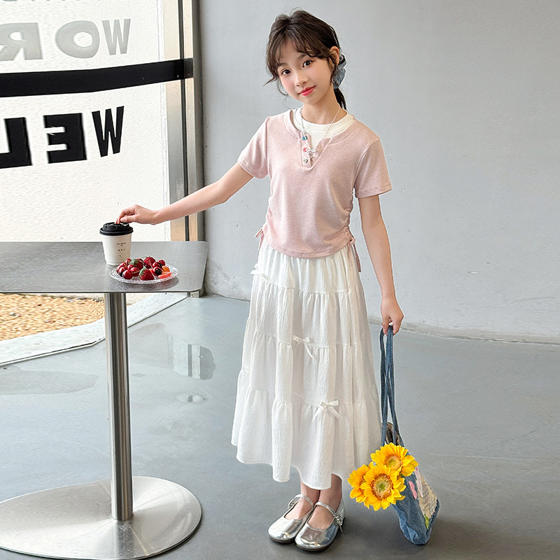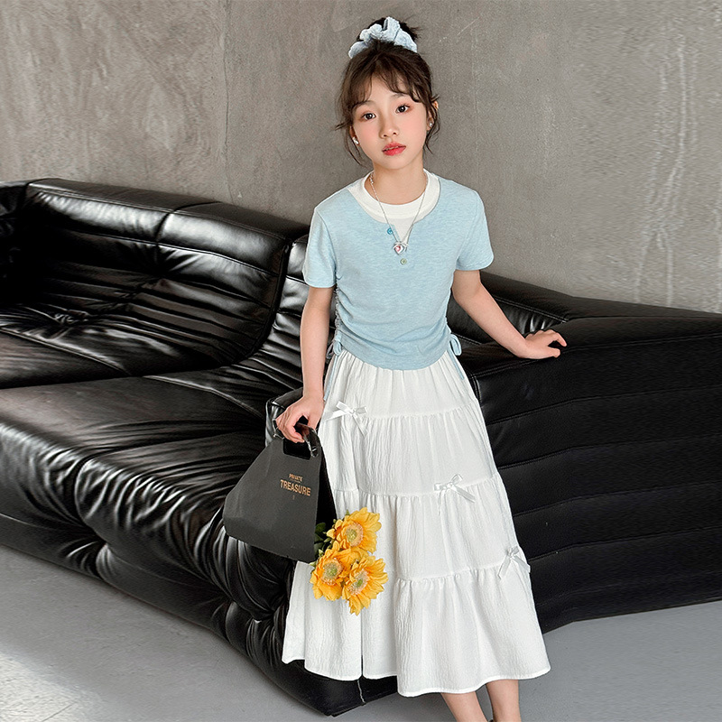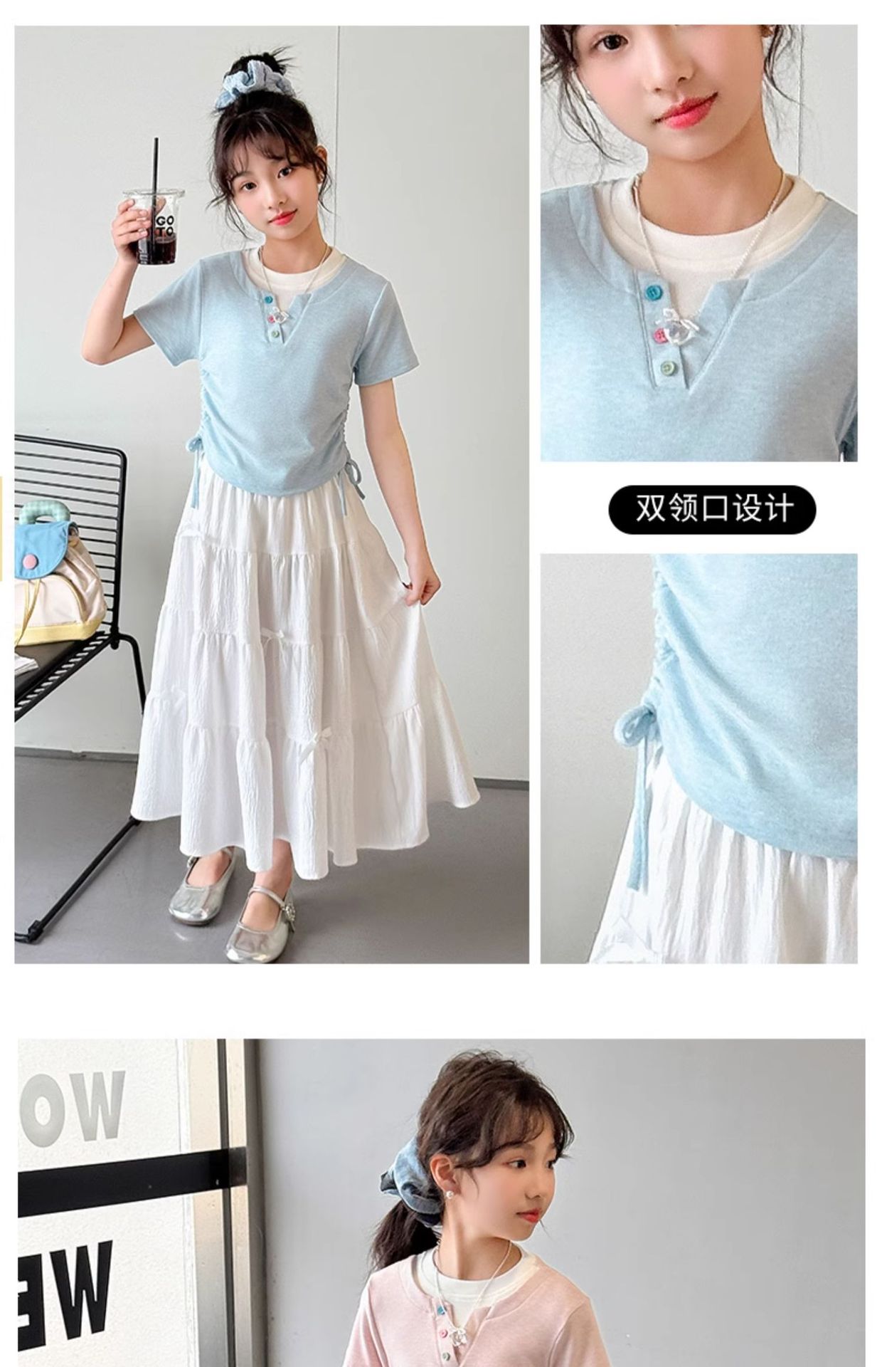 여자 세트 2025 새로운 여름 원피스 어린이 소녀의 세련된 패셔너블웨어 소녀 여름 한국 투피스 세트