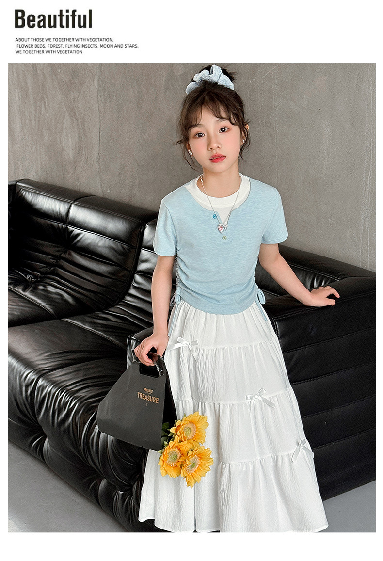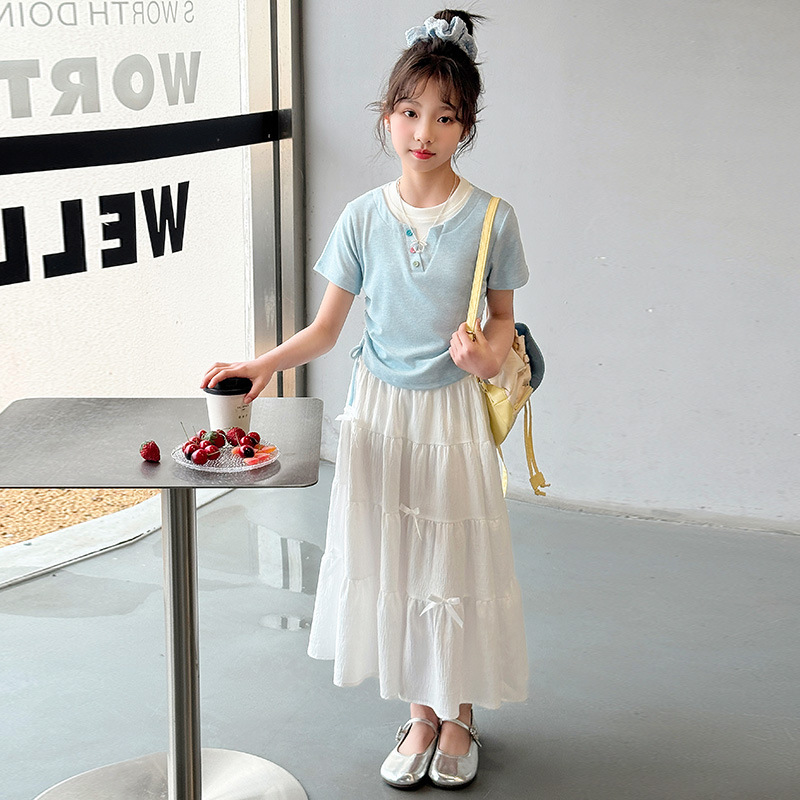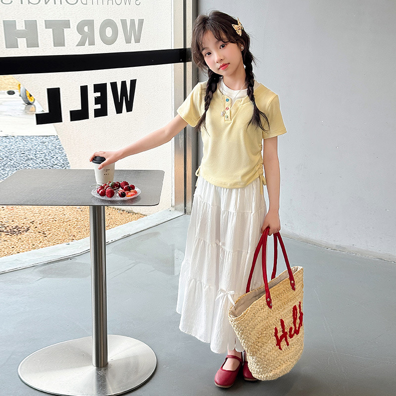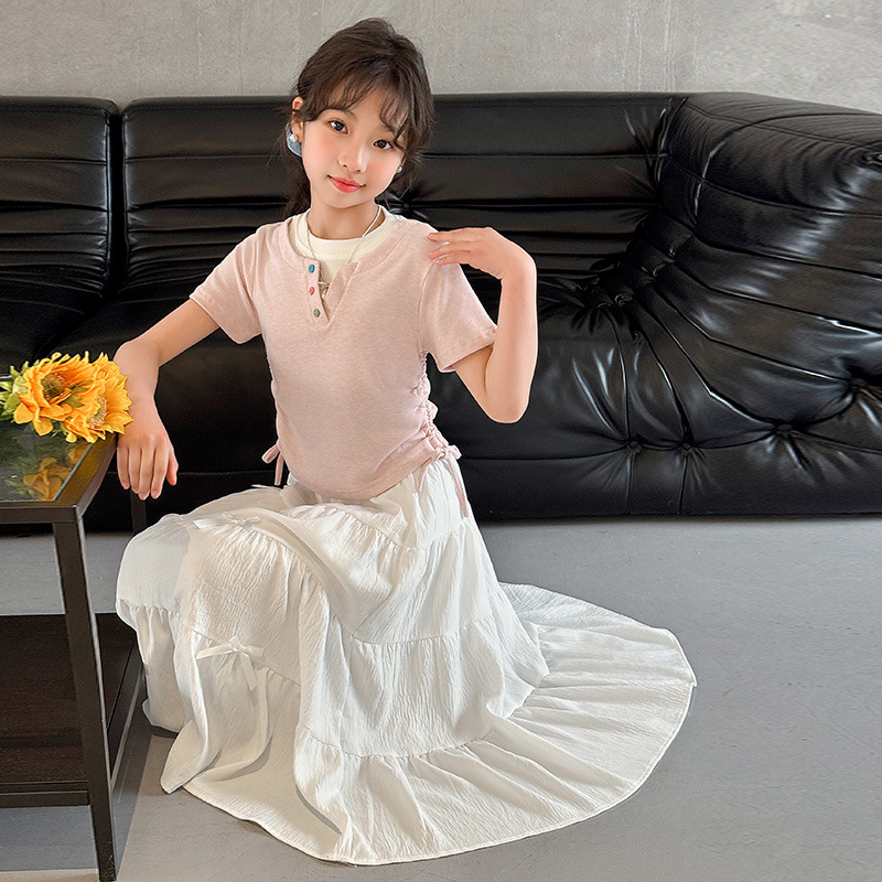 여자 세트 2025 새로운 여름 원피스 어린이 소녀의 세련된 패셔너블웨어 소녀 여름 한국 투피스 세트