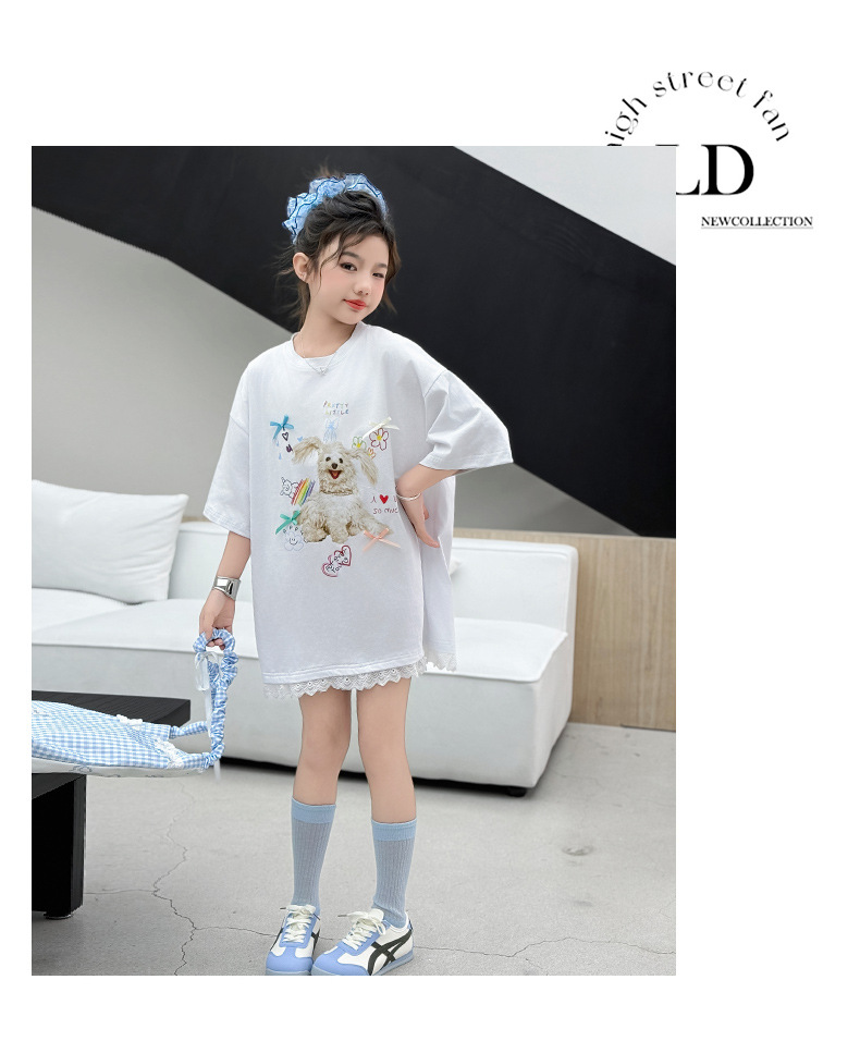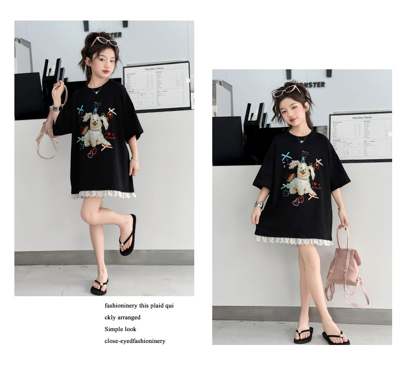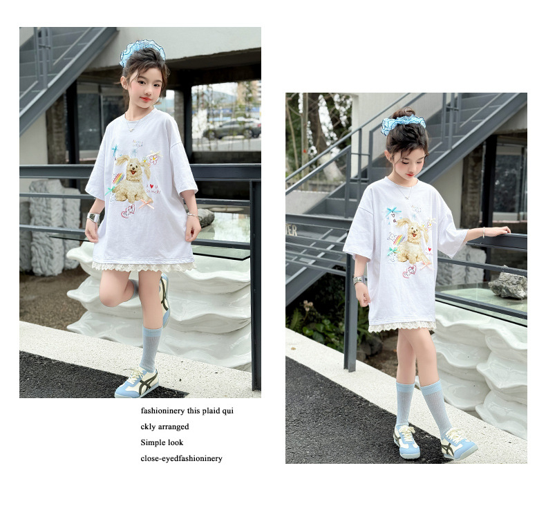 여자 여름 반소매 티셔츠 2025 새로운 어린이 서양식 여름 반소매 탑 여성 빅 어린이 여름 중장 티셔츠스토어 가기