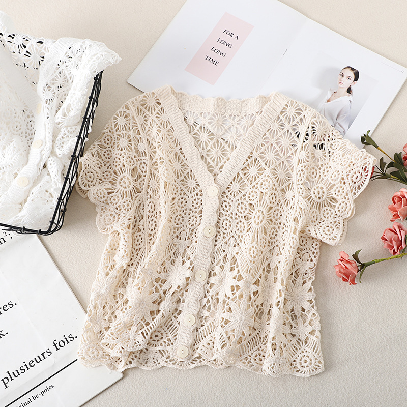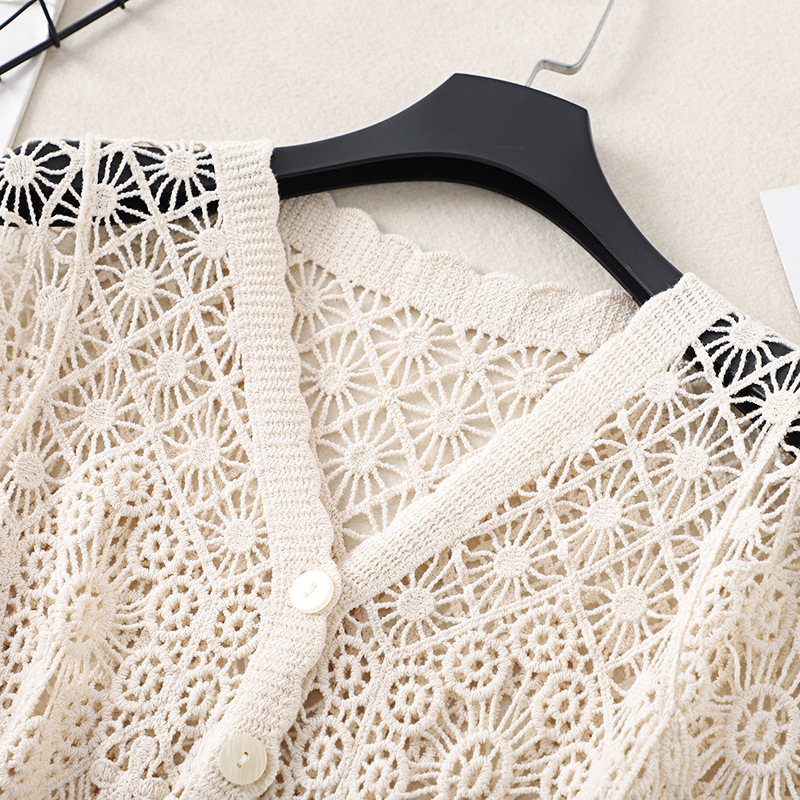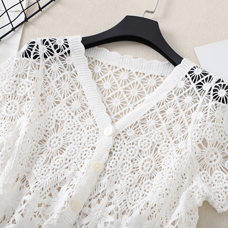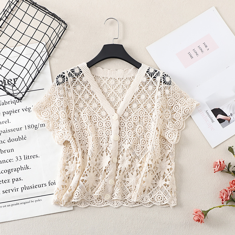 스커트 니트 반팔 탑 여성의 새로운 얇은 짧은 카디건 602