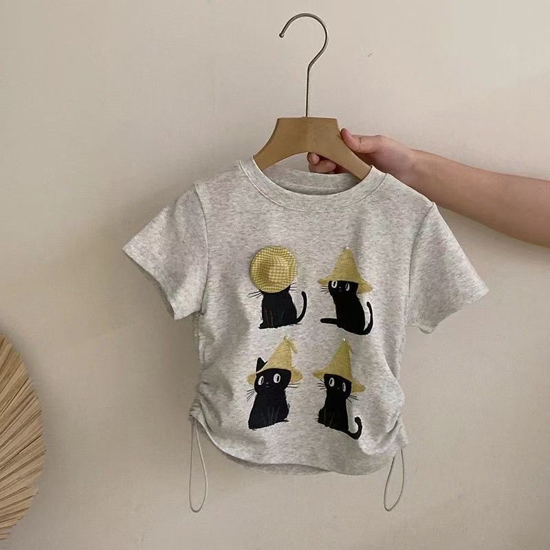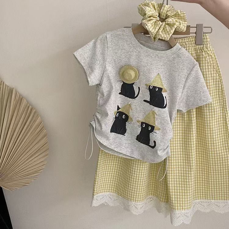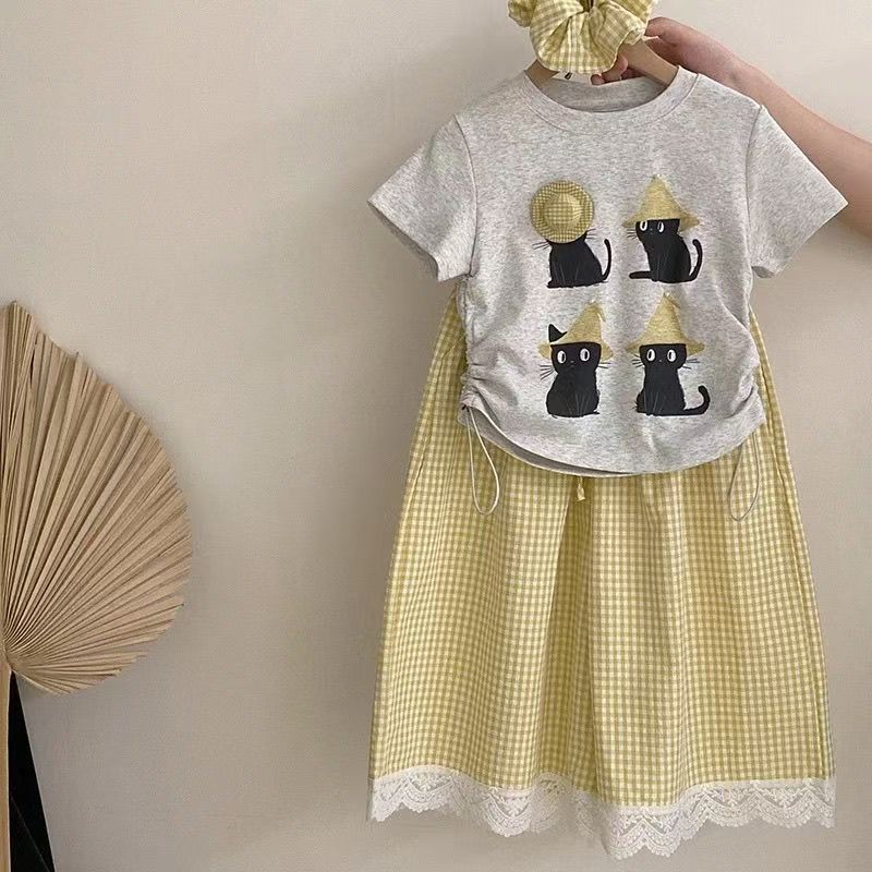 여자 반팔 세트 2025 여름 새 아동복 프린트 트렌디온 티셔츠 데님 스커트 투피스 세트스토어 가기