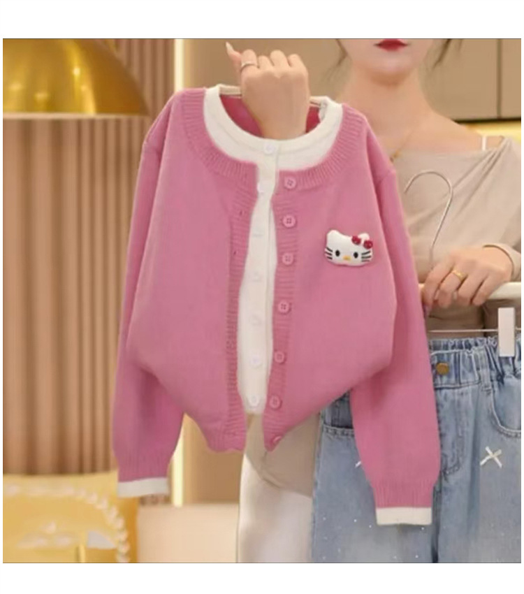 여자 봄 정장 한국 스타일 2025 새로운 어린이 달콤한 가짜 투피스 스웨터 핫 다이아몬드 청바지 투피스 세트 유행스토어 가기