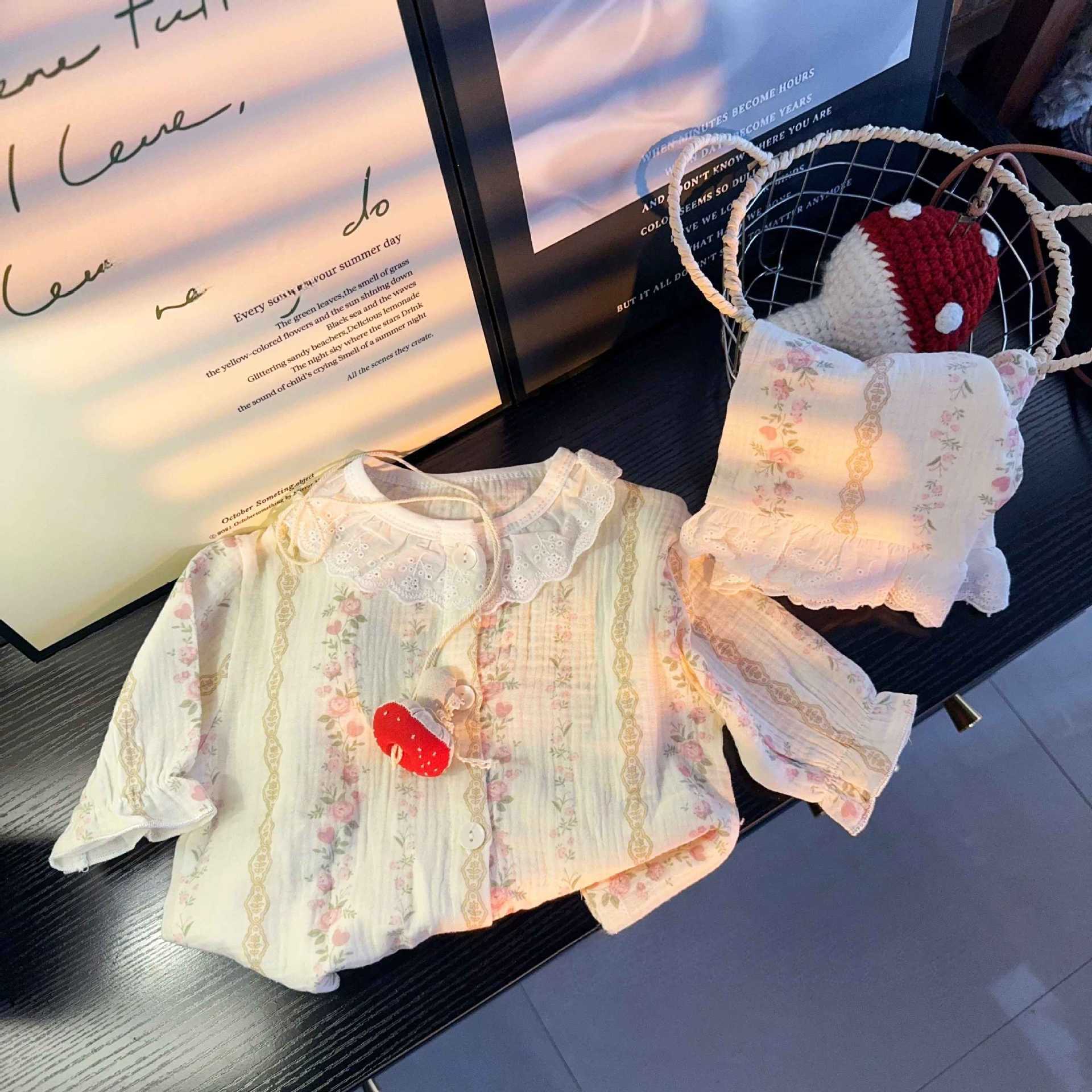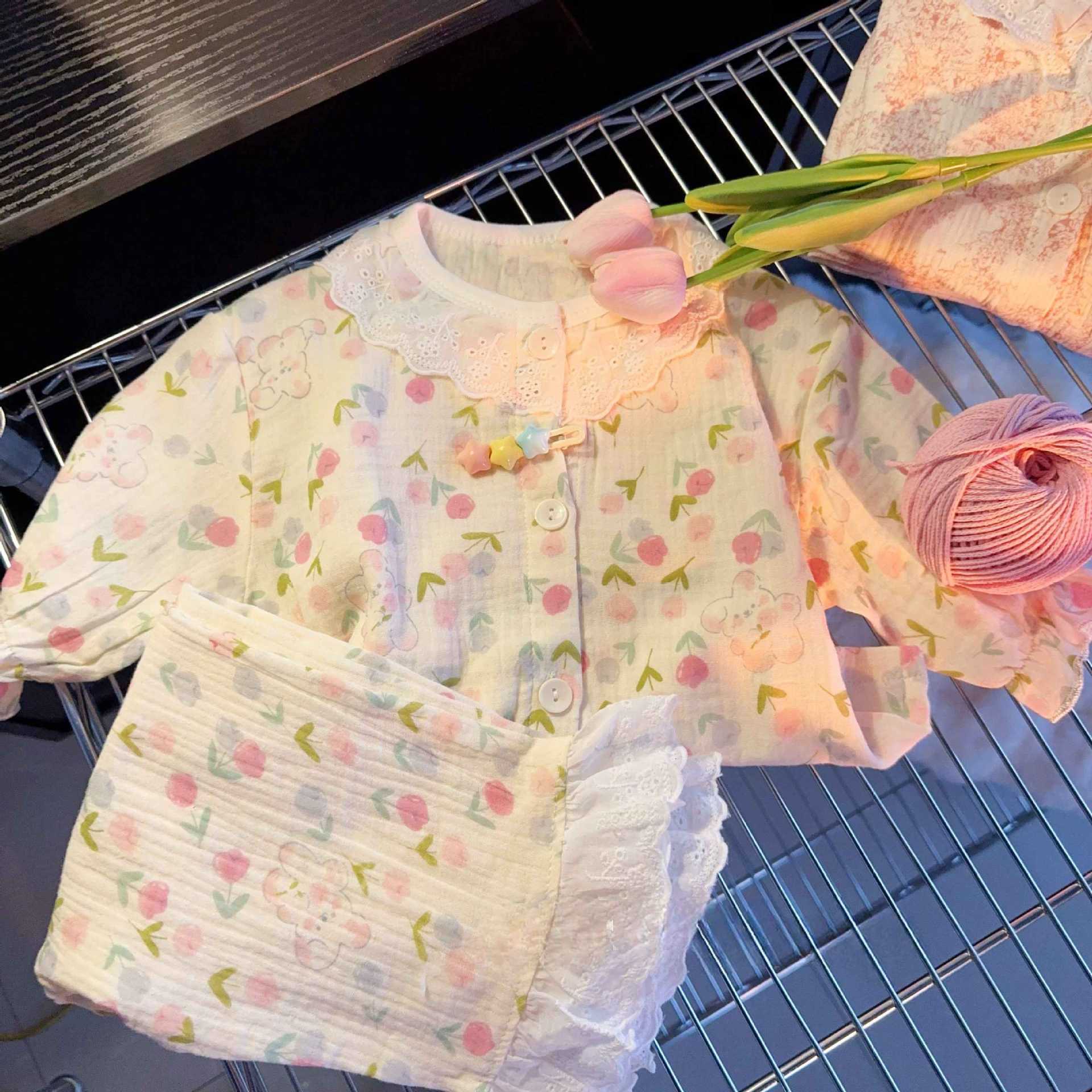 여아 홈웨어 세트 2025 봄 가을 홈웨어 편안하고 패셔너블하며 귀엽고 사랑스러운 꽃무늬 긴팔 투피스 세트