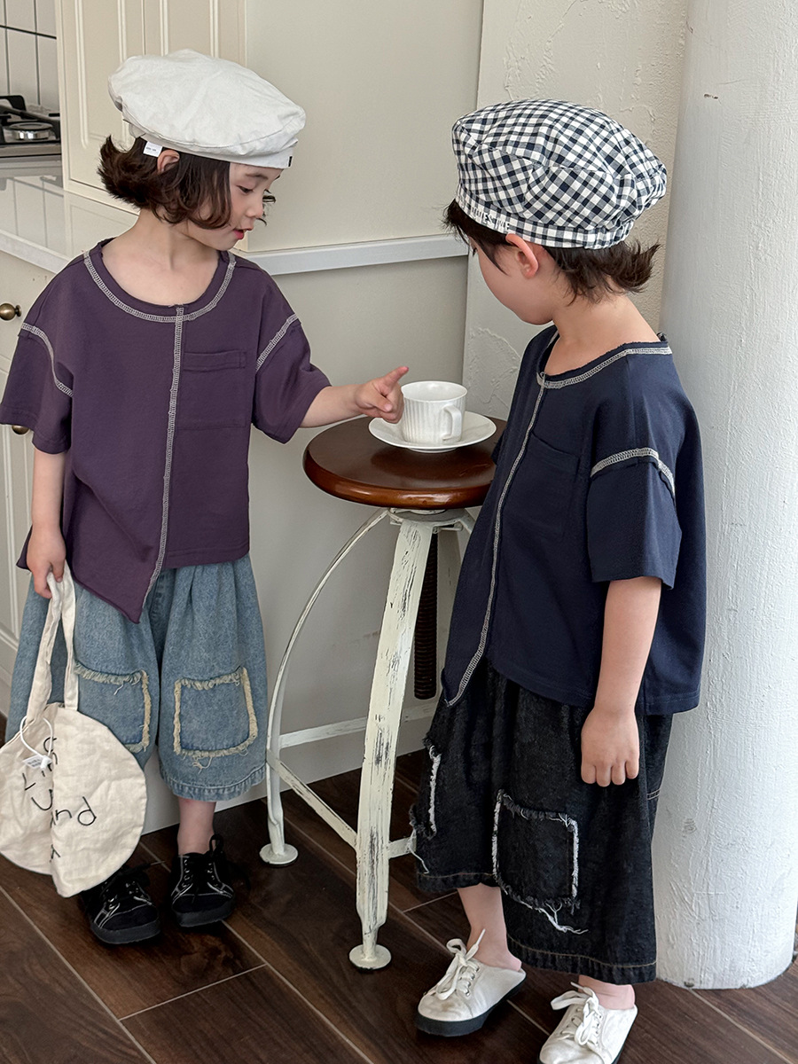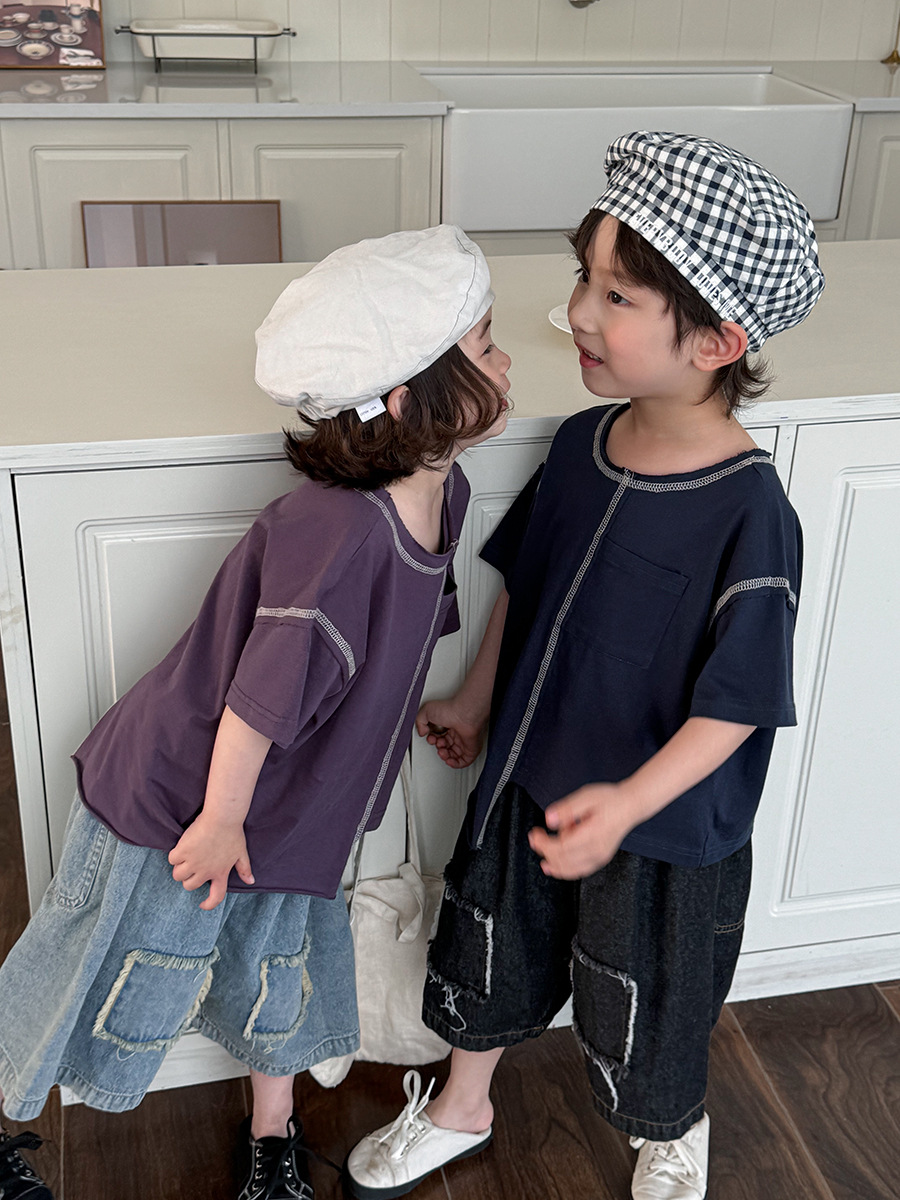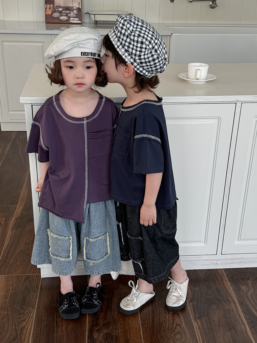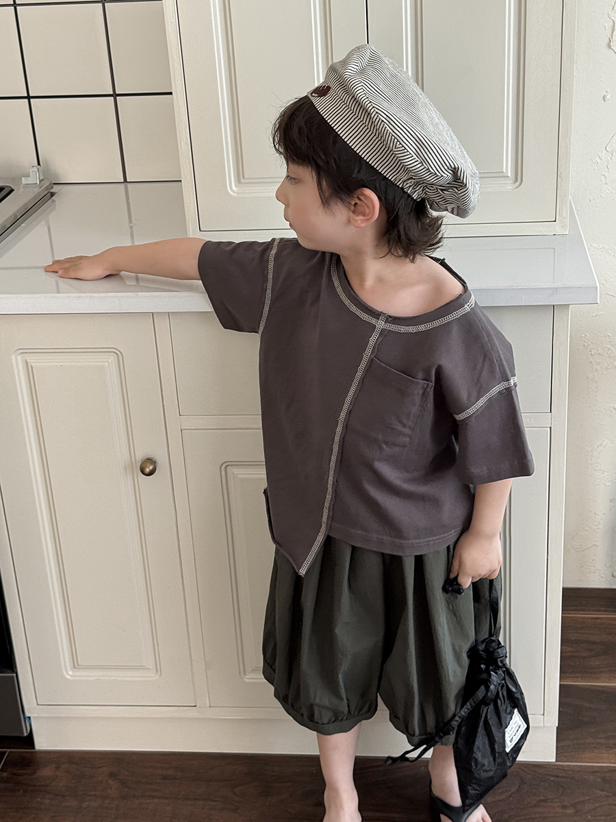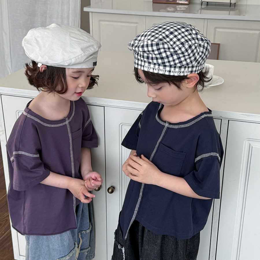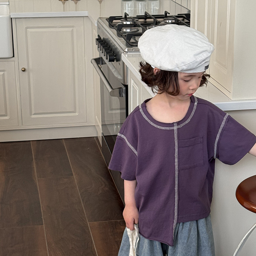 Jiaye 어린이 2025 년 어린이 여름 새로운 오픈 라인 반팔 티셔츠 소년 소녀 아기 서양식 느슨한 오픈 라인 하프 슬리브