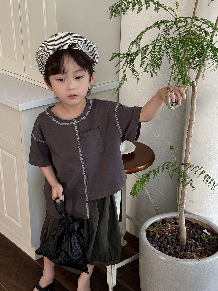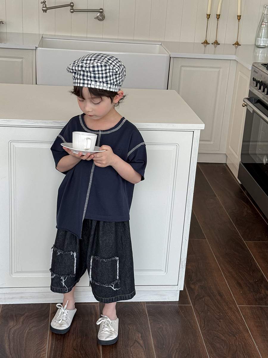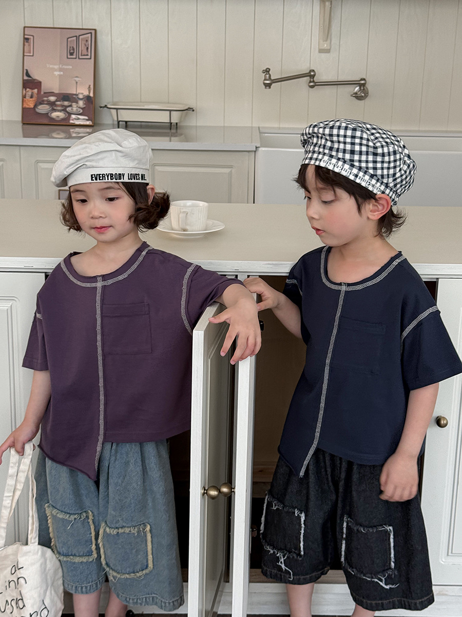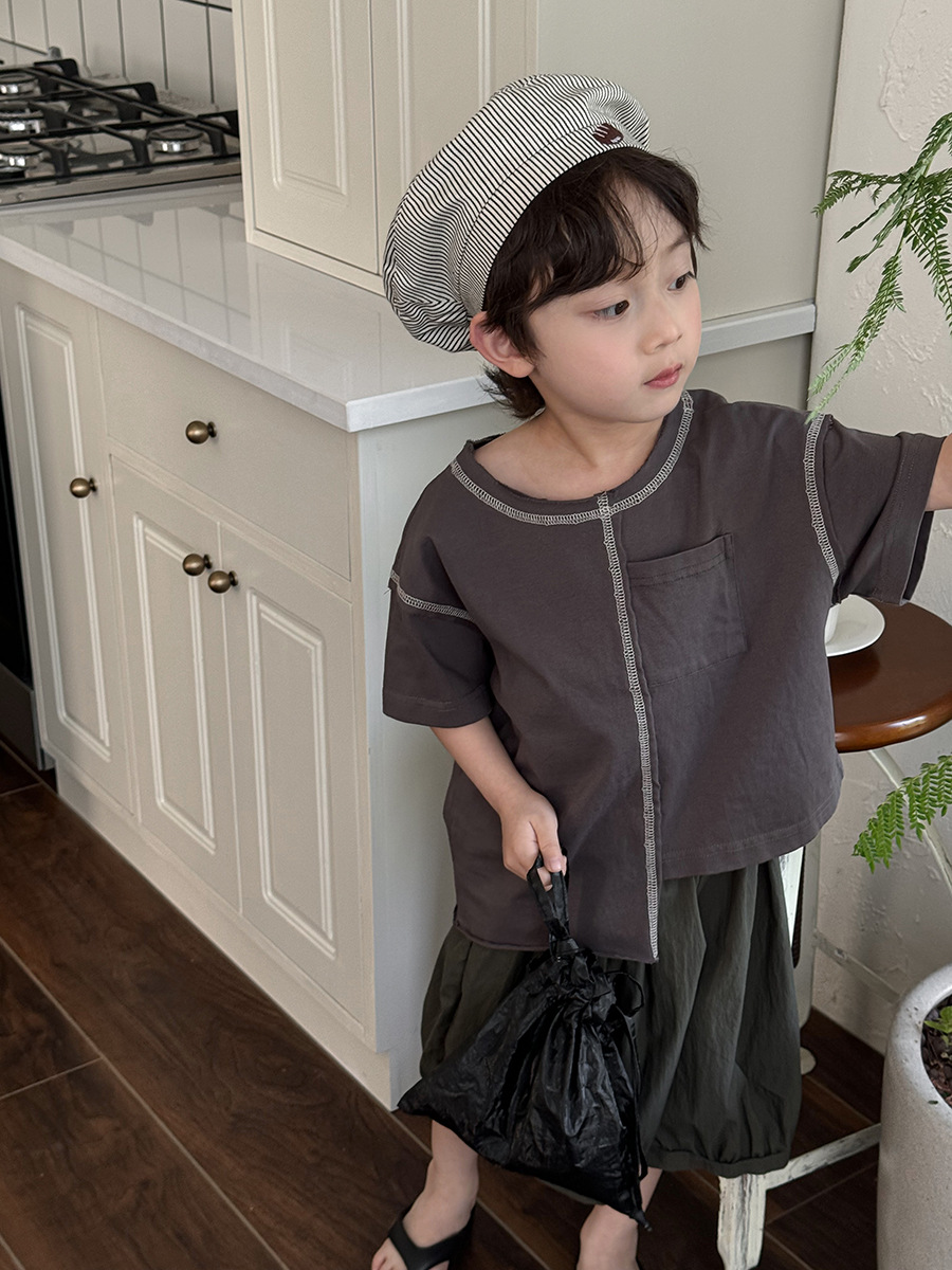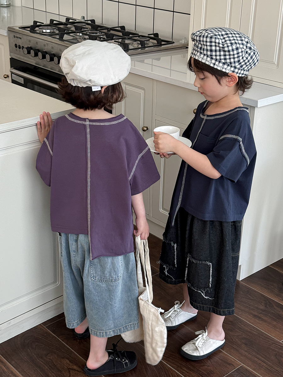 Jiaye 어린이 2025 년 어린이 여름 새로운 오픈 라인 반팔 티셔츠 소년 소녀 아기 서양식 느슨한 오픈 라인 하프 슬리브