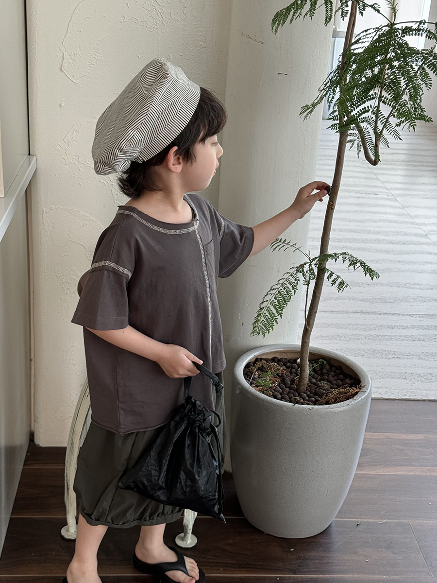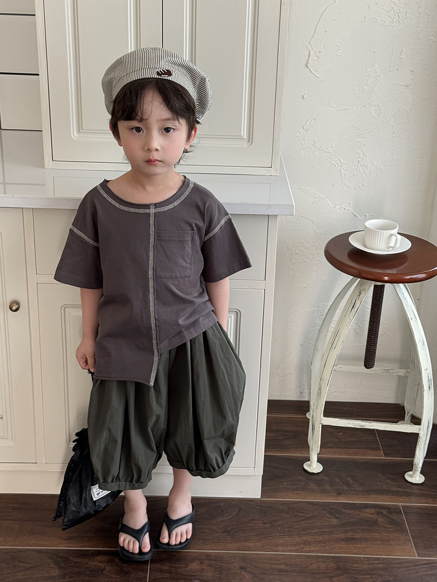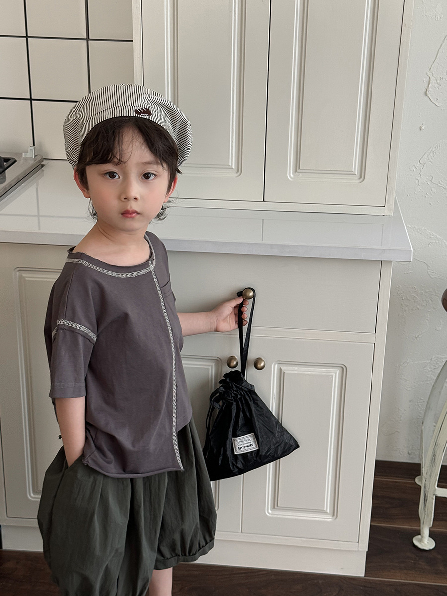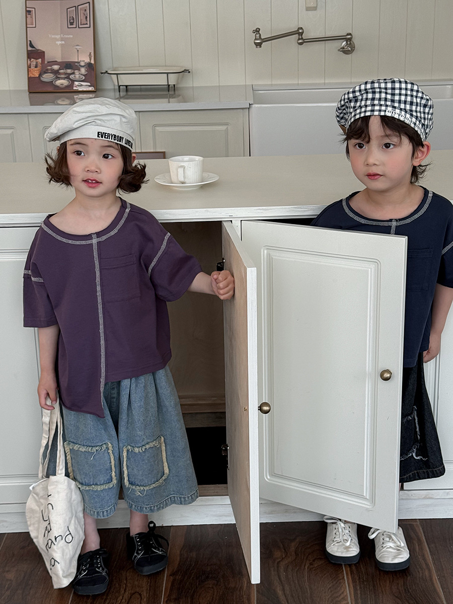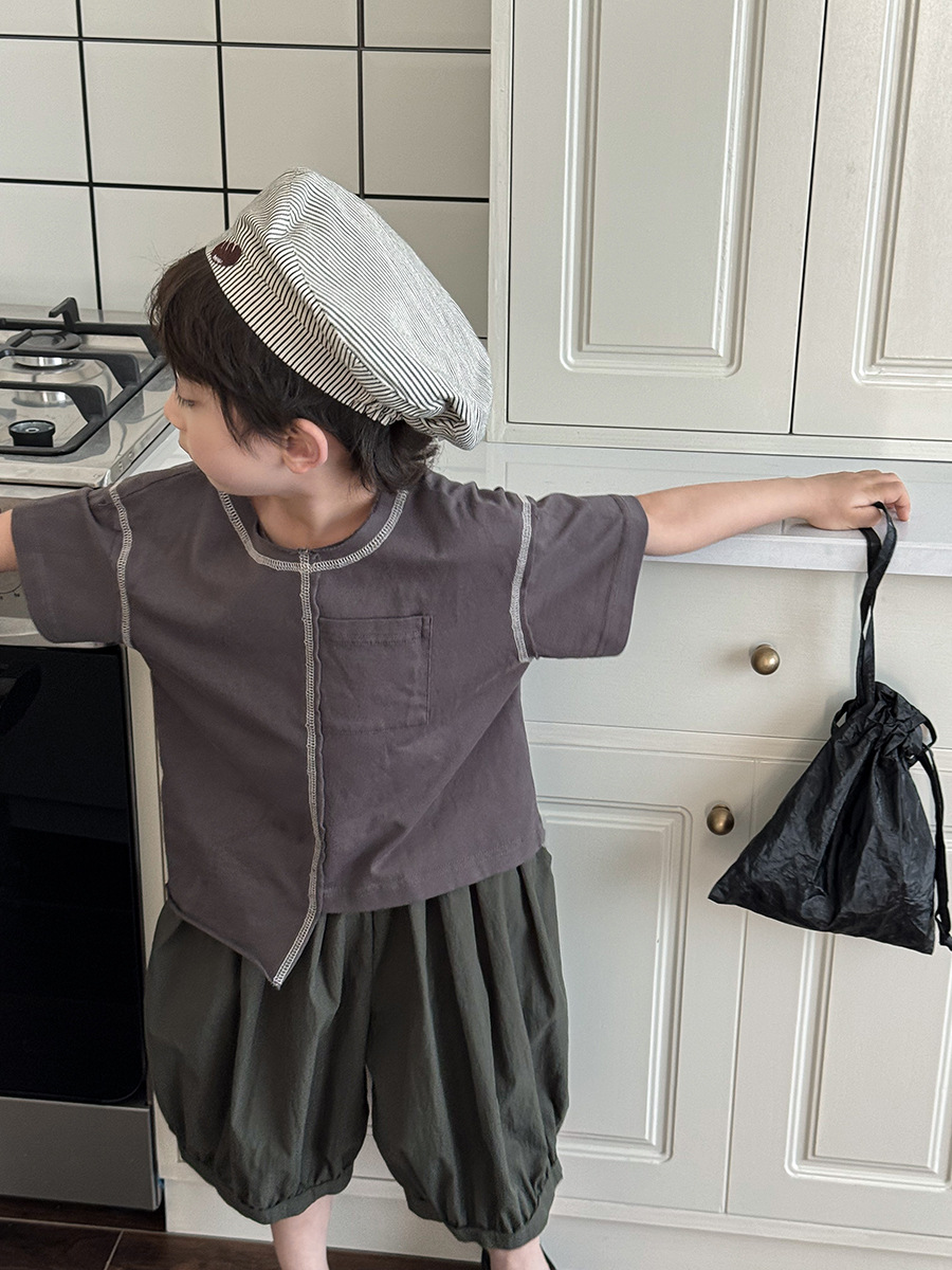 Jiaye 어린이 2025 년 어린이 여름 새로운 오픈 라인 반팔 티셔츠 소년 소녀 아기 서양식 느슨한 오픈 라인 하프 슬리브