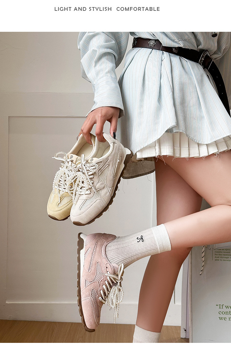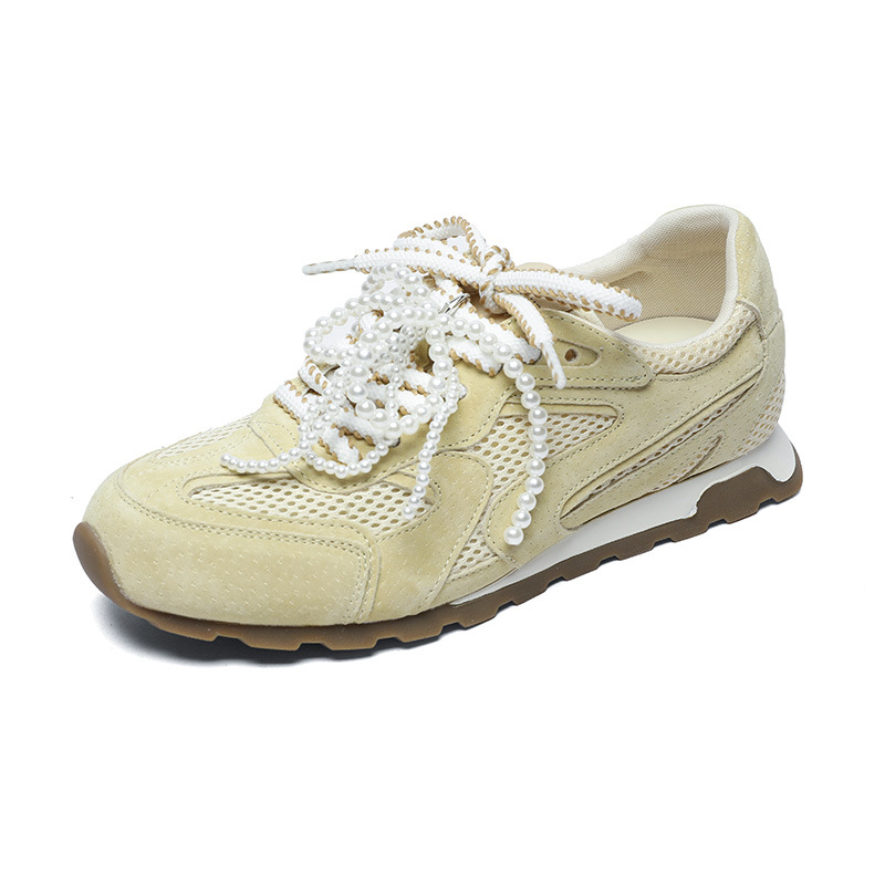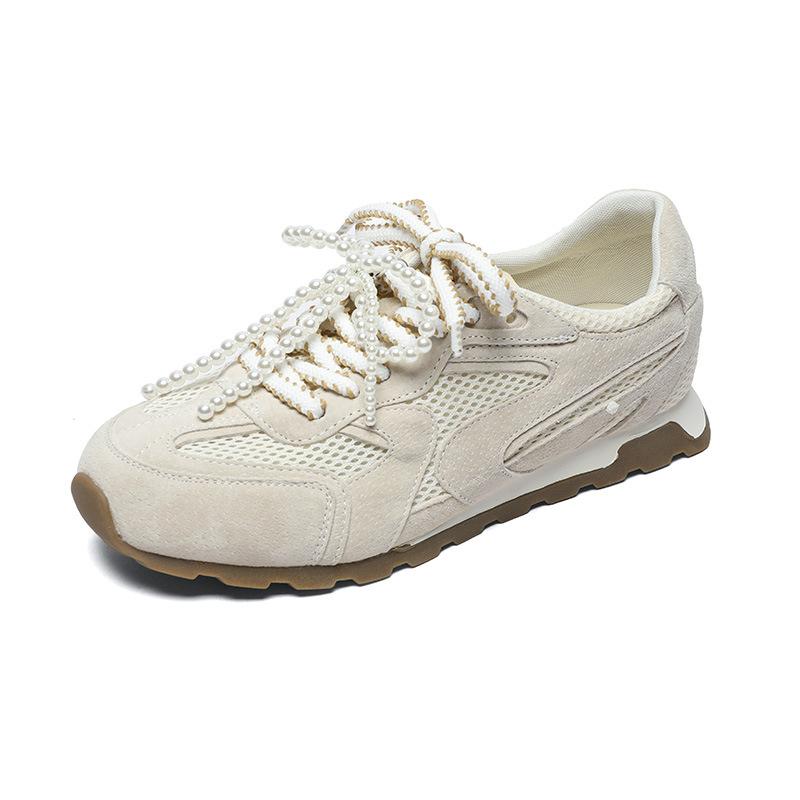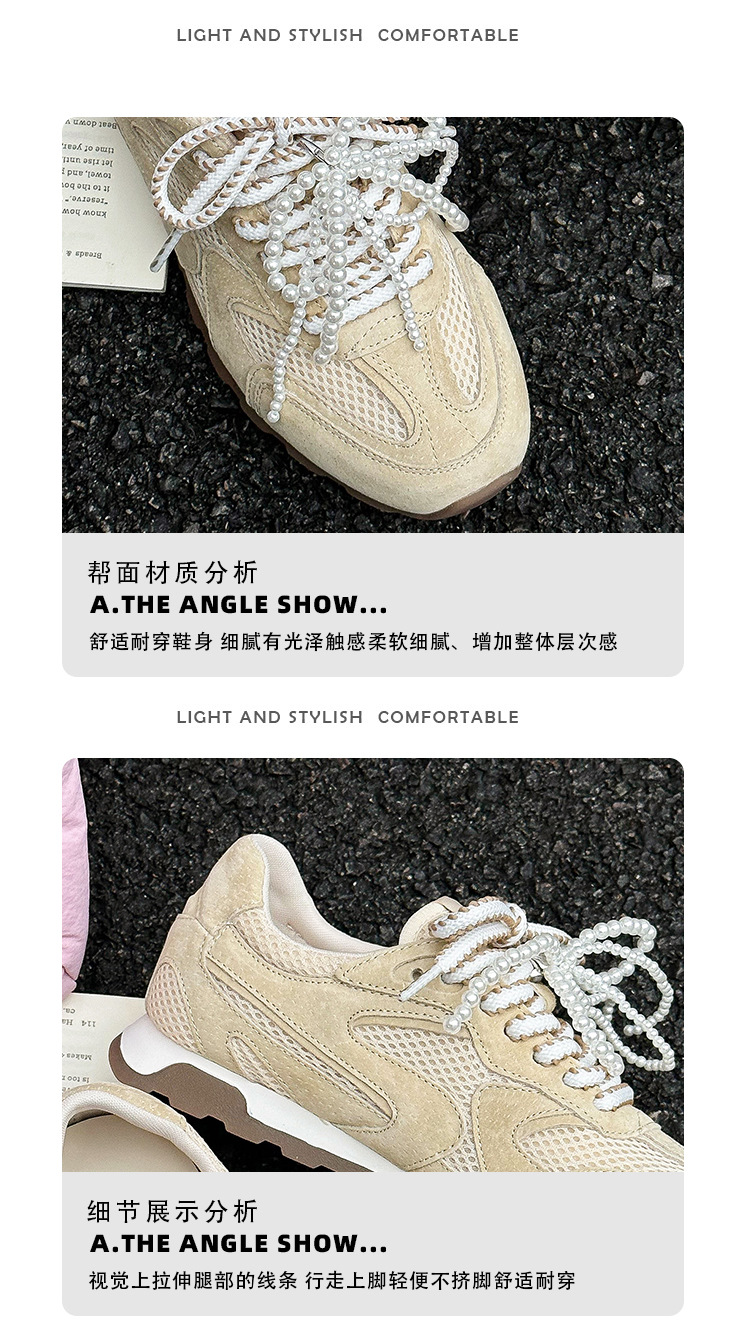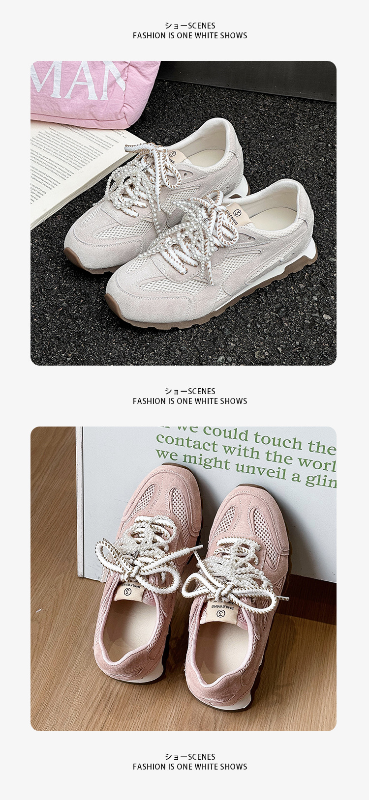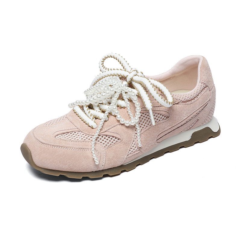 메시 펄 레이스 업 올 매치 캐주얼 포레스트 검프 슈즈 여성용 2025 년 여름 새로운 정품 가죽 소프트 솔 하이트닝 슈즈스토어 가기