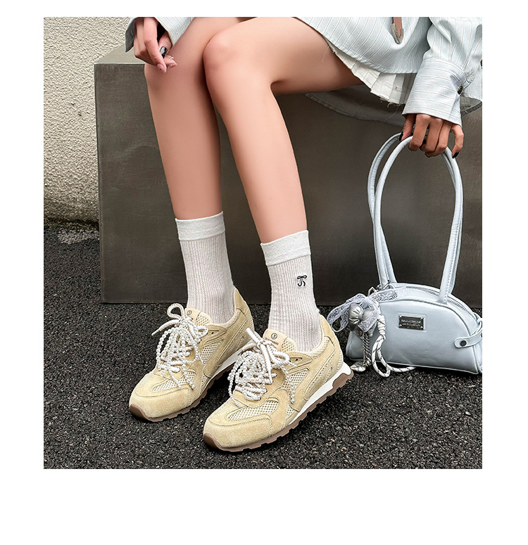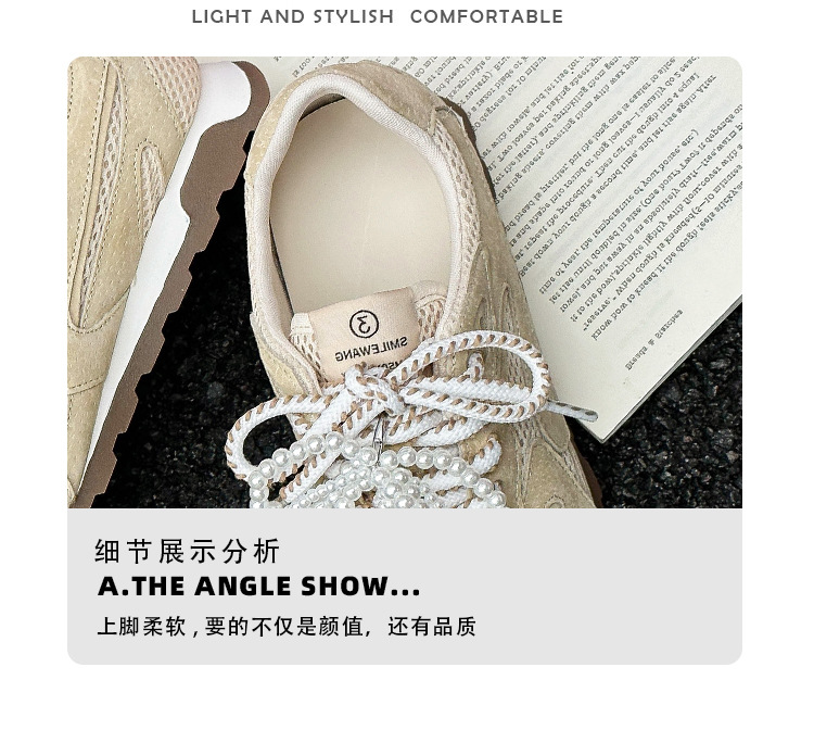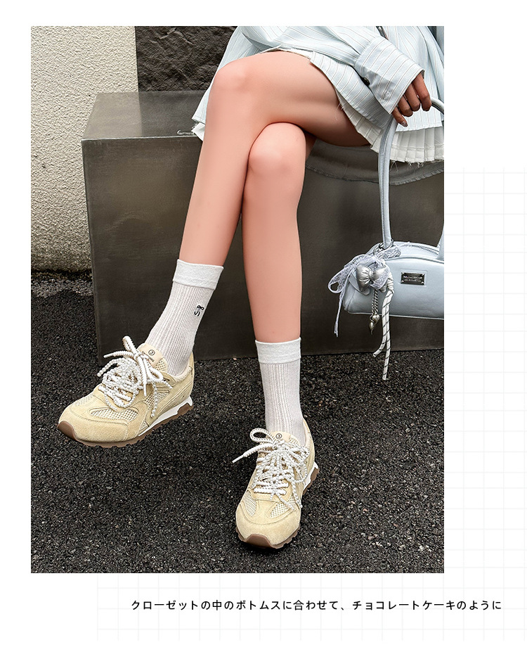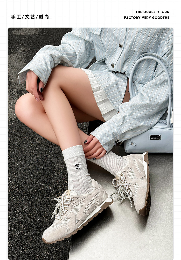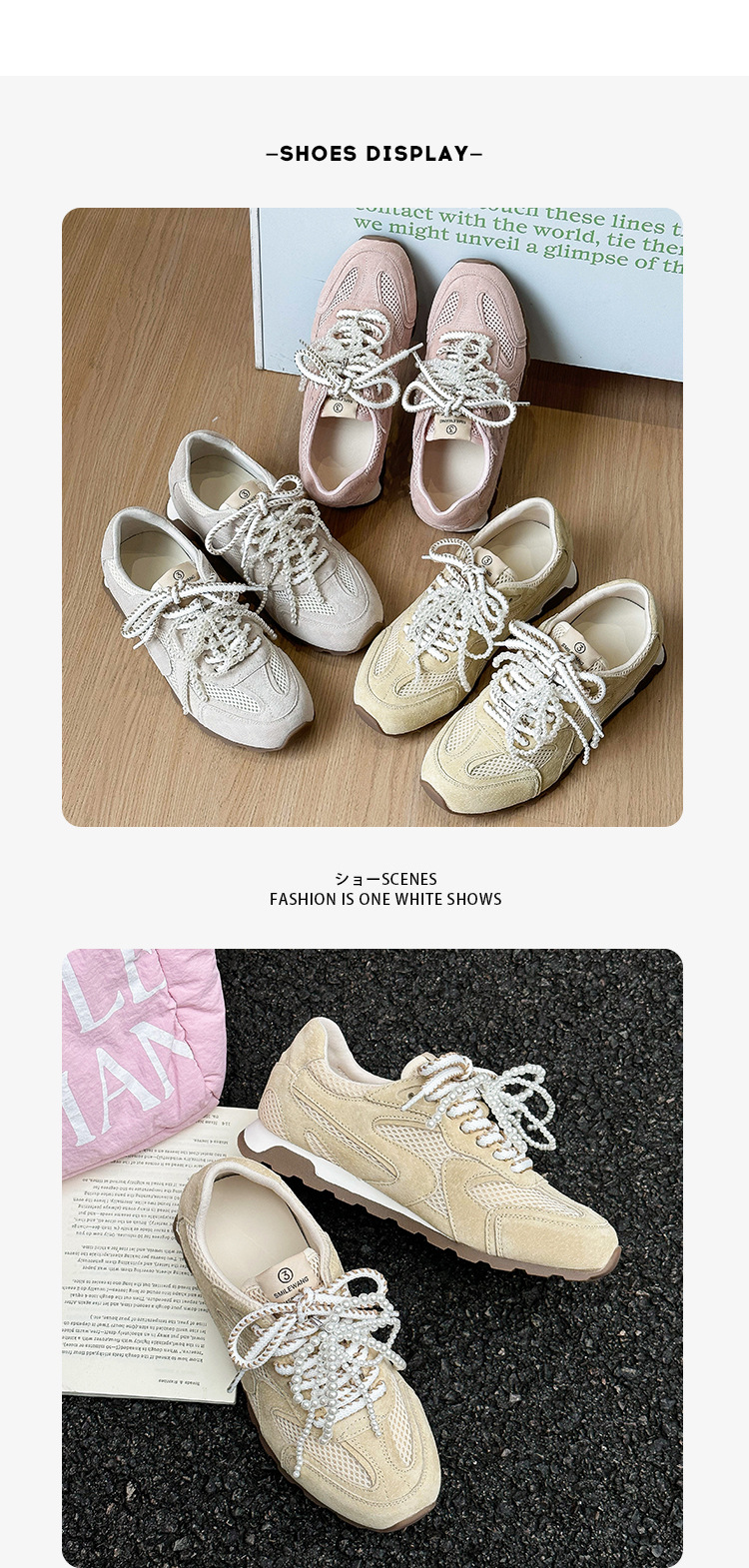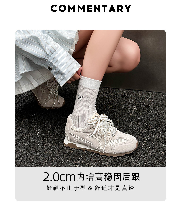 메시 펄 레이스 업 올 매치 캐주얼 포레스트 검프 슈즈 여성용 2025 년 여름 새로운 정품 가죽 소프트 솔 하이트닝 슈즈스토어 가기