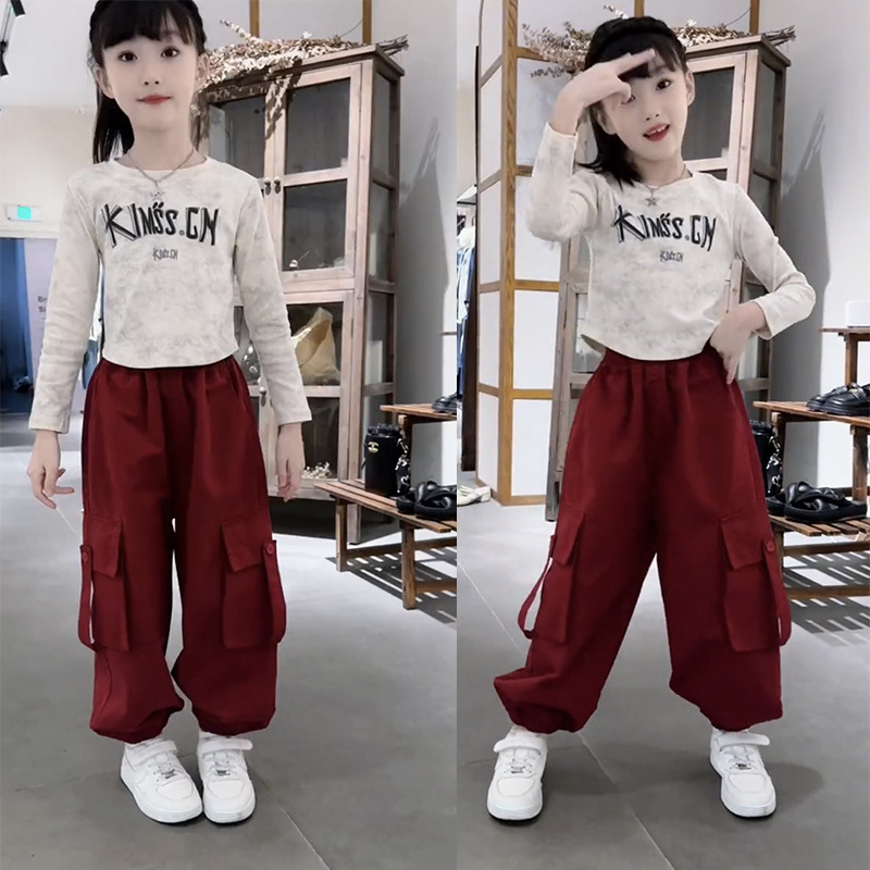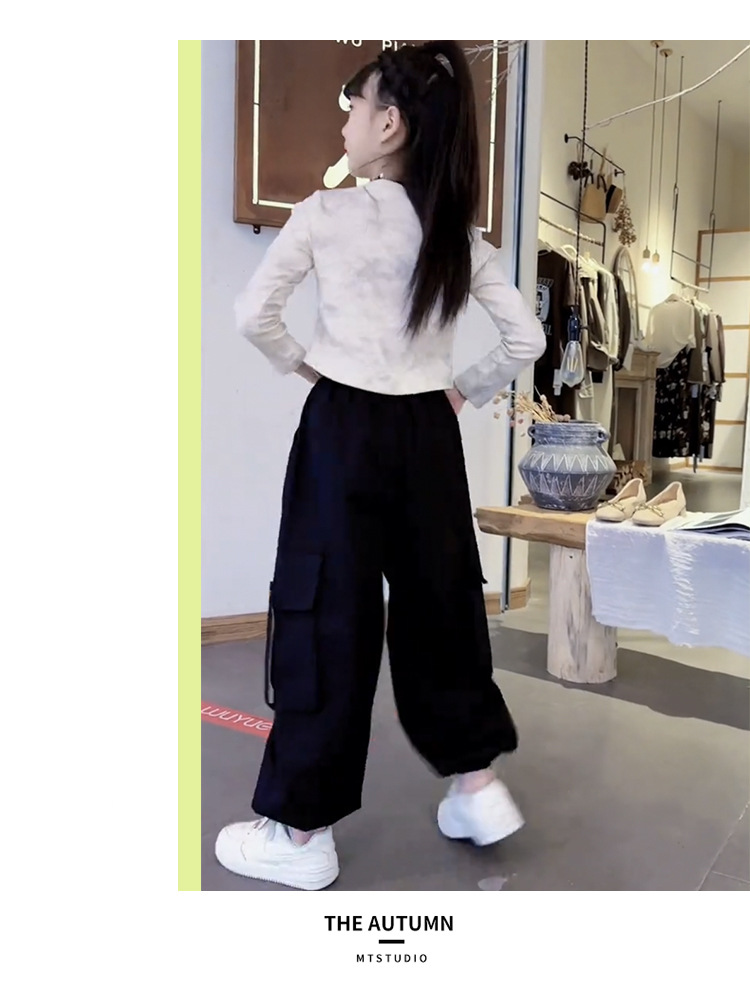 여아 봄, 가을 정장 한국 스타일 2025 새로운 중대형 아동 캐주얼 바닥 셔츠 여아 스타일 작업복 투피스 세트