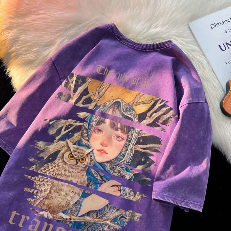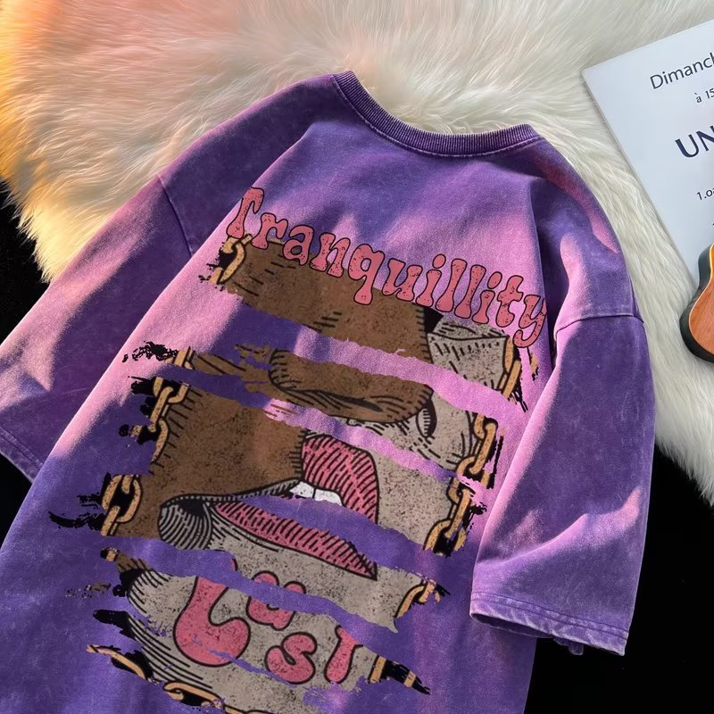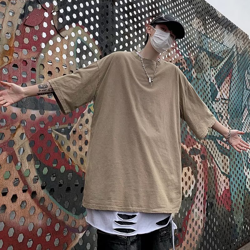 아메리칸 스타일 하이 스트리트 트렌디 브랜드 퓨어 코튼 반팔 티셔츠 남성용 여름 빈티지 유행 캐주얼 세탁 오래 된 반소매 트렌디 핸섬 티셔츠스토어 가기