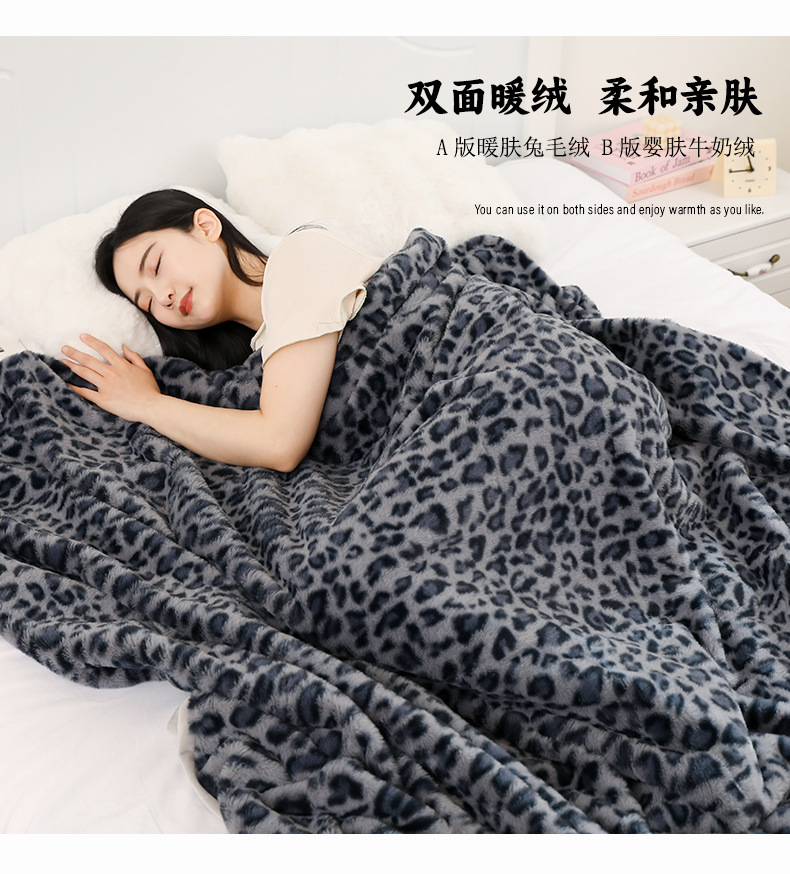아마존 레오파드 무늬 담요 소파 국경 간 모조 토끼 모피 더블 레이어 두꺼운 담요스토어 가기