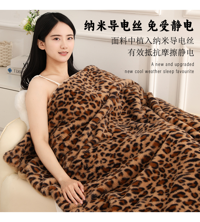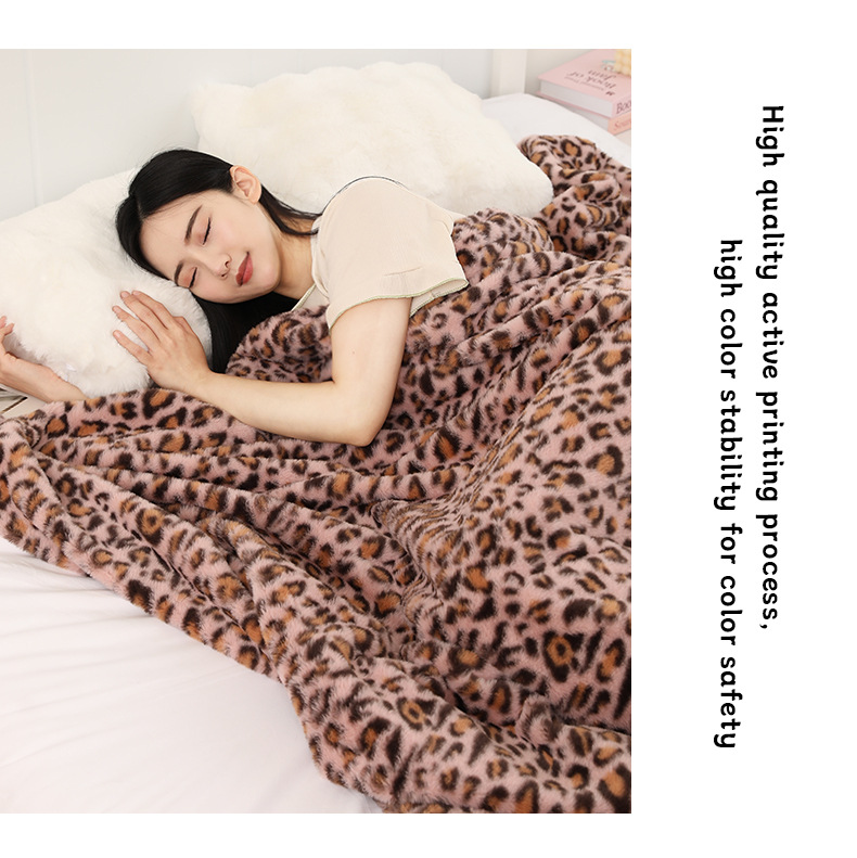 아마존 레오파드 무늬 담요 소파 국경 간 모조 토끼 모피 더블 레이어 두꺼운 담요