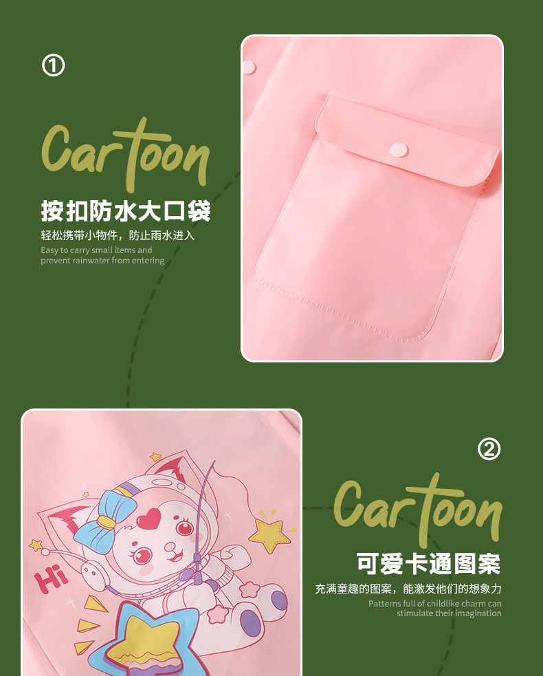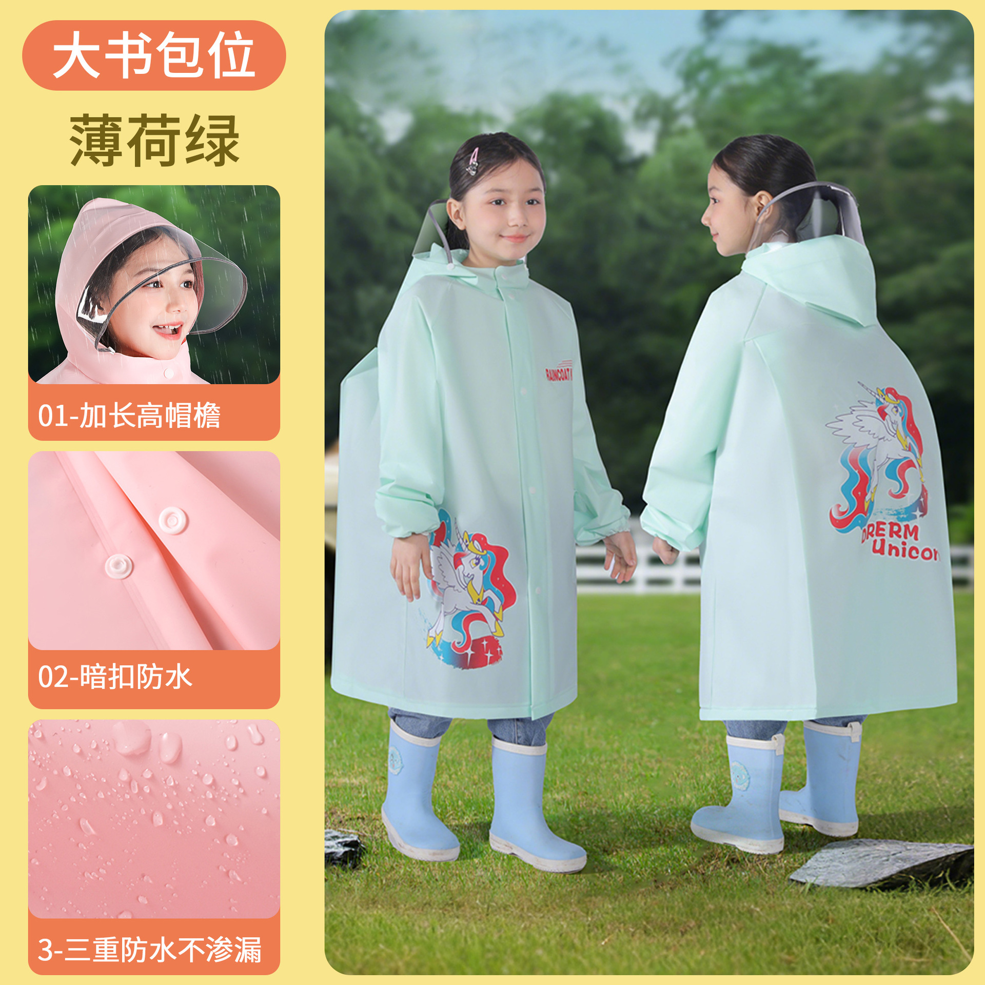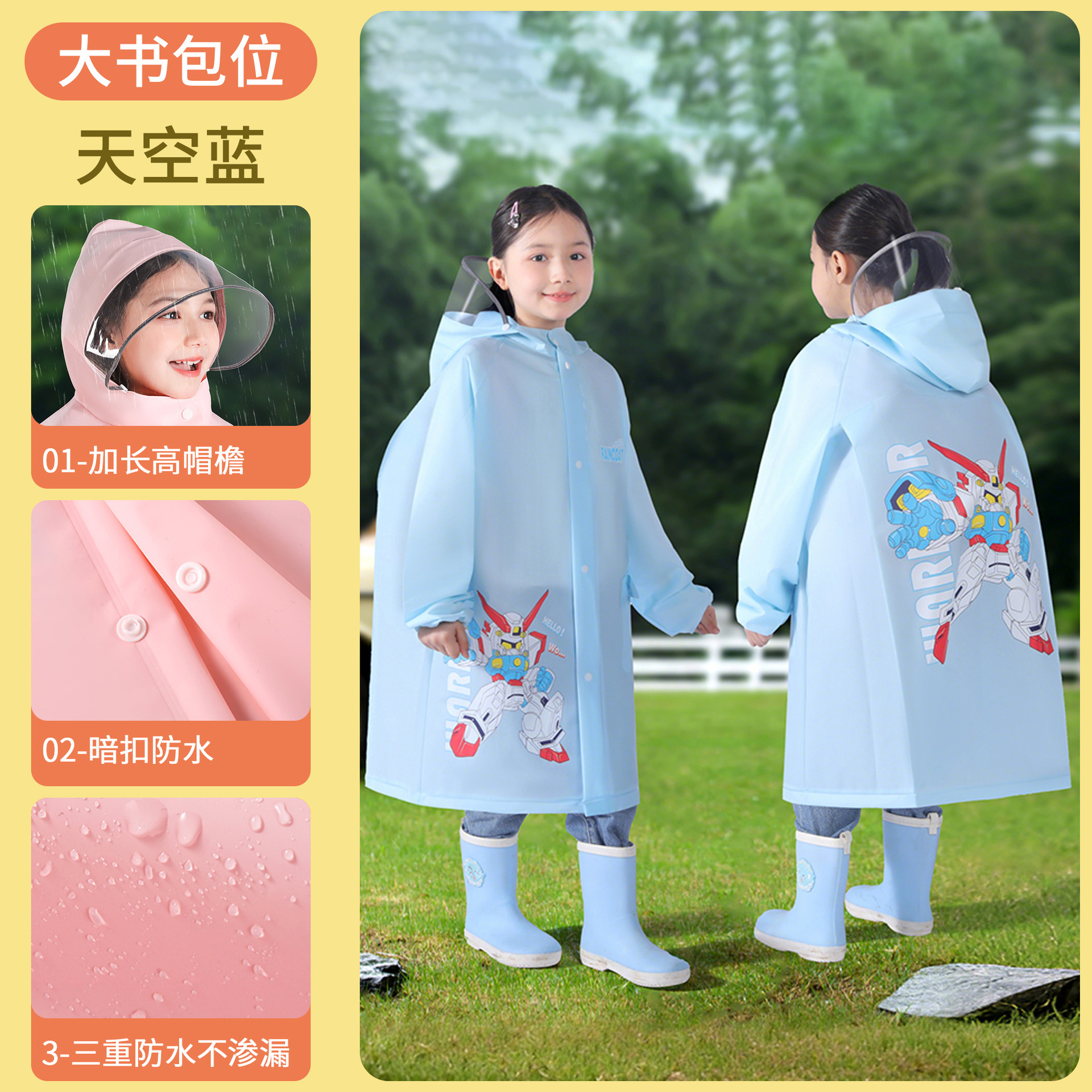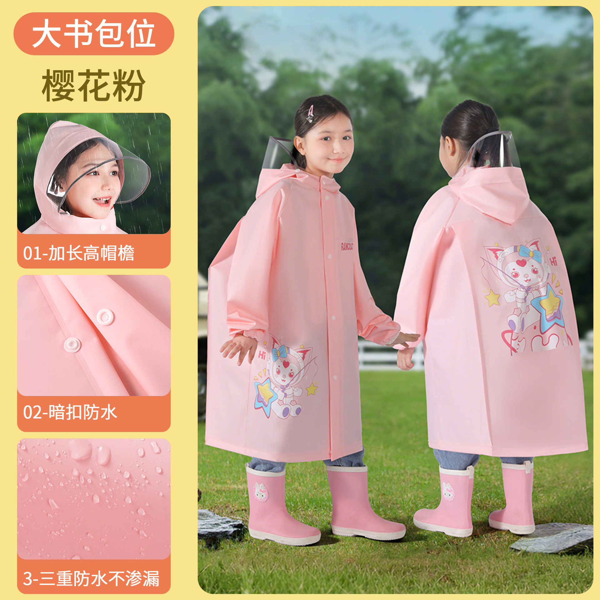 학교 가방을 가진 학생들을위한 어린이 비옷 소년 및 소녀 올인원 방수 폭풍우 판초
