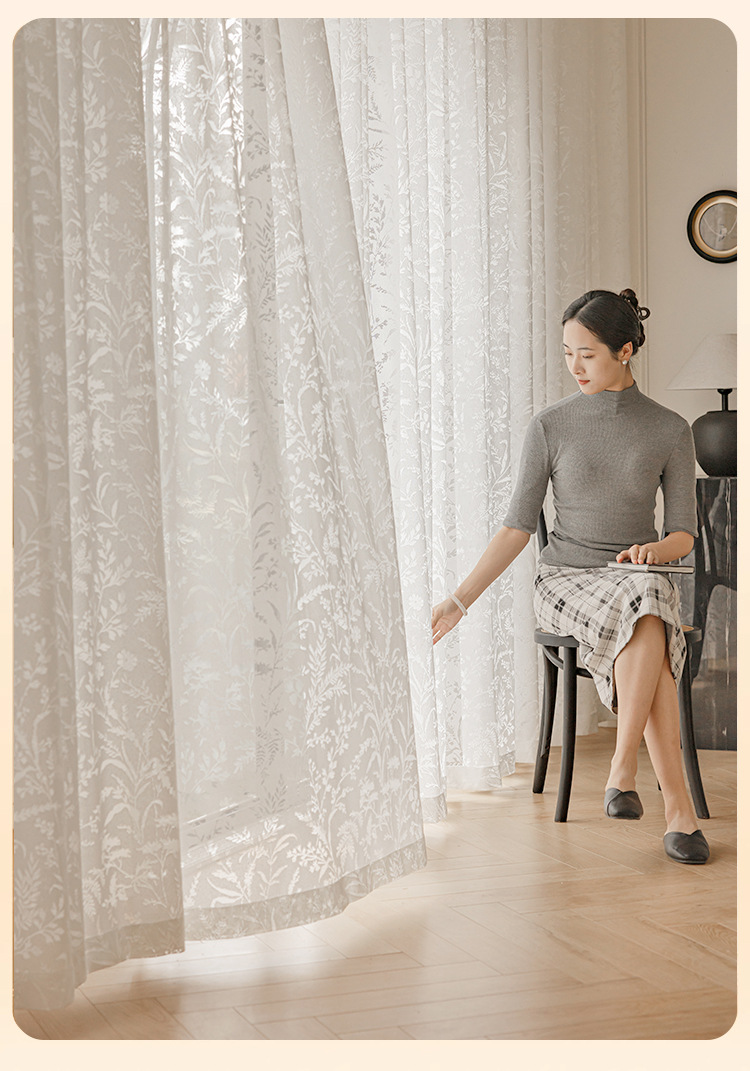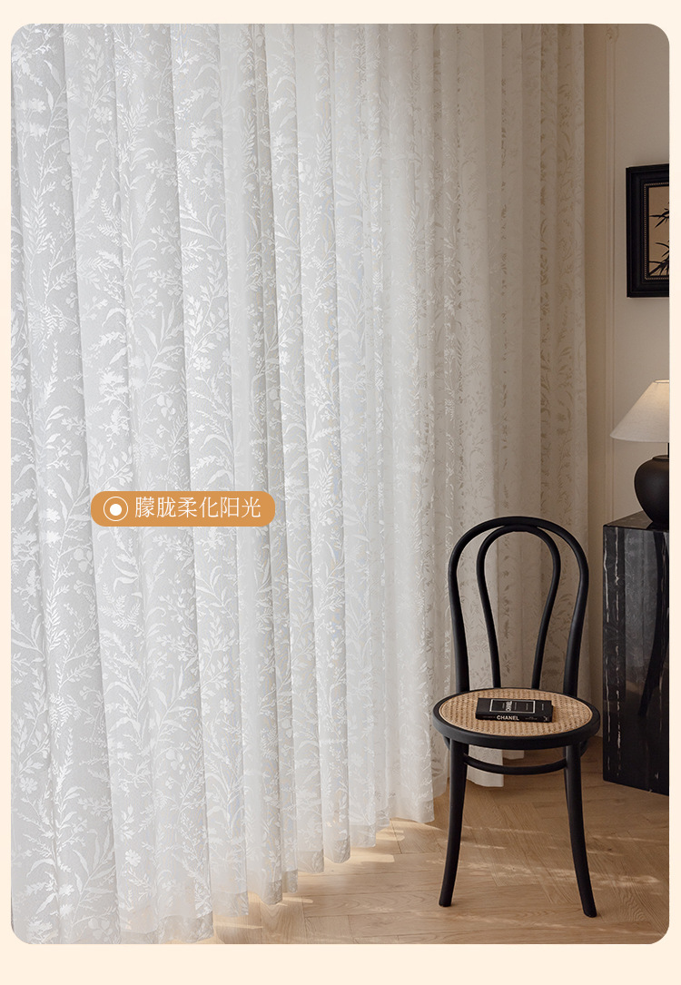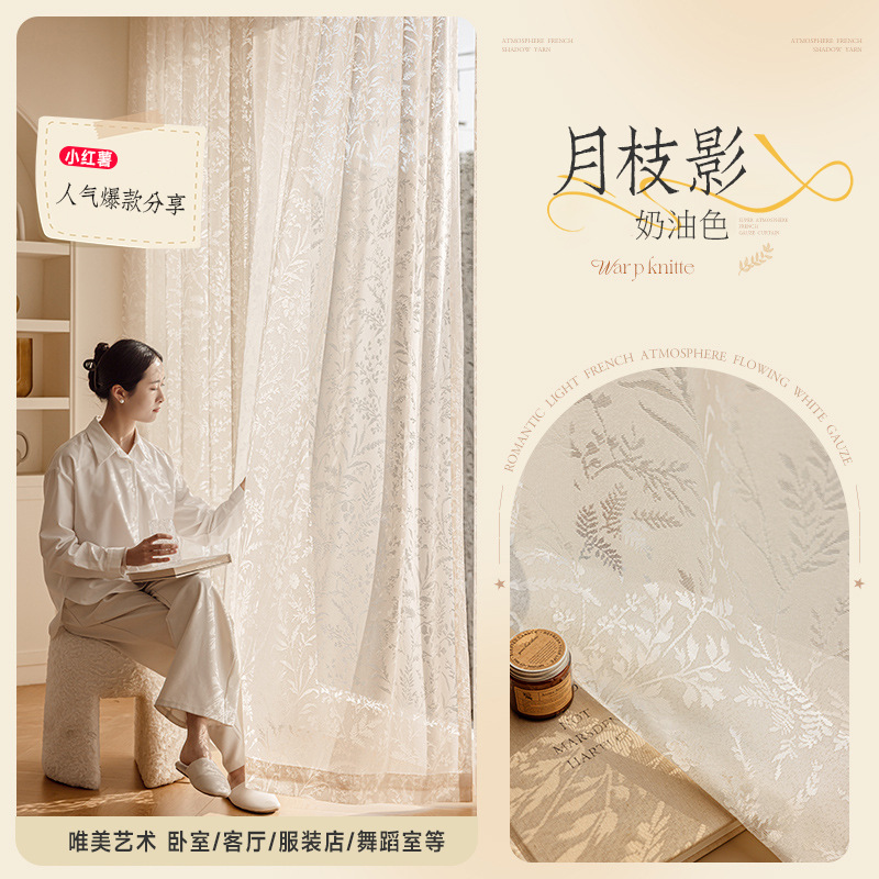 문 브랜치 그림자 창 화면 프렌치 할로우 레이스 빛과 그림자 거실 침실 베이 창 발코니 구멍이 뚫린 커튼 마감 거즈 커튼스토어 가기