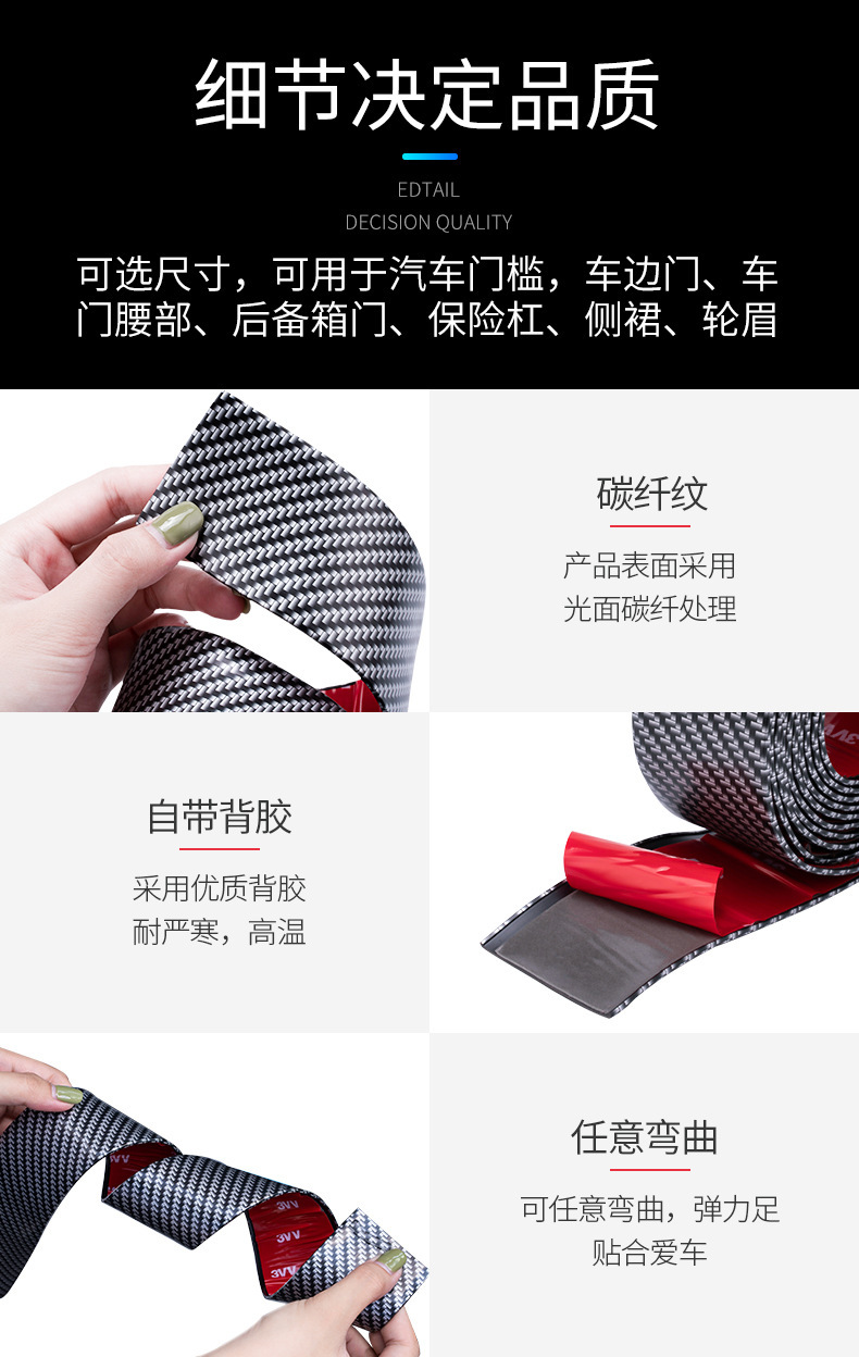 • 전면 접착 | 길이 4m 폭 7CM [탄소 섬유 블랙]