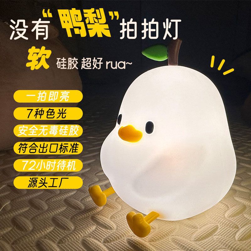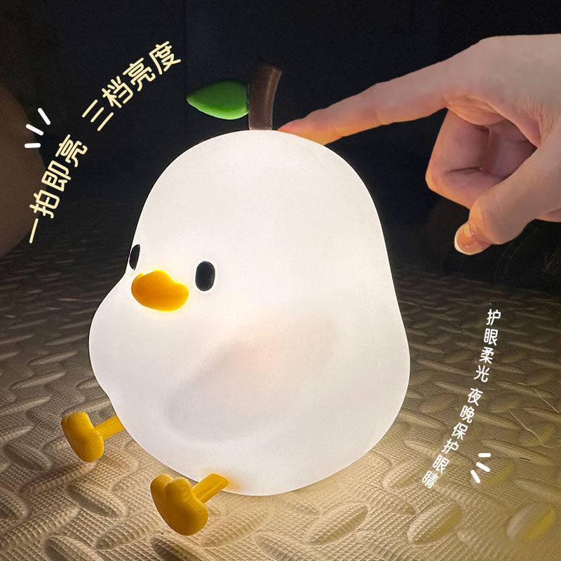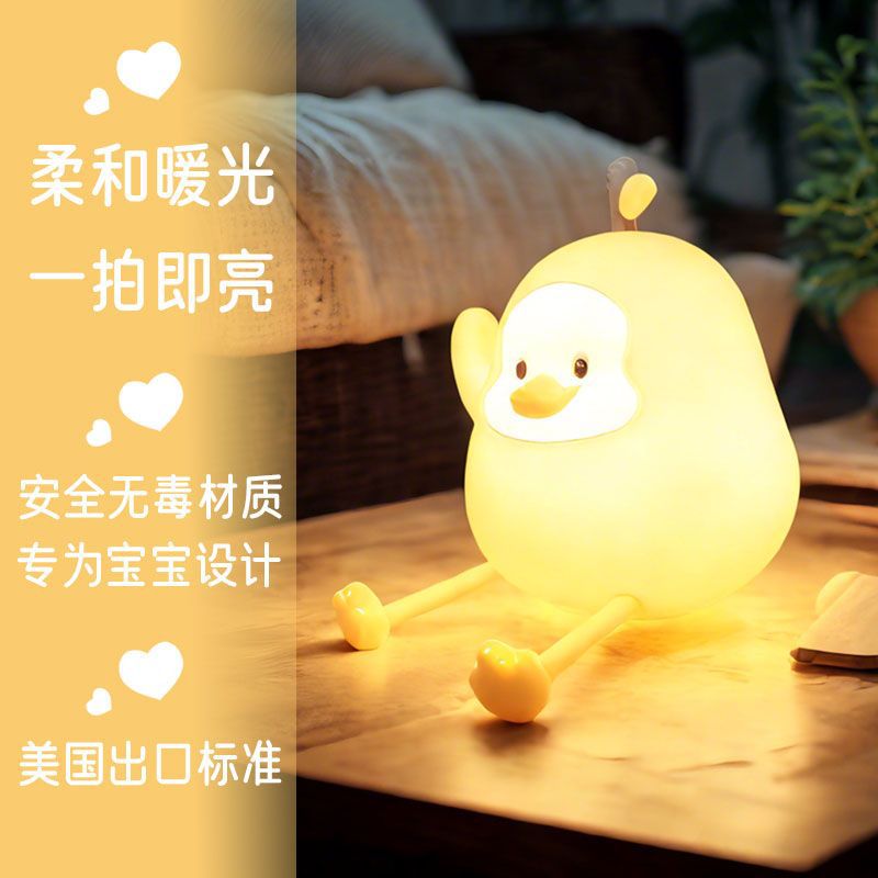 오리 모양 수면 센서 램프 충전식 따뜻한 빛 실리콘 야간등 침실 침대 옆 램프 LED 램프