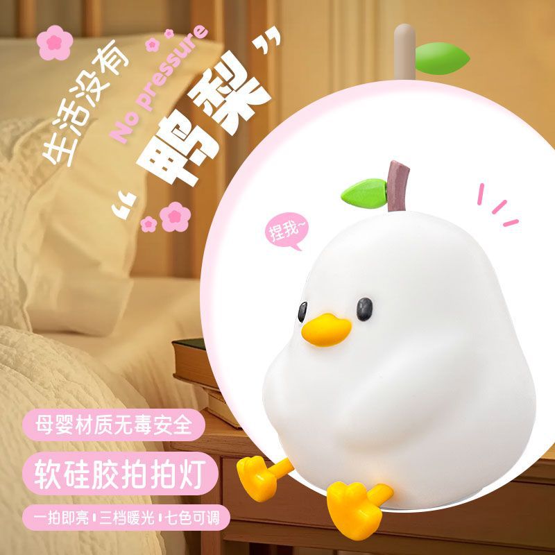 오리 모양 수면 센서 램프 충전식 따뜻한 빛 실리콘 야간등 침실 침대 옆 램프 LED 램프스토어 가기