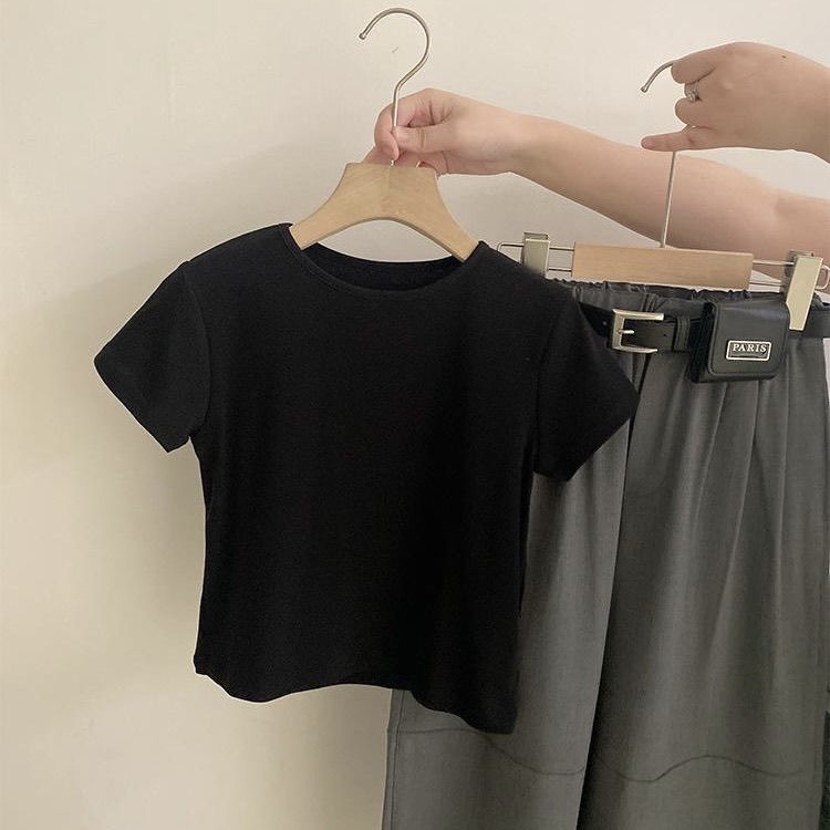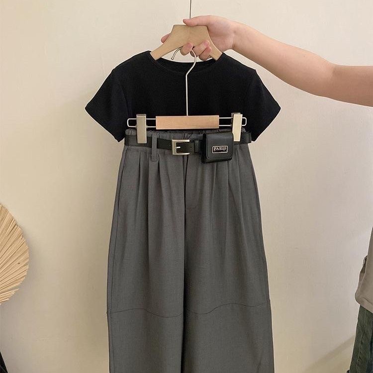 여자 여름 세트 2025 새로운 패션 걸스 여름 단색 반팔 캐주얼 루즈 바지 투피스 세트 트렌디스토어 가기