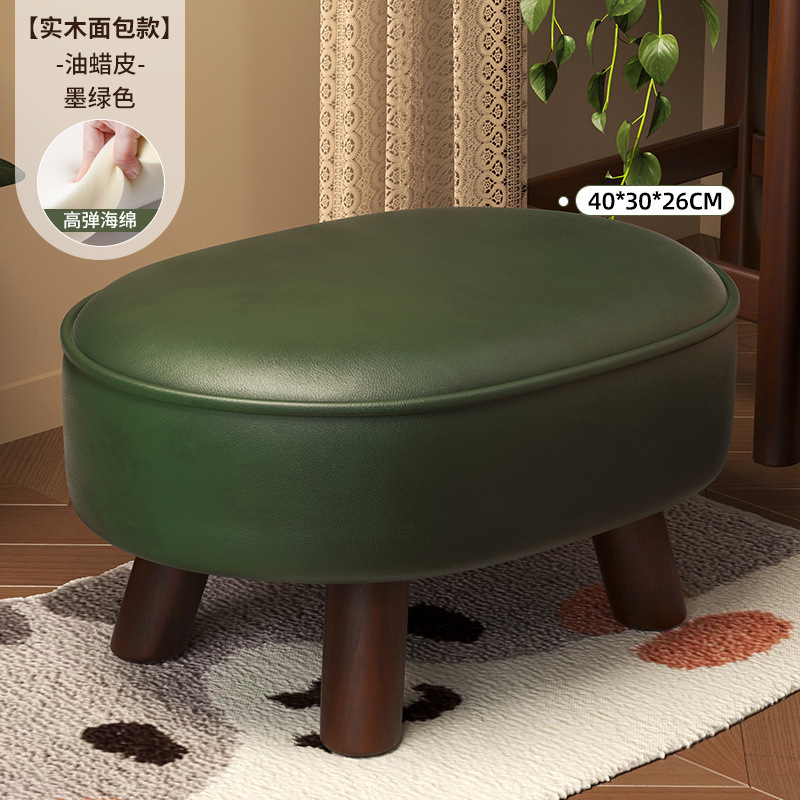 • 짙은 녹색 호박 스툴 오일 왁스 가죽 원목 다리