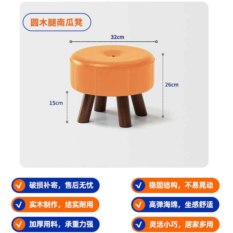 • 따뜻한 오렌지색 호박 스툴 고양이 발톱 가죽 원목 다리