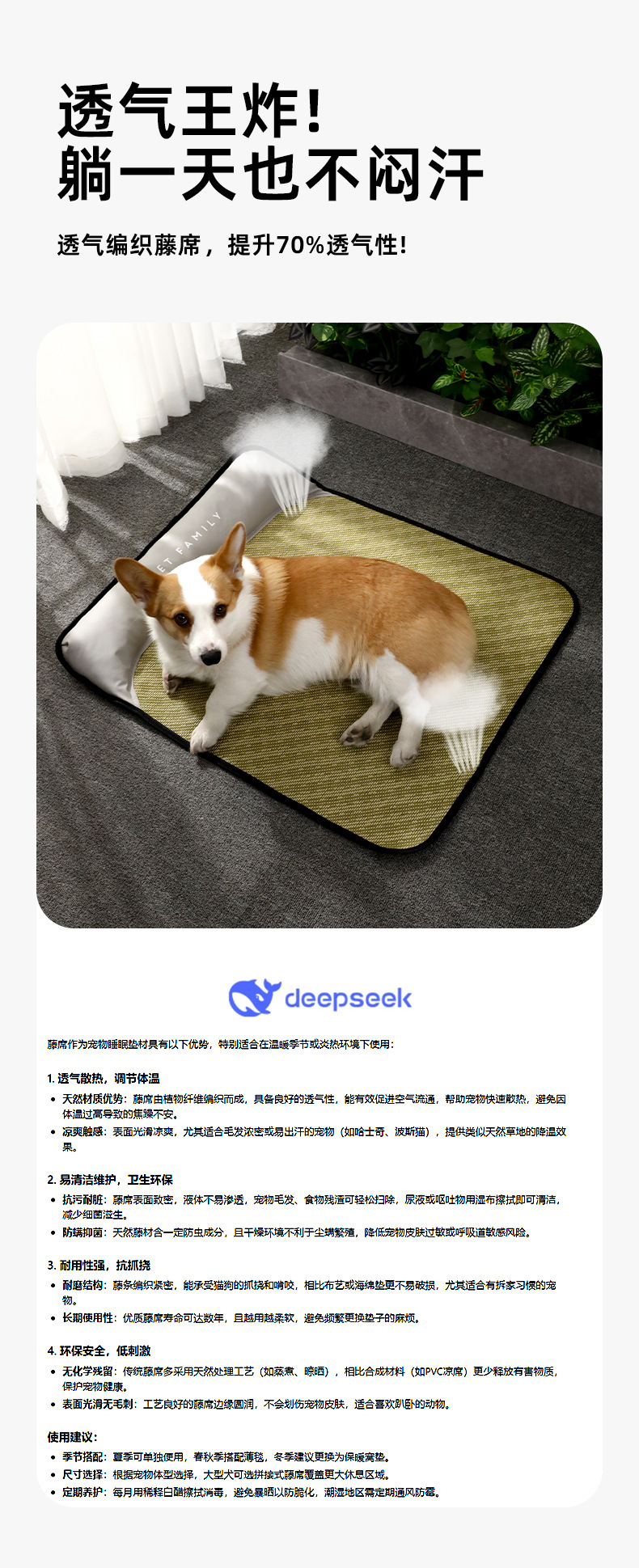 여름 개 매트 매트 등나무 매트 개집 바닥 매트 애완 동물 수면 매트 찢어짐 방지 개 여름 베개 수면 매트 고양이 개집