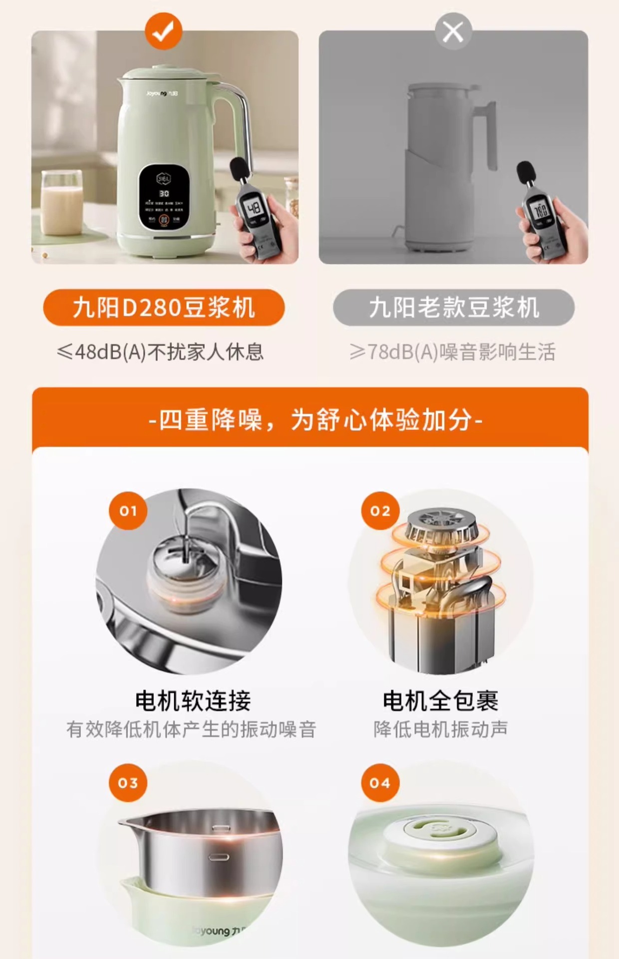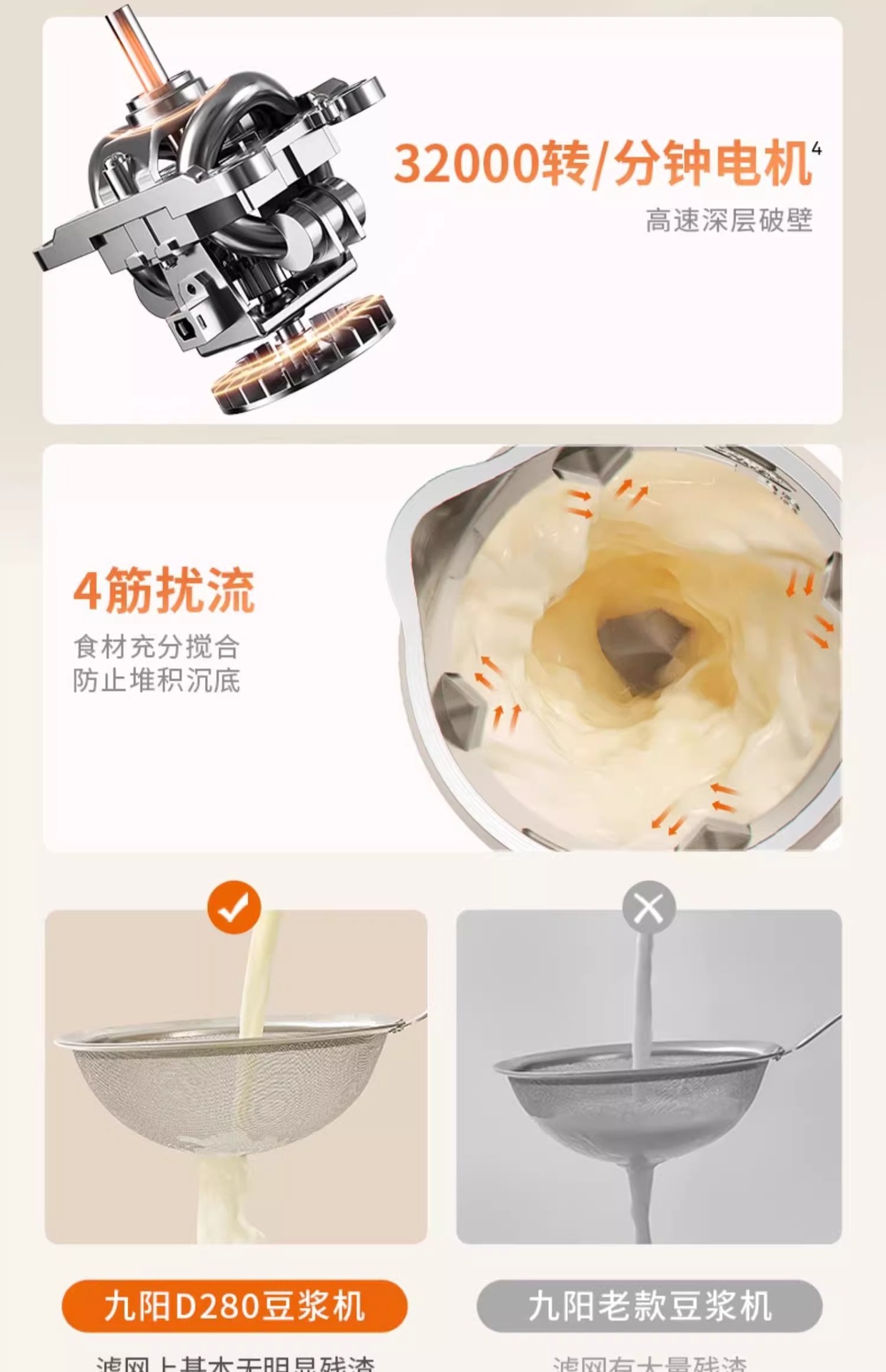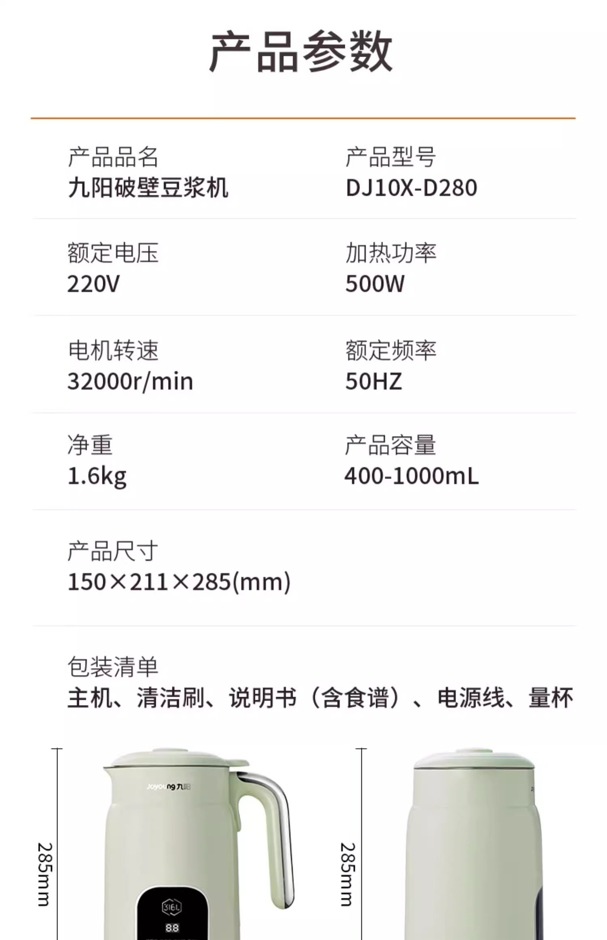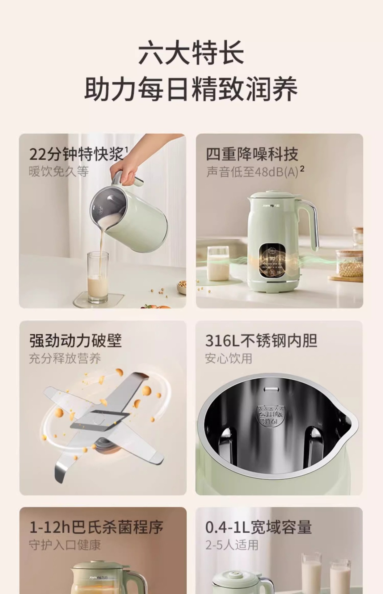 엄선된 Joyoung 분쇄식 두유기 1리터 가정용 두유기, 담그지 않고 여과하지 않음, 완전 자동, 소형 및 다기능스토어 가기