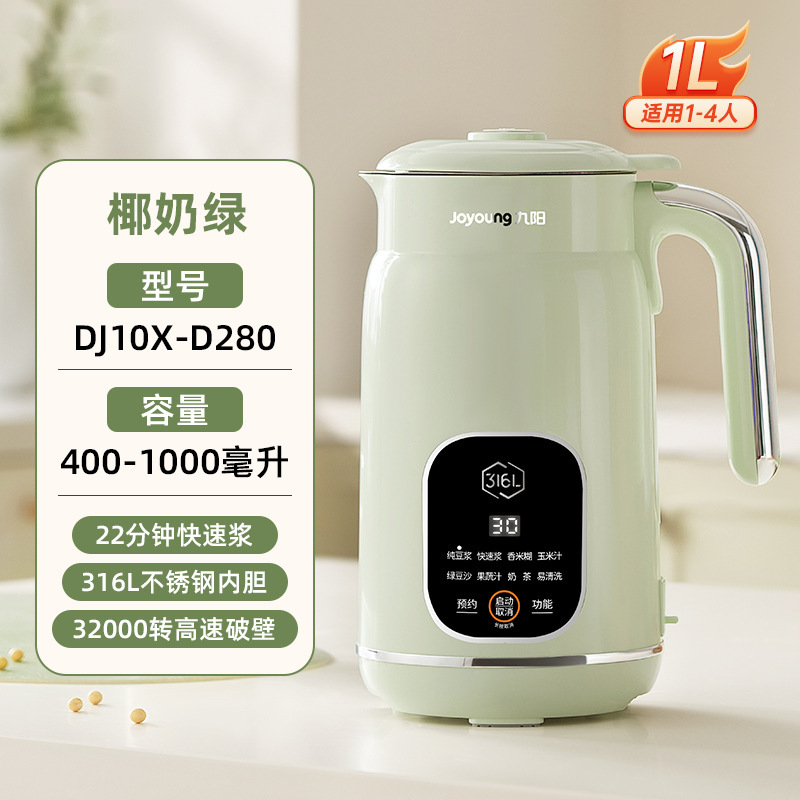 엄선된 Joyoung 분쇄식 두유기 1리터 가정용 두유기, 담그지 않고 여과하지 않음, 완전 자동, 소형 및 다기능