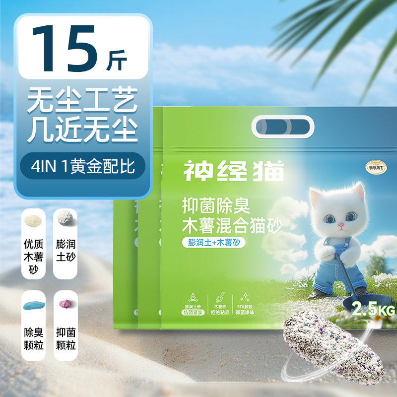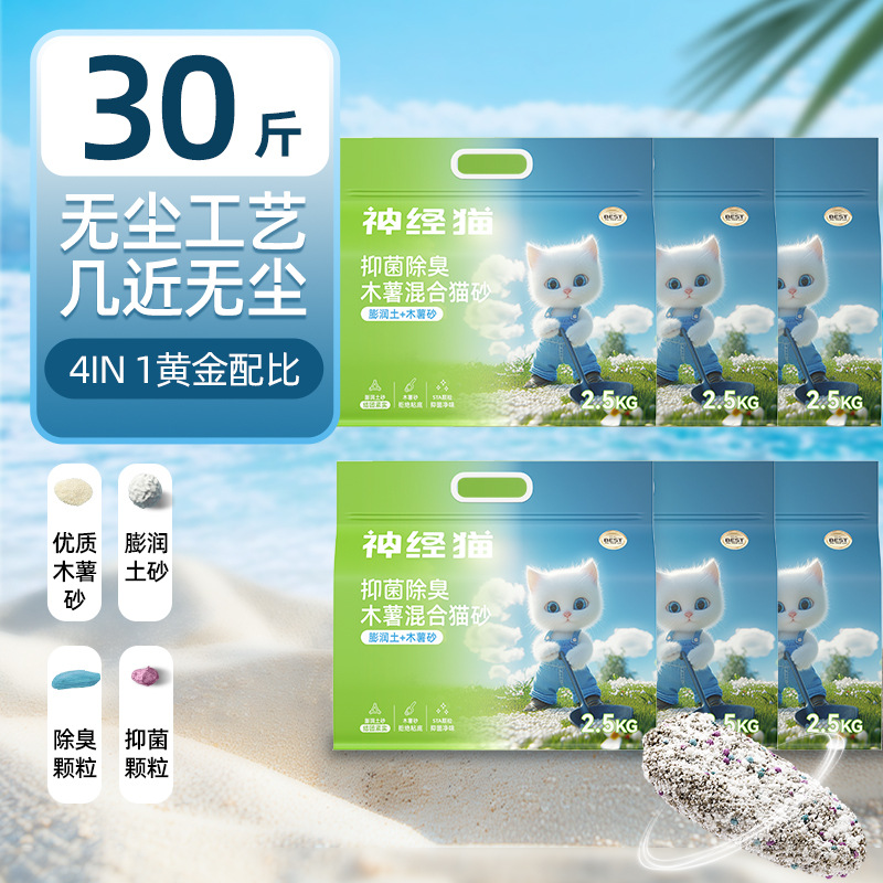 타피오카 고양이 모래, 항균 및 탈취 식물 모래, 저먼지 탈취 두부 고양이 모래, 빠르게 응고되고 바닥에 달라붙지 않는 고양이 모래스토어 가기