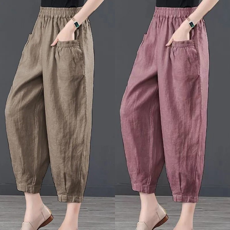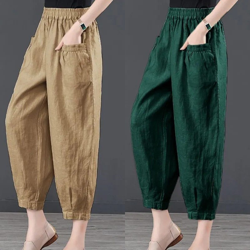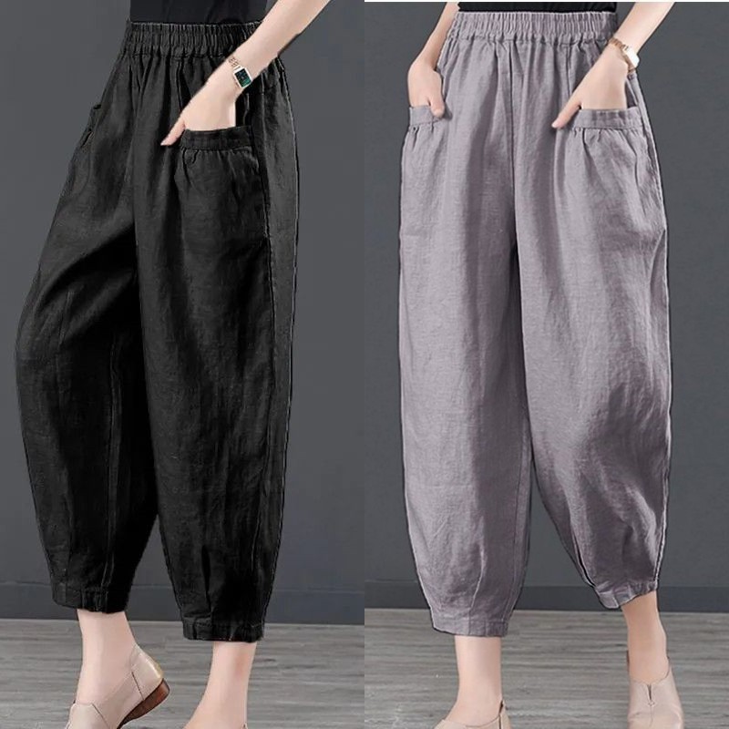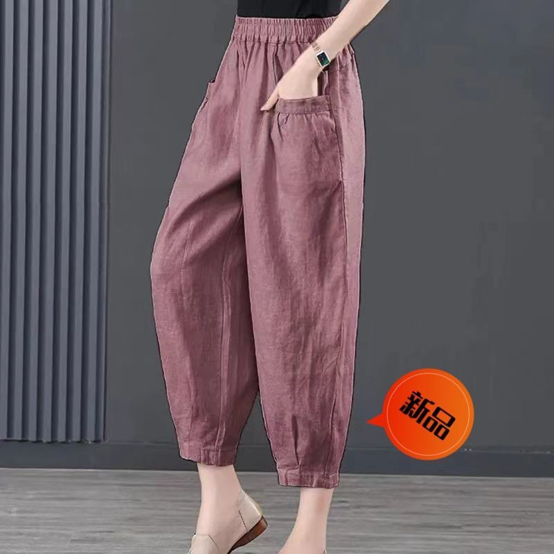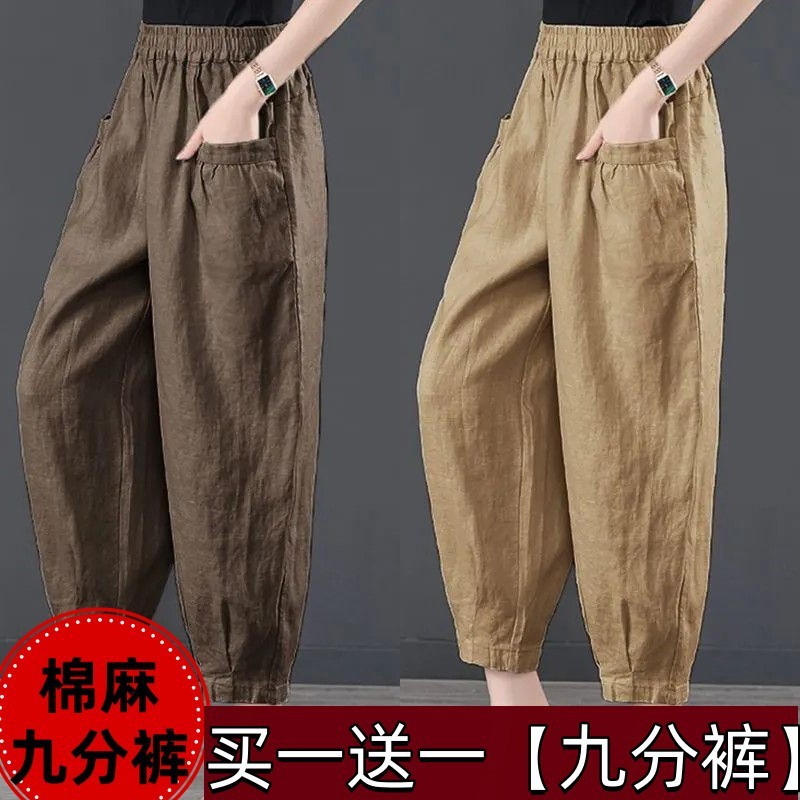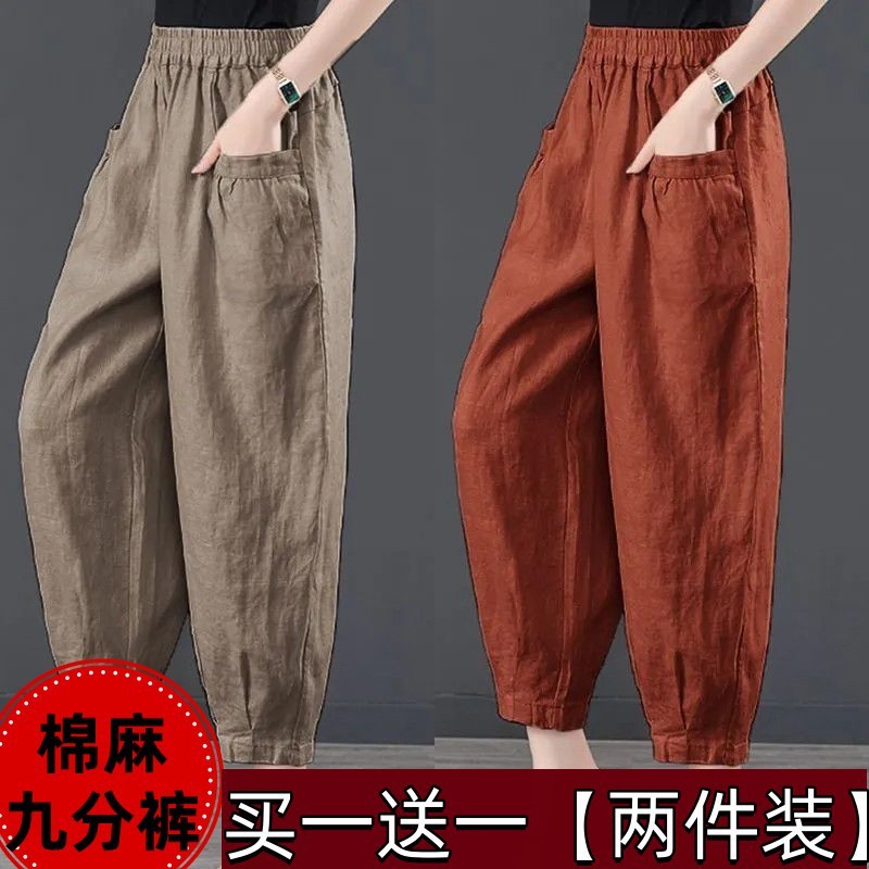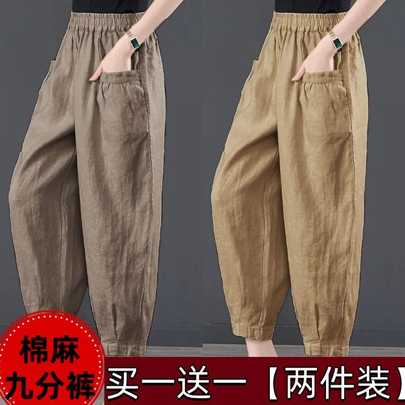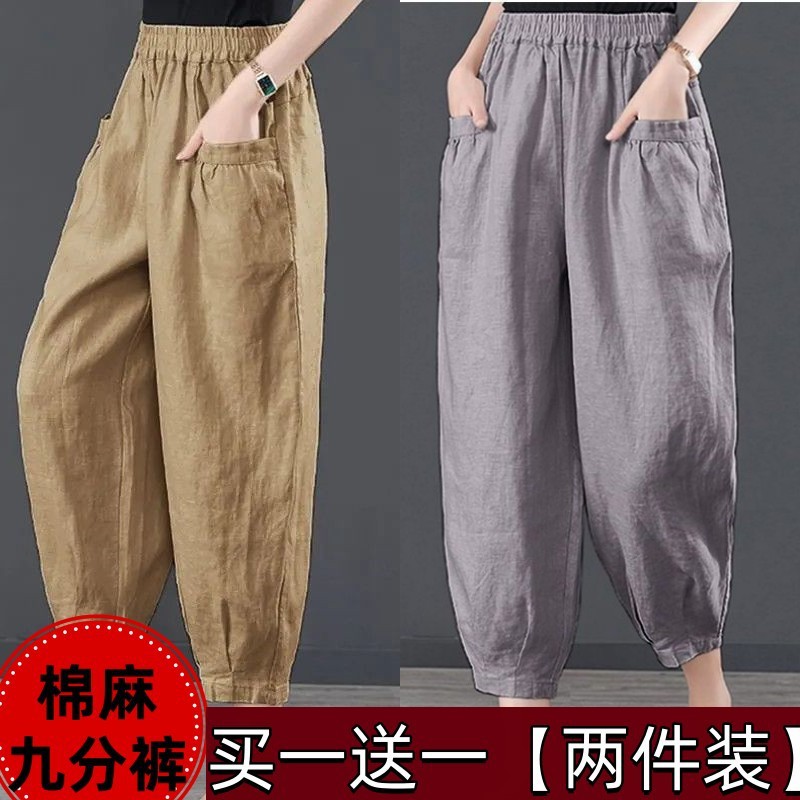 싱글/두 조각 여름 얇은 면화 및 리넨 여성용 바지 중년 및 노인 어머니의 블루머스 느슨한 플러스 사이즈 캐주얼 할렌 바지스토어 가기