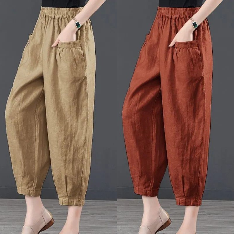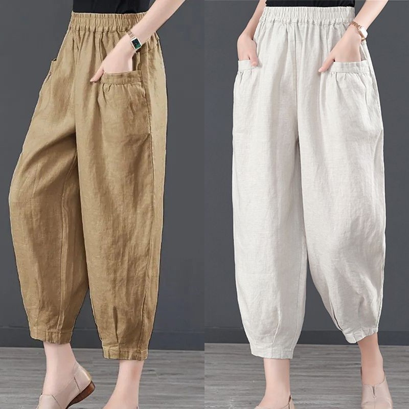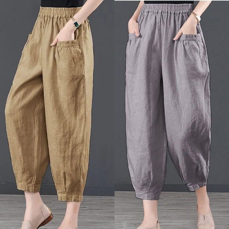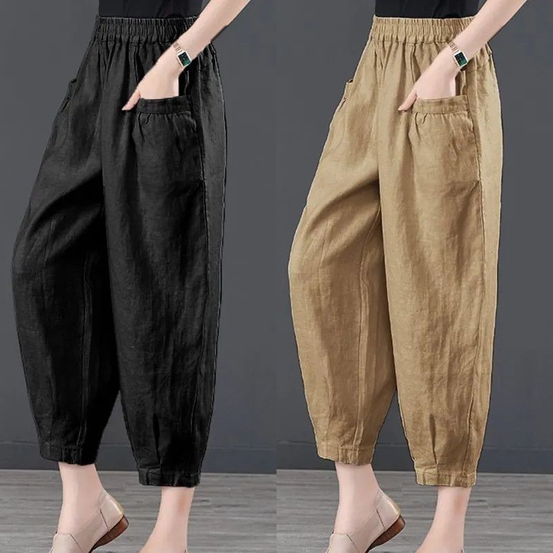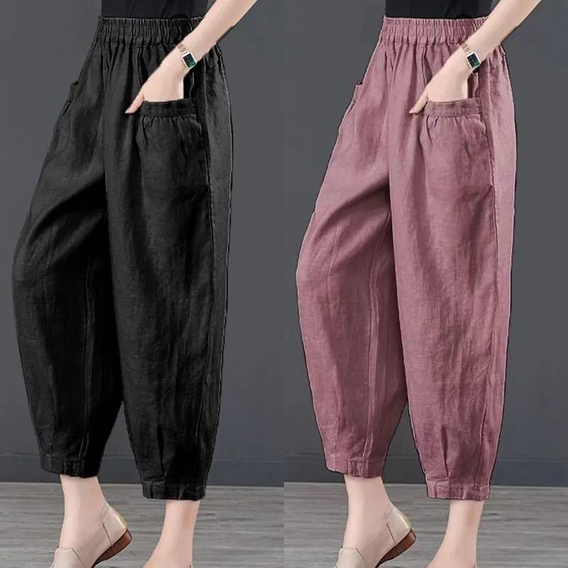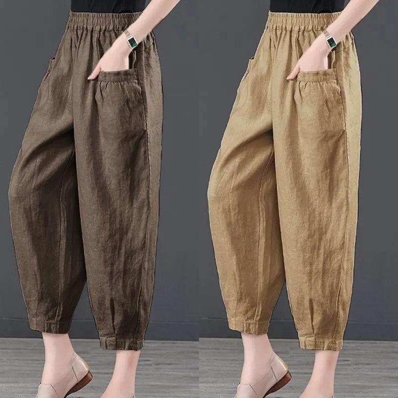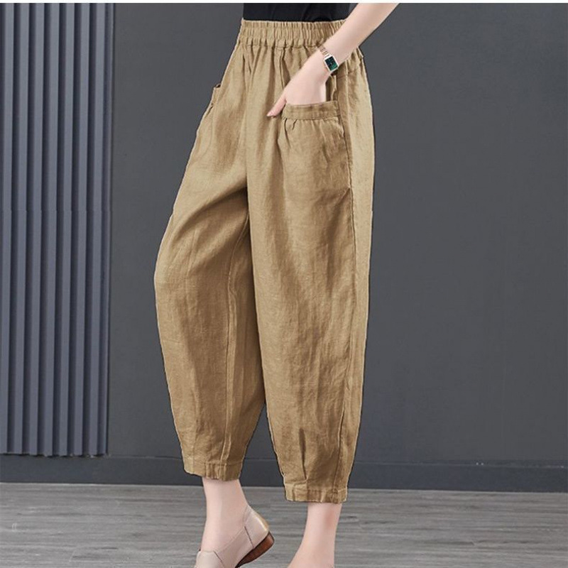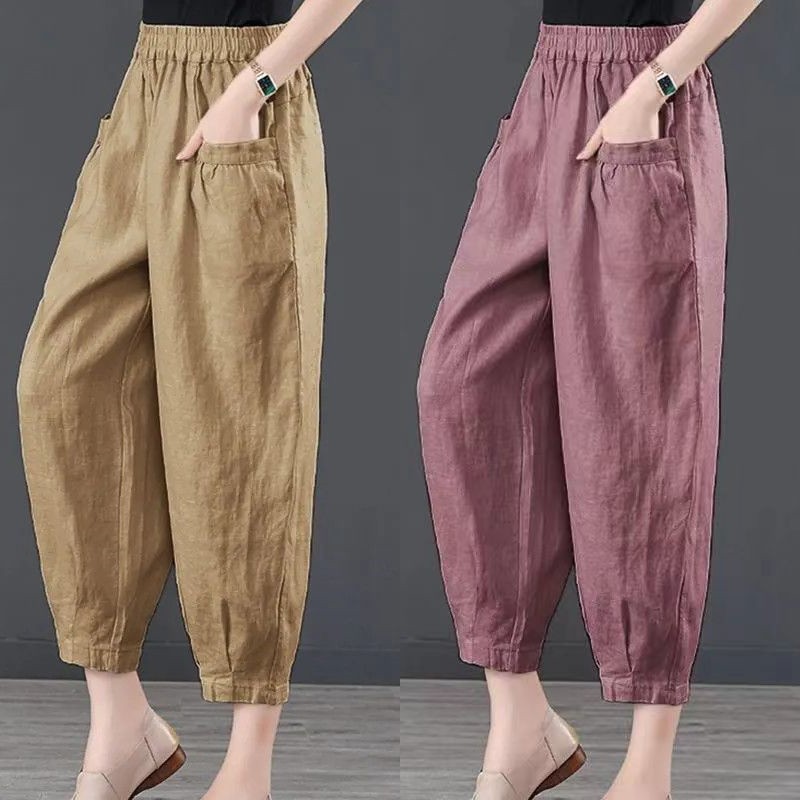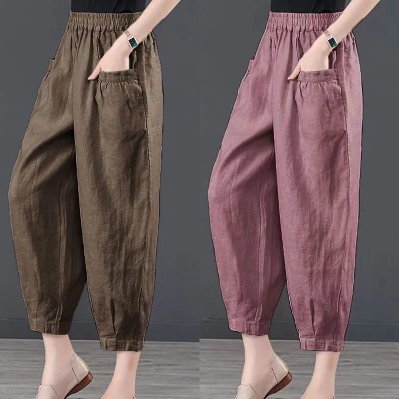 싱글/두 조각 여름 얇은 면화 및 리넨 여성용 바지 중년 및 노인 어머니의 블루머스 느슨한 플러스 사이즈 캐주얼 할렌 바지스토어 가기