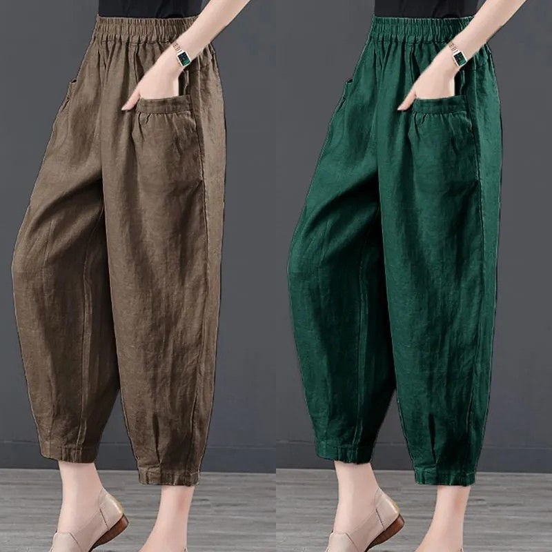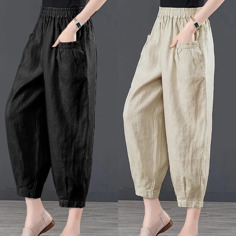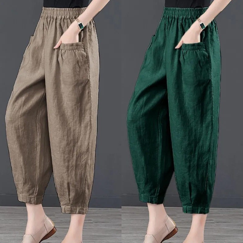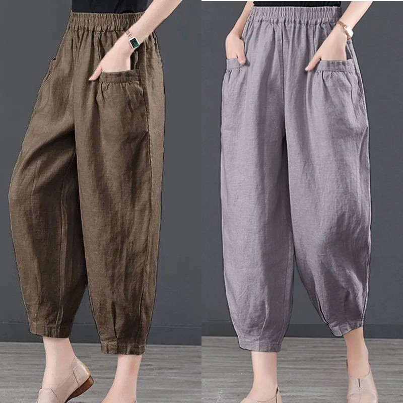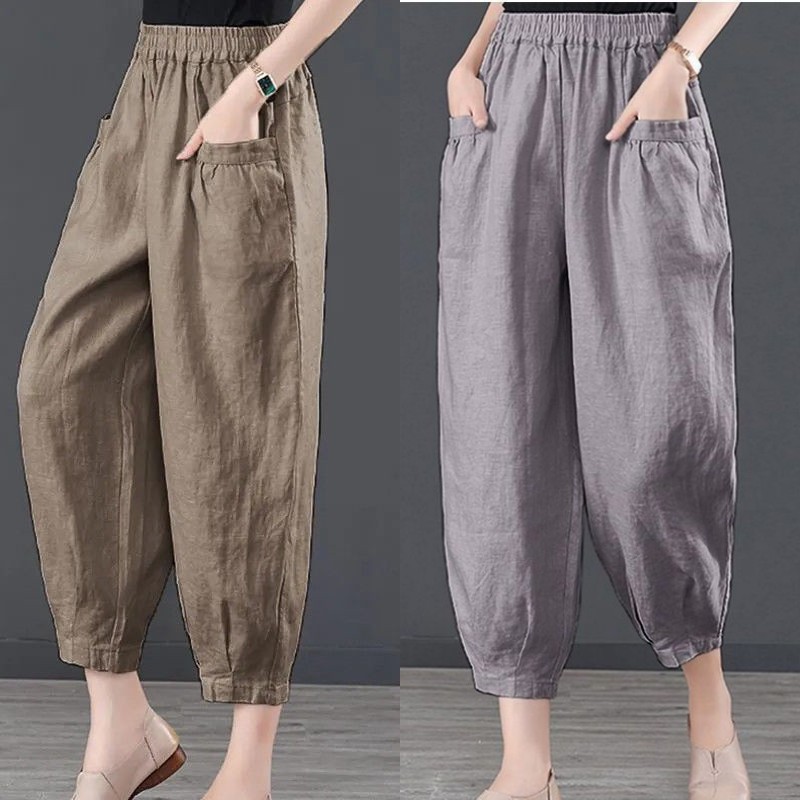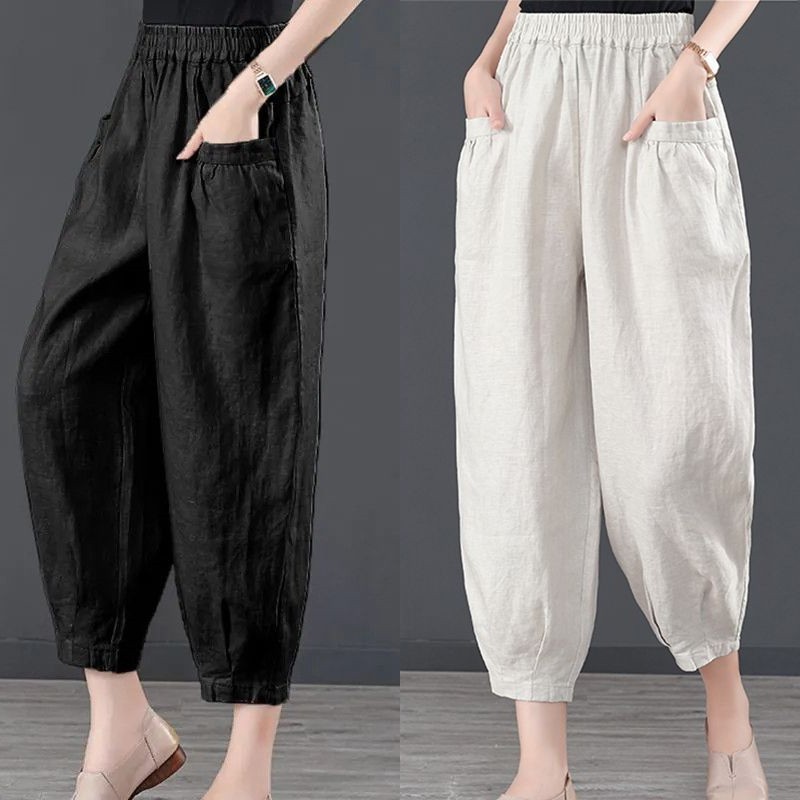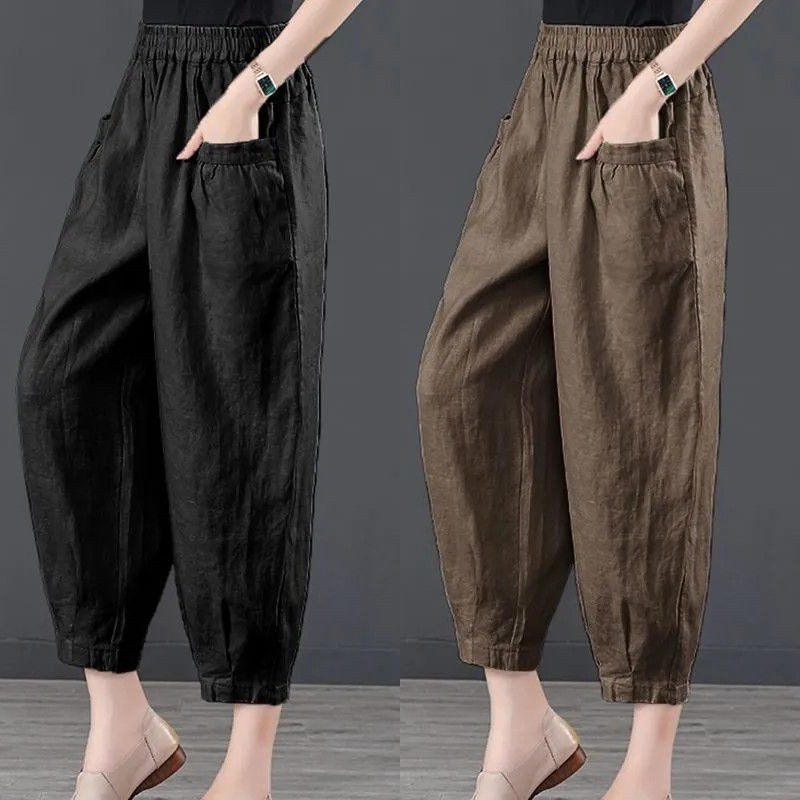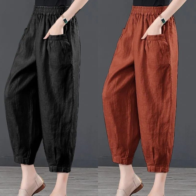 싱글/두 조각 여름 얇은 면화 및 리넨 여성용 바지 중년 및 노인 어머니의 블루머스 느슨한 플러스 사이즈 캐주얼 할렌 바지스토어 가기