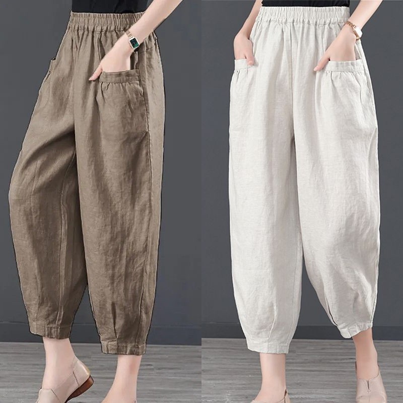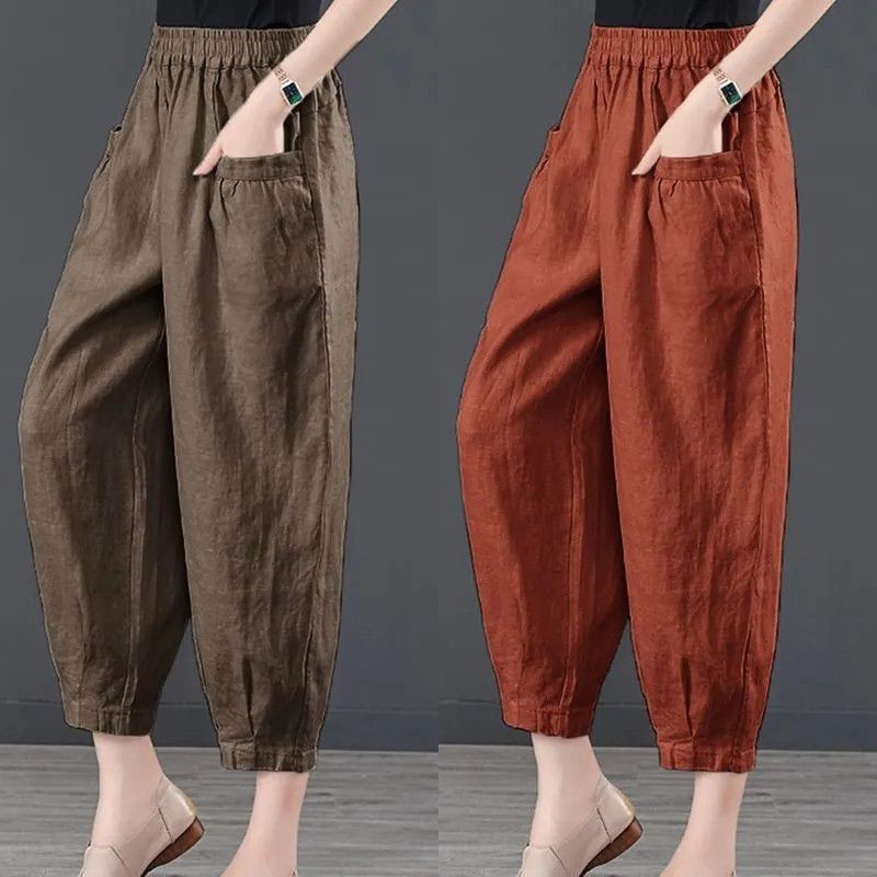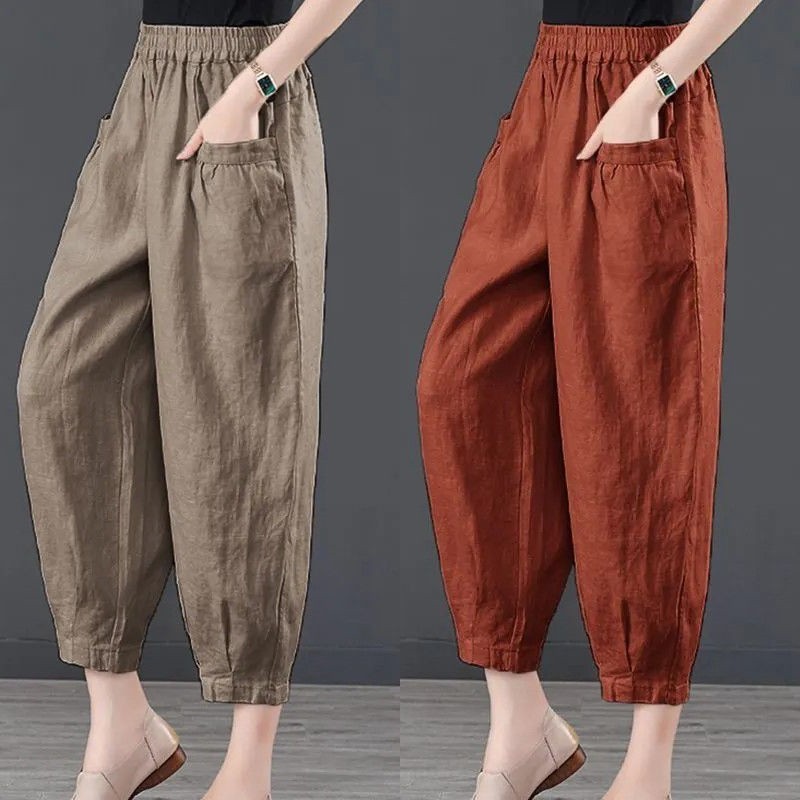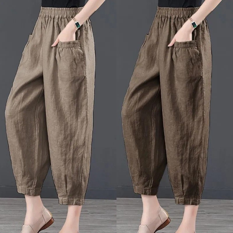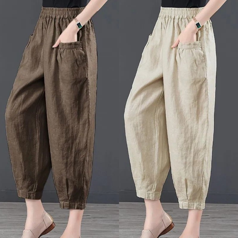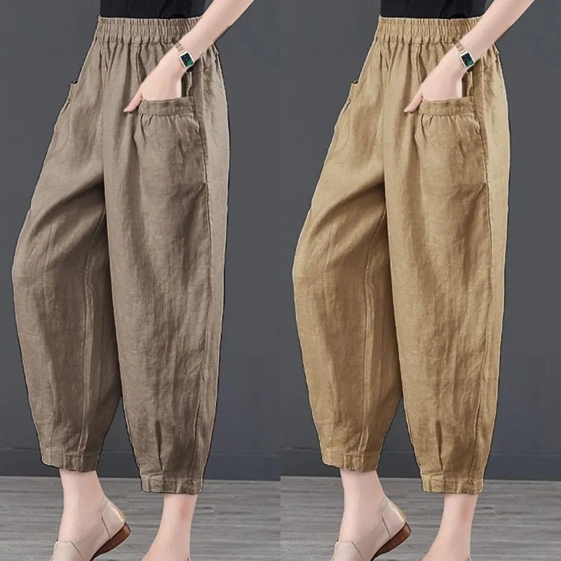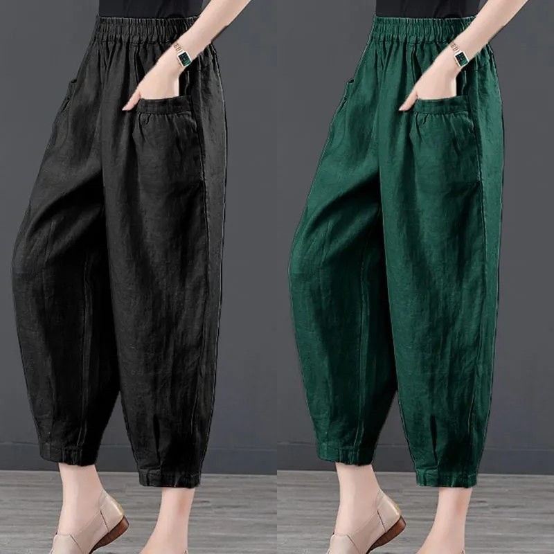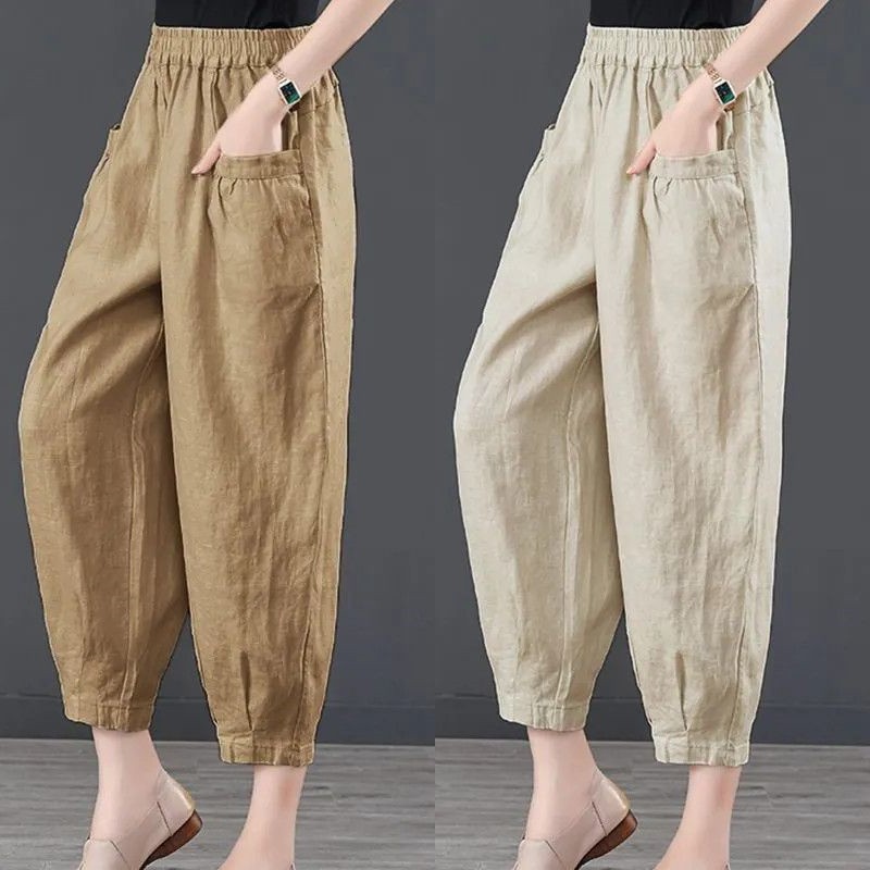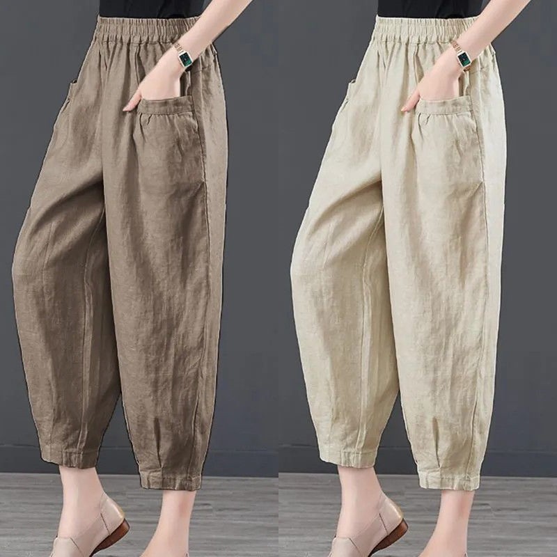 싱글/두 조각 여름 얇은 면화 및 리넨 여성용 바지 중년 및 노인 어머니의 블루머스 느슨한 플러스 사이즈 캐주얼 할렌 바지스토어 가기