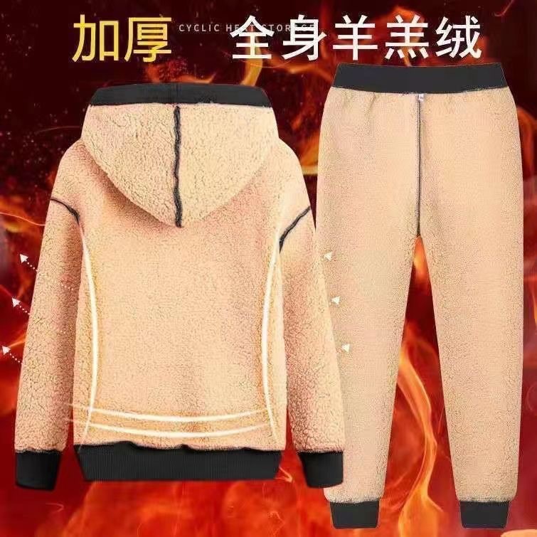 양털 후드티 남성용 가을 겨울 기모 두꺼운 지퍼 후드 캐주얼 스포츠 자켓 봄 슈트 남성용 투피스 세트