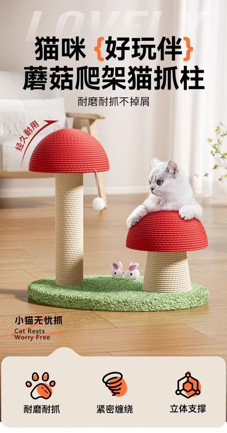 애완동물 사자풀 고양이 스크래치 포스트 수직 버섯 고양이 스크래치 보드 고양이 클라이밍 프레임 일체형 내마모성 및 비분해성 고양이 스크래치 보드 고양이 장난감스토어 가기