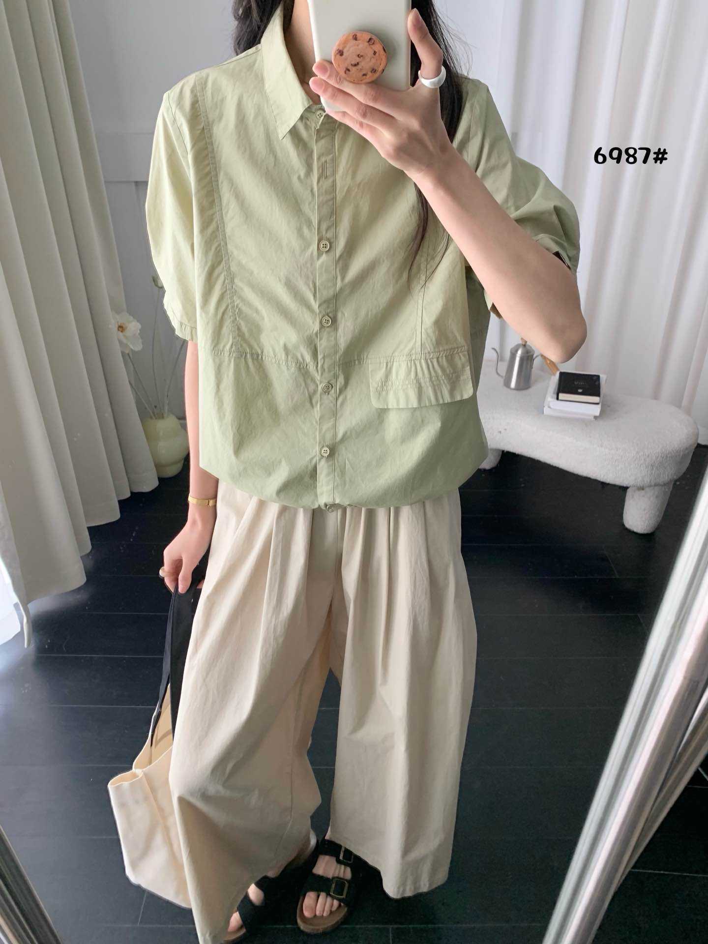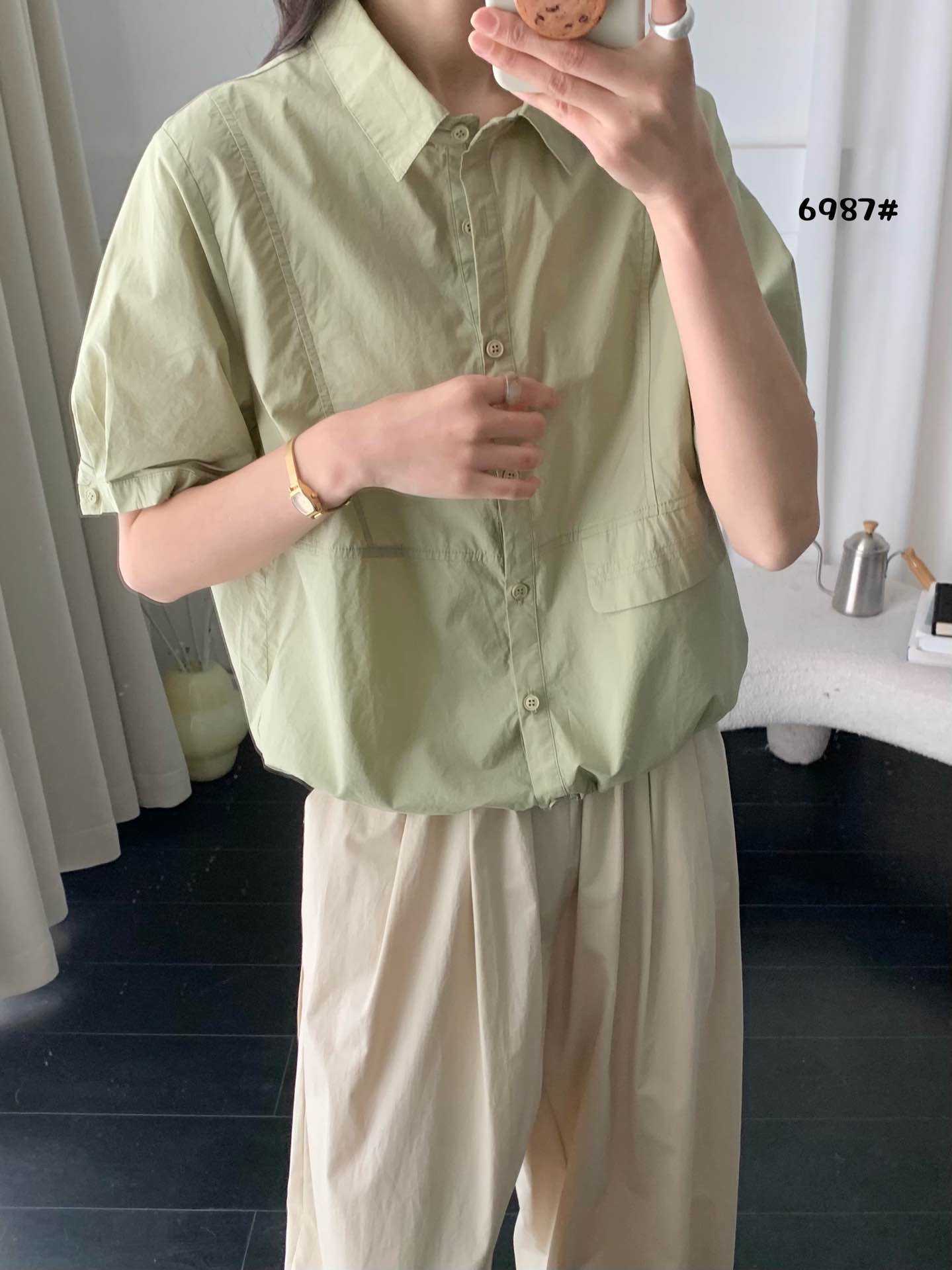 2025 년 여름 옷깃 싱글 브레스트 반팔 셔츠 여성용 루즈 슬리밍 캐주얼 쇼트 셔츠