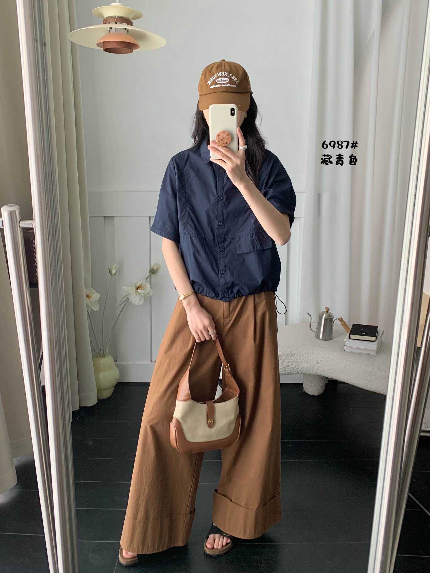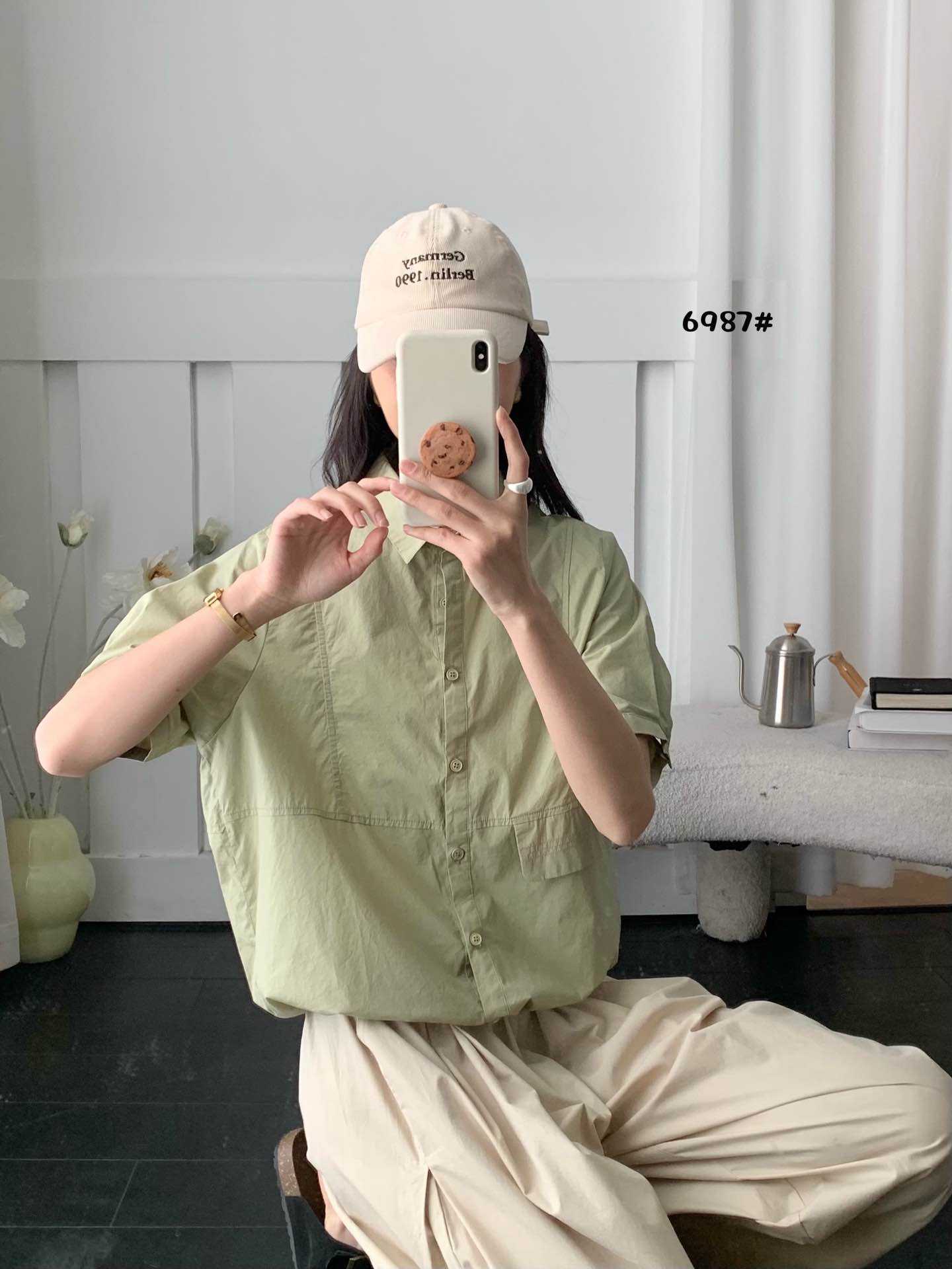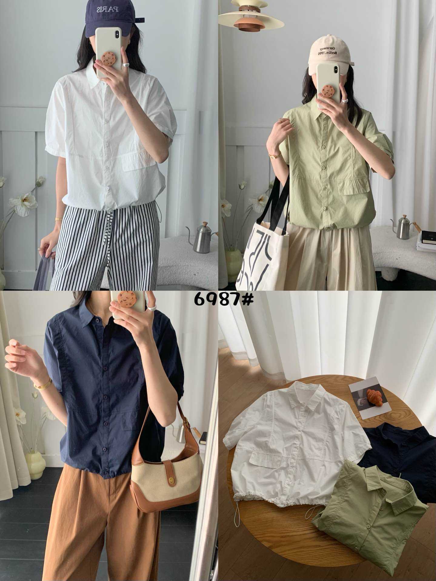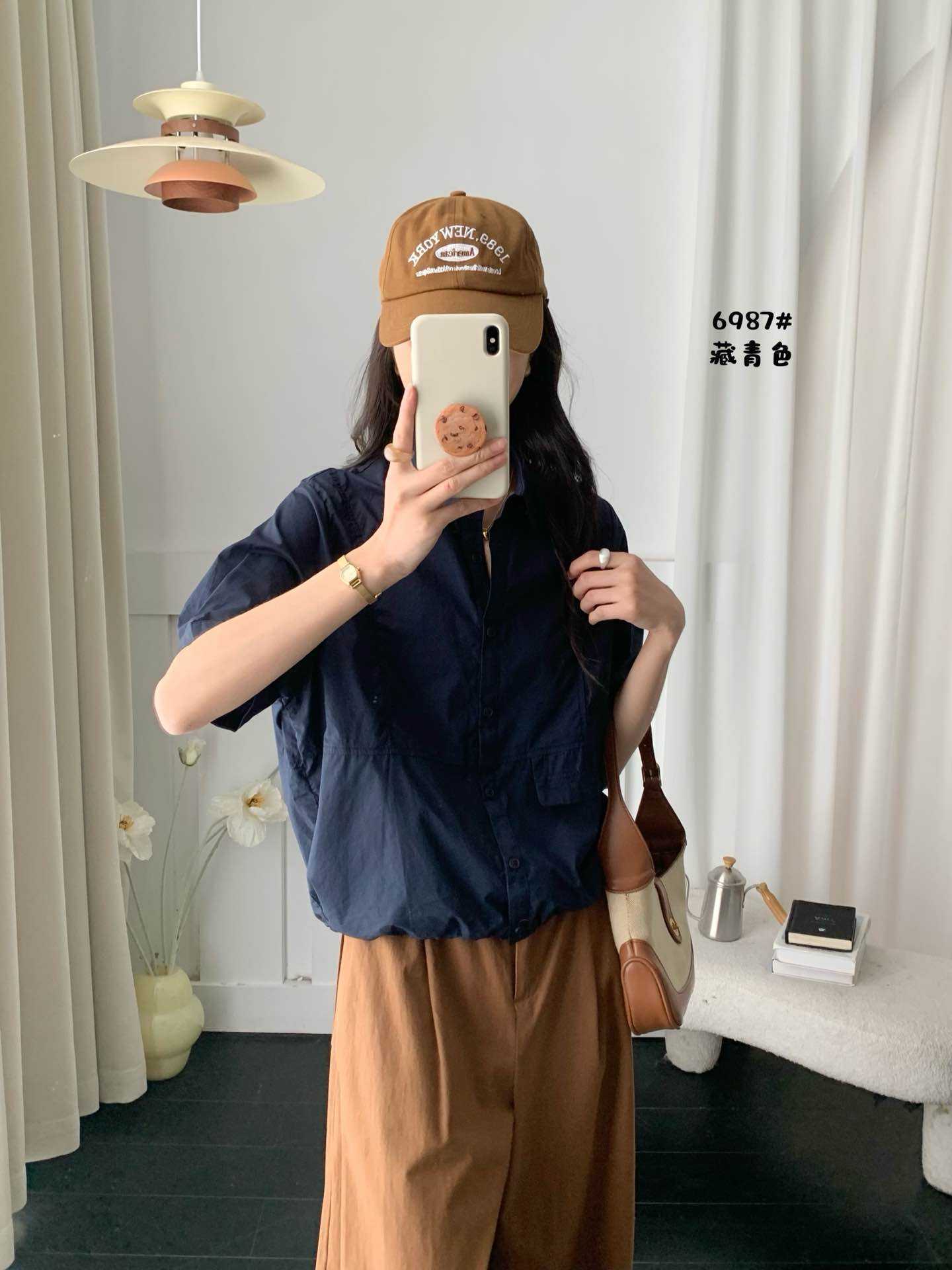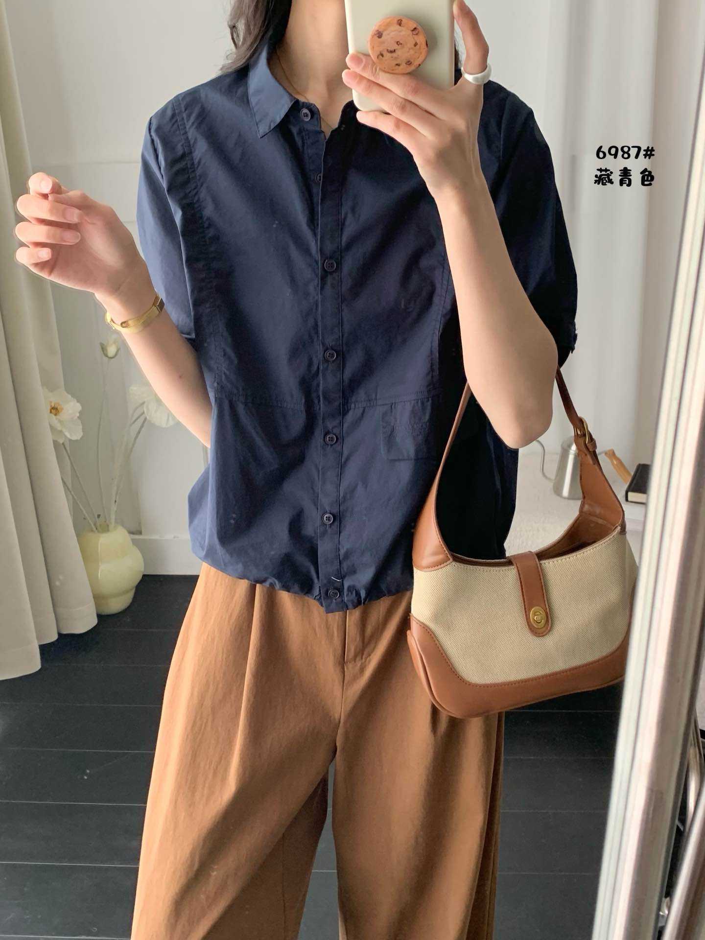 2025 년 여름 옷깃 싱글 브레스트 반팔 셔츠 여성용 루즈 슬리밍 캐주얼 쇼트 셔츠스토어 가기