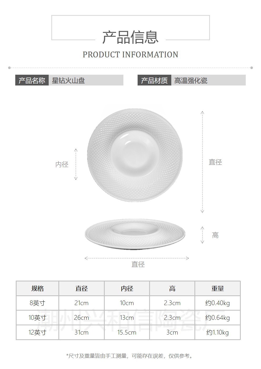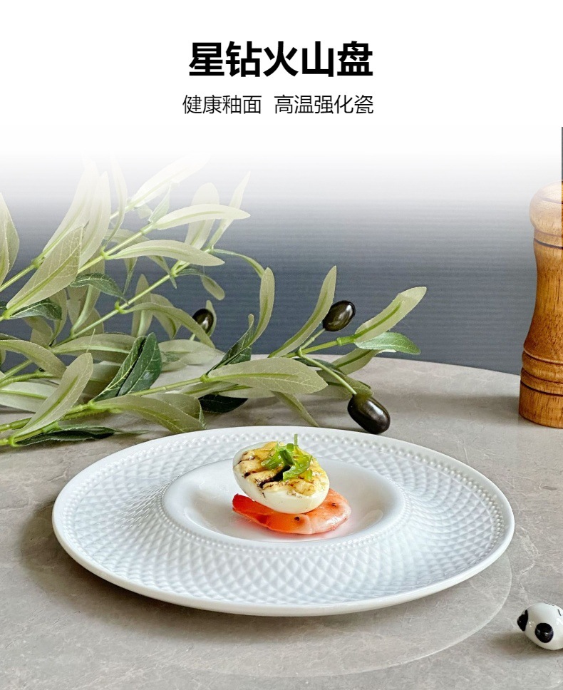 유럽식 서양식 양각 디너 플레이트, 고급 호텔 요리 플레이트, 개인 요리, 절묘한 별 다이아몬드 패턴 화산 플레이트