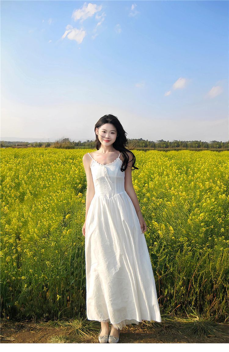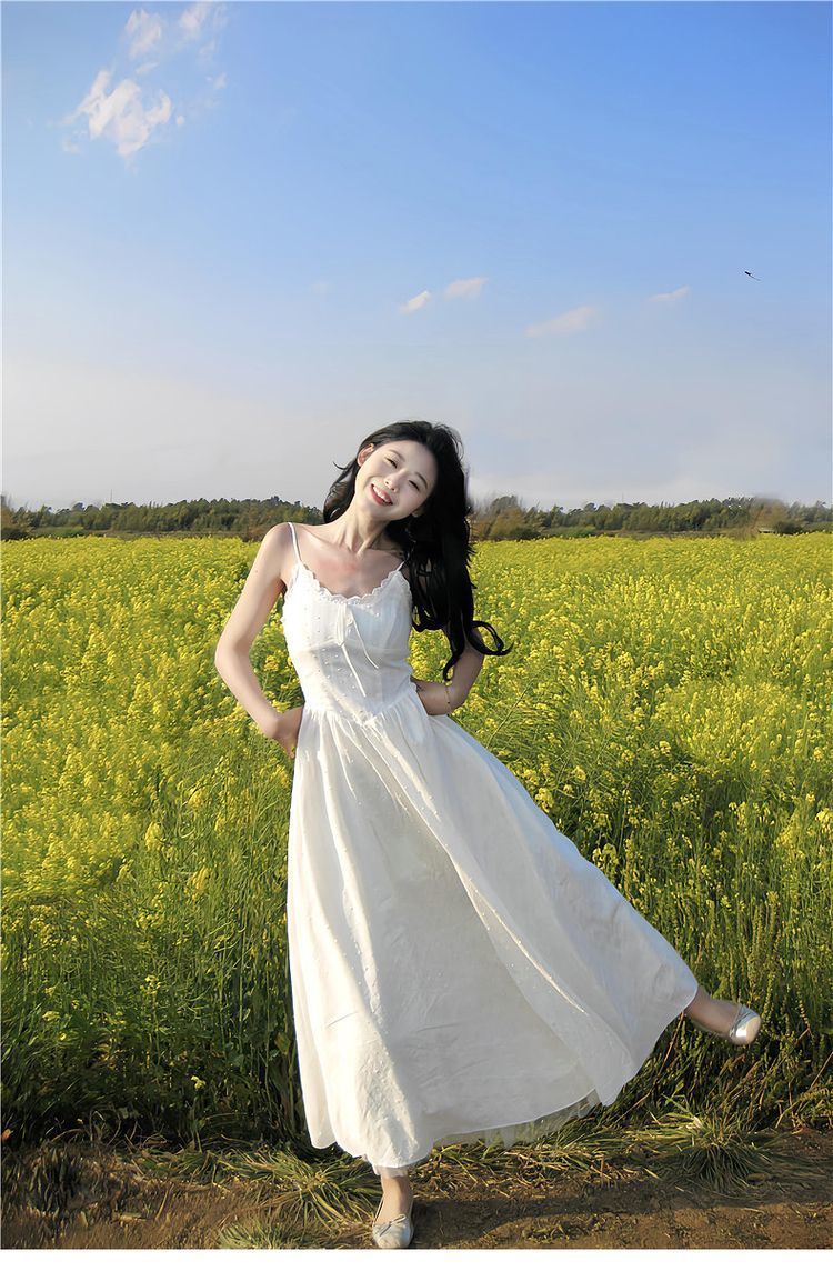프랑스 스타일 화이트 슬링 원피스 여름 새로운 도착 모리 스타일 목회 첫사랑 슬링 스커트 허리 화이트 스커트