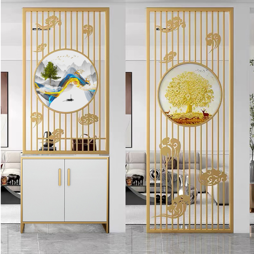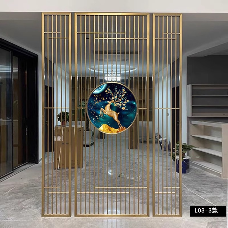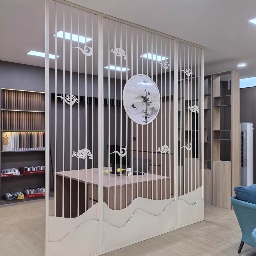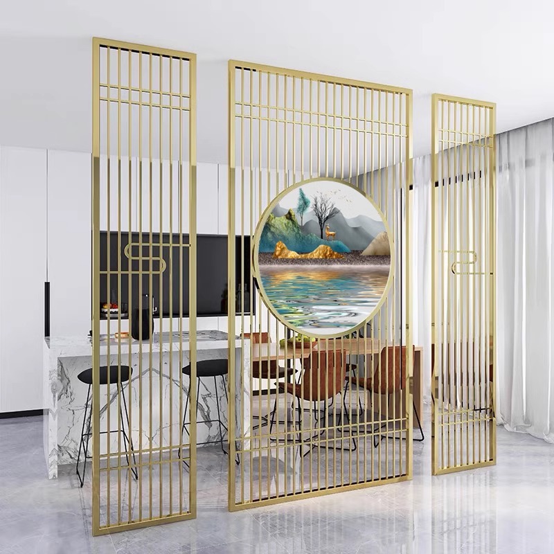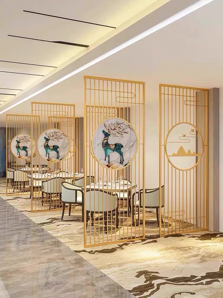 스테인레스 스틸 스크린 파티션 거실 호텔 레스토랑 로비 오피스 아이언 새로운 중국 스타일 도어 투 도어 그릴스토어 가기