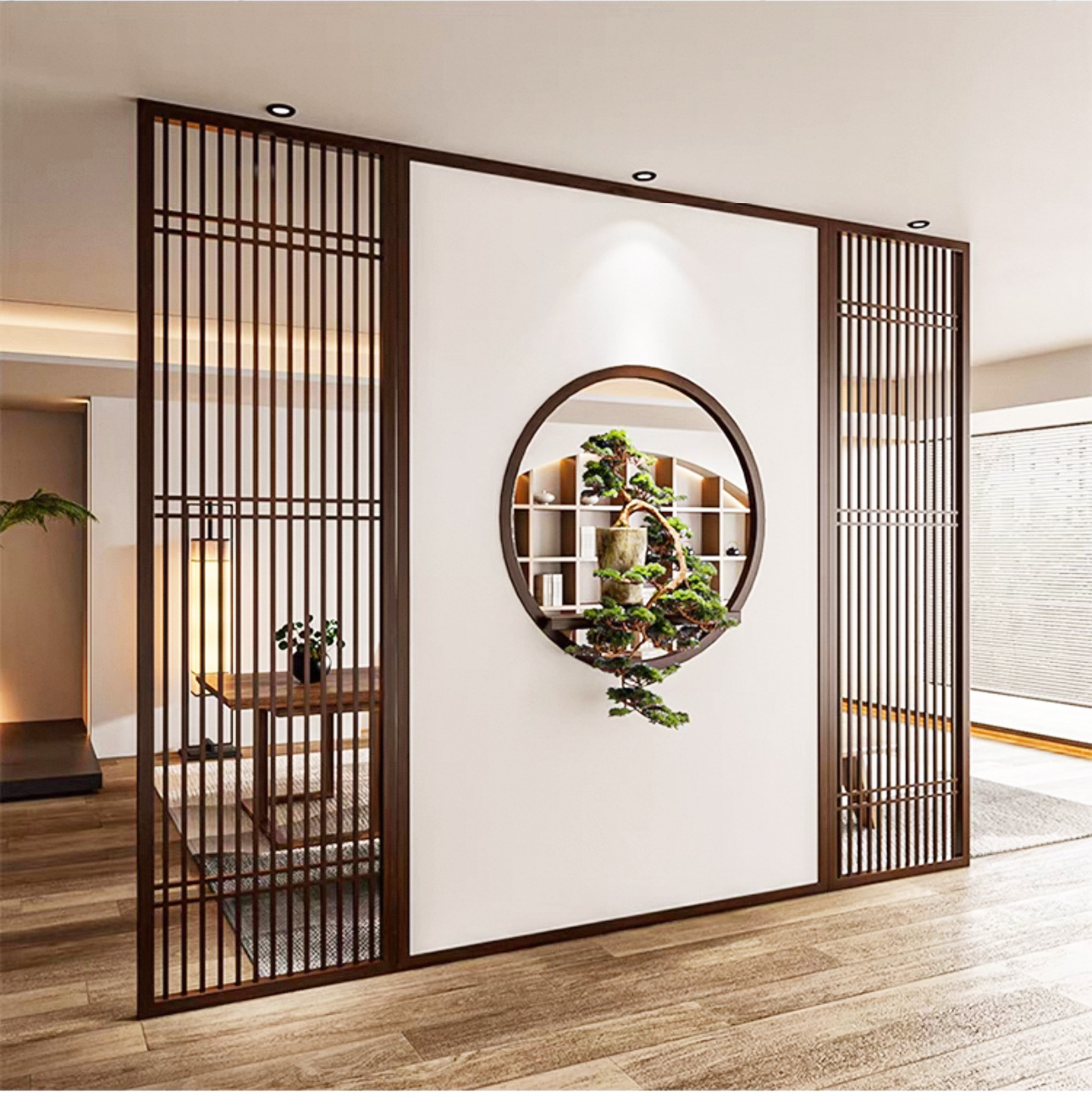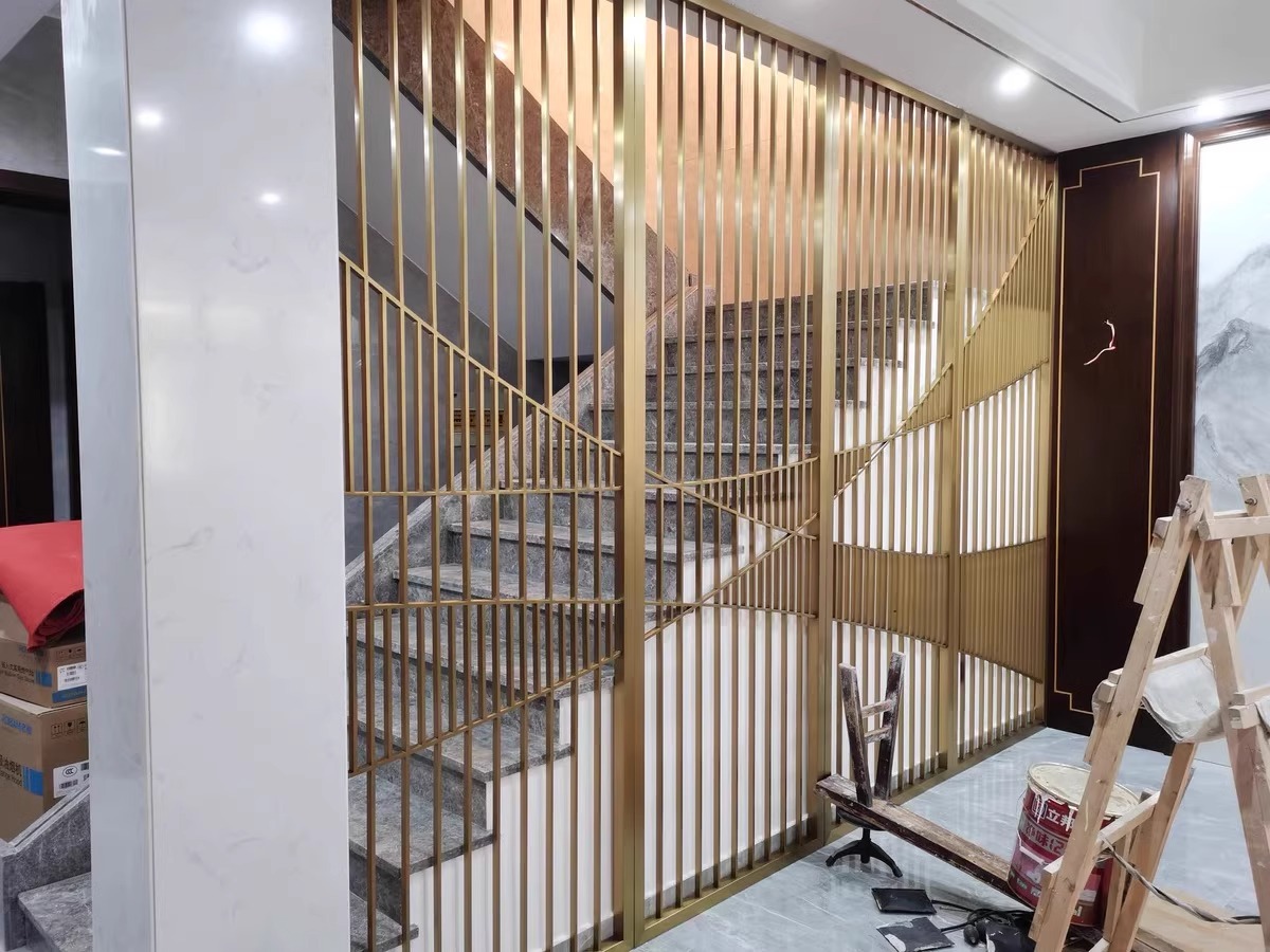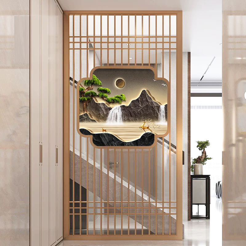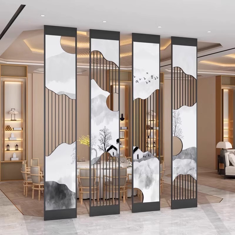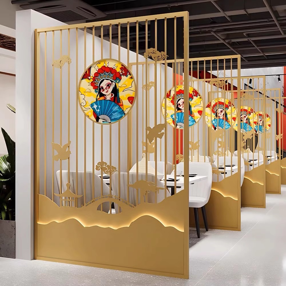 스테인레스 스틸 스크린 파티션 거실 호텔 레스토랑 로비 오피스 아이언 새로운 중국 스타일 도어 투 도어 그릴스토어 가기