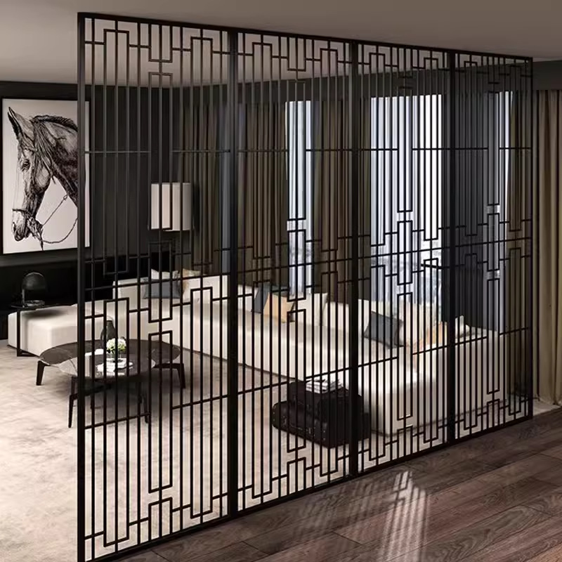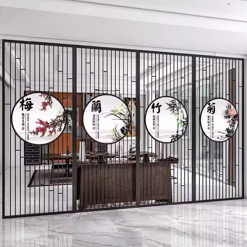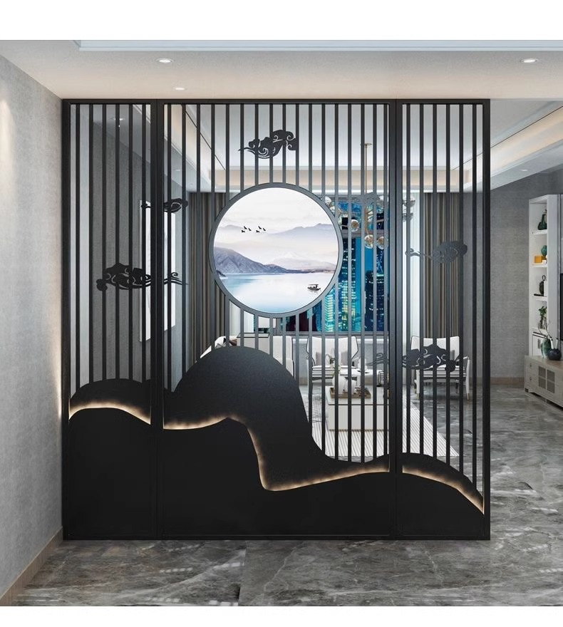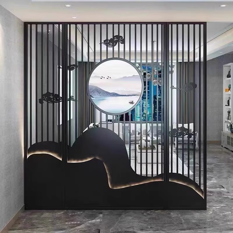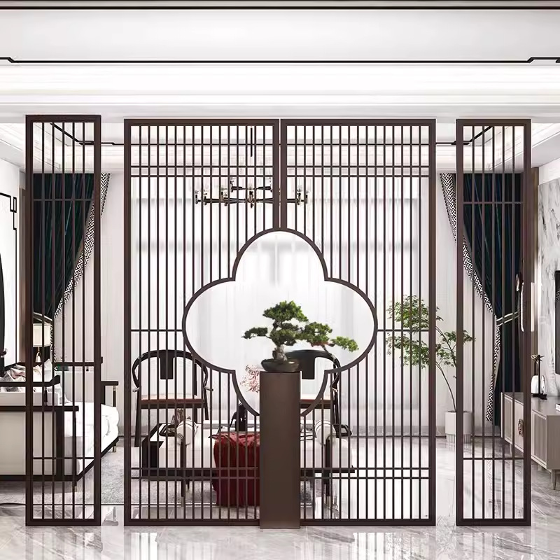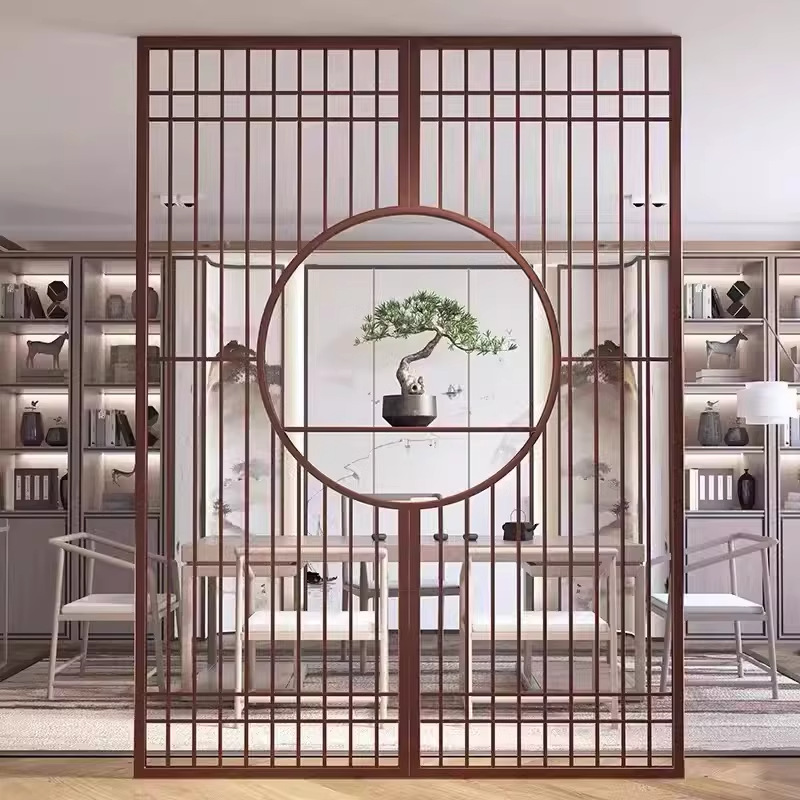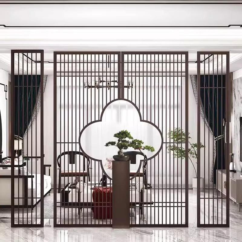 스테인레스 스틸 스크린 파티션 거실 호텔 레스토랑 로비 오피스 아이언 새로운 중국 스타일 도어 투 도어 그릴