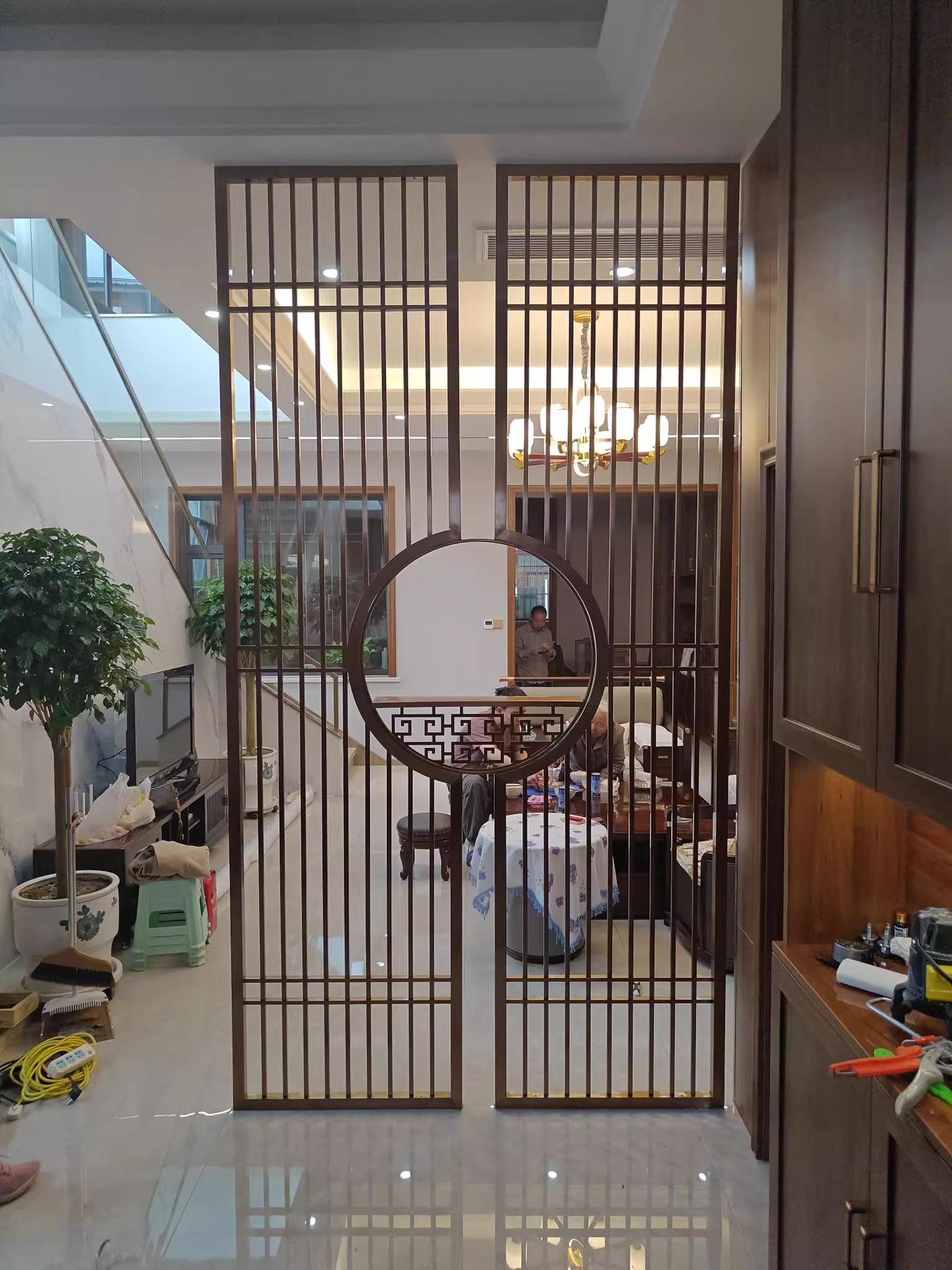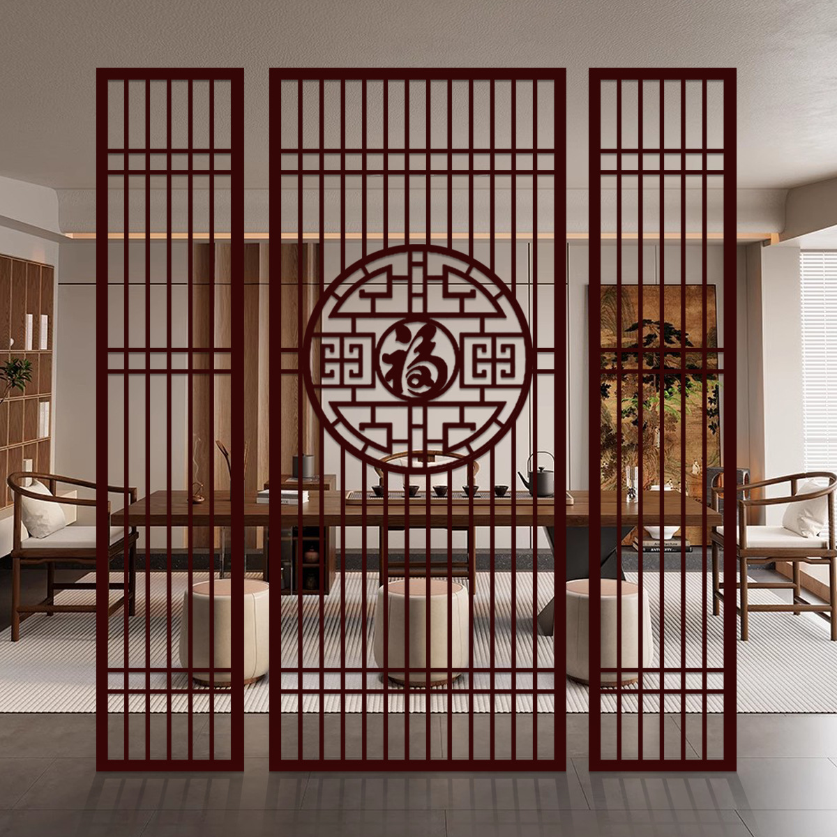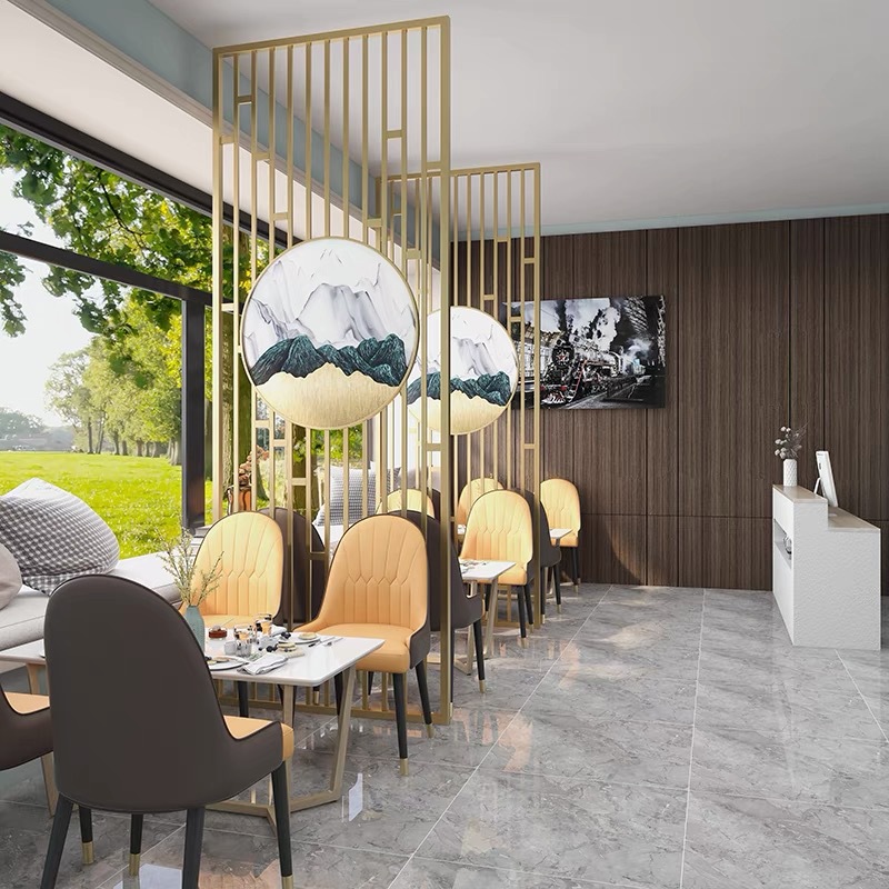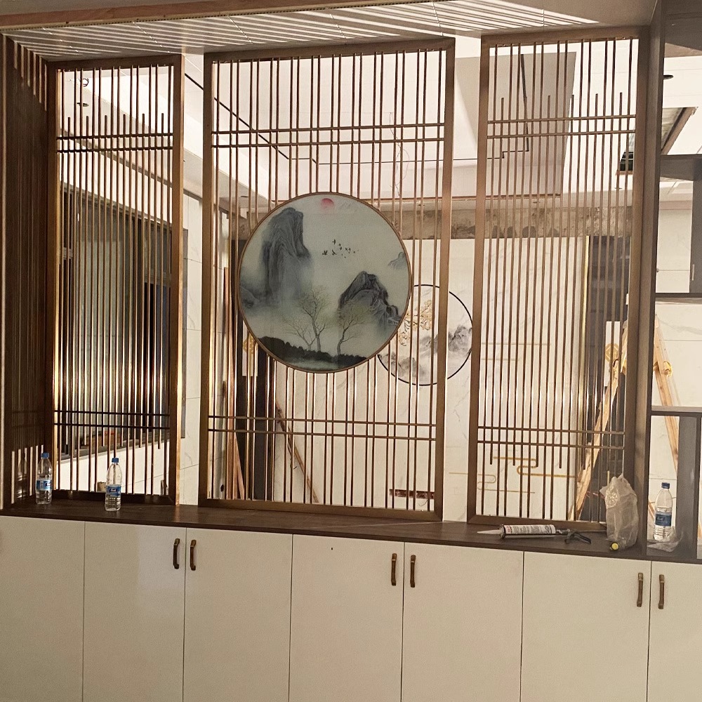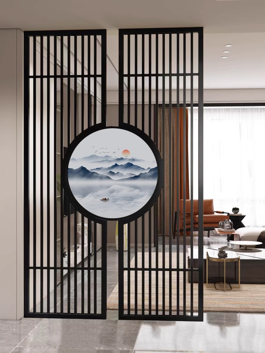 스테인레스 스틸 스크린 파티션 거실 호텔 레스토랑 로비 오피스 아이언 새로운 중국 스타일 도어 투 도어 그릴