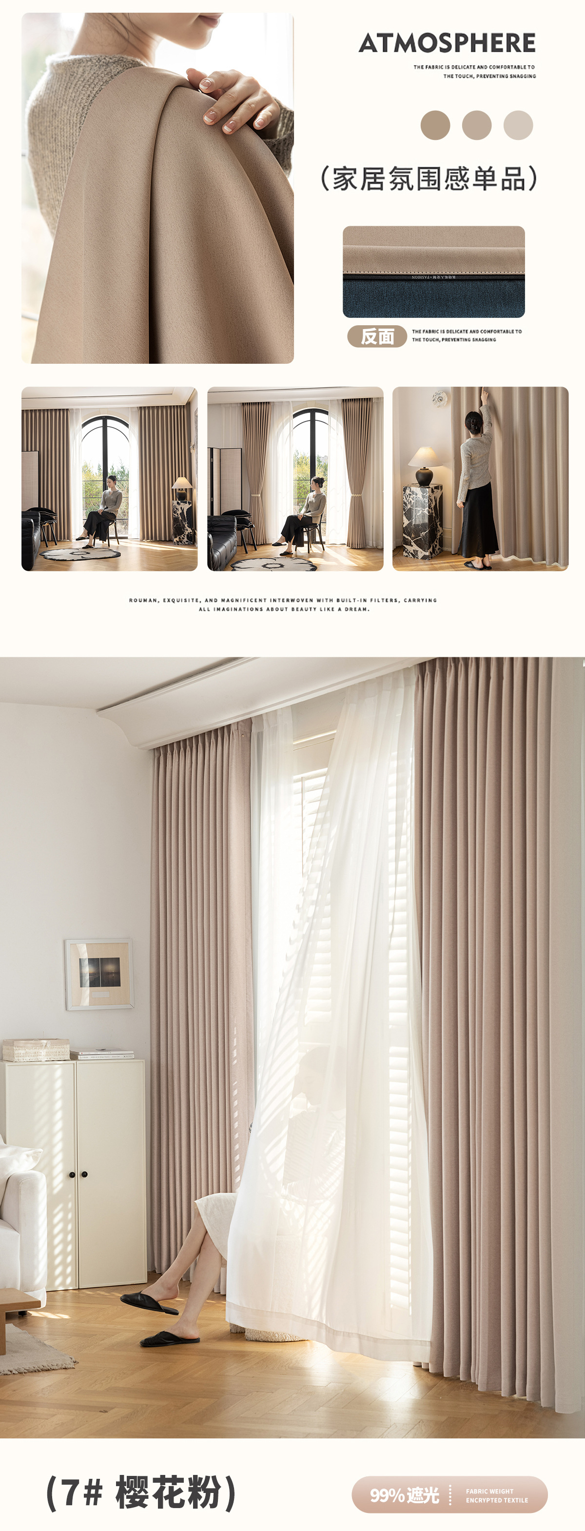 전체 음영 커튼 2025 새로운 스타일 거실 발코니 빛 고급 고급 면화 및 린넨 질감 태양 보호 및 햇빛 단열 커튼스토어 가기